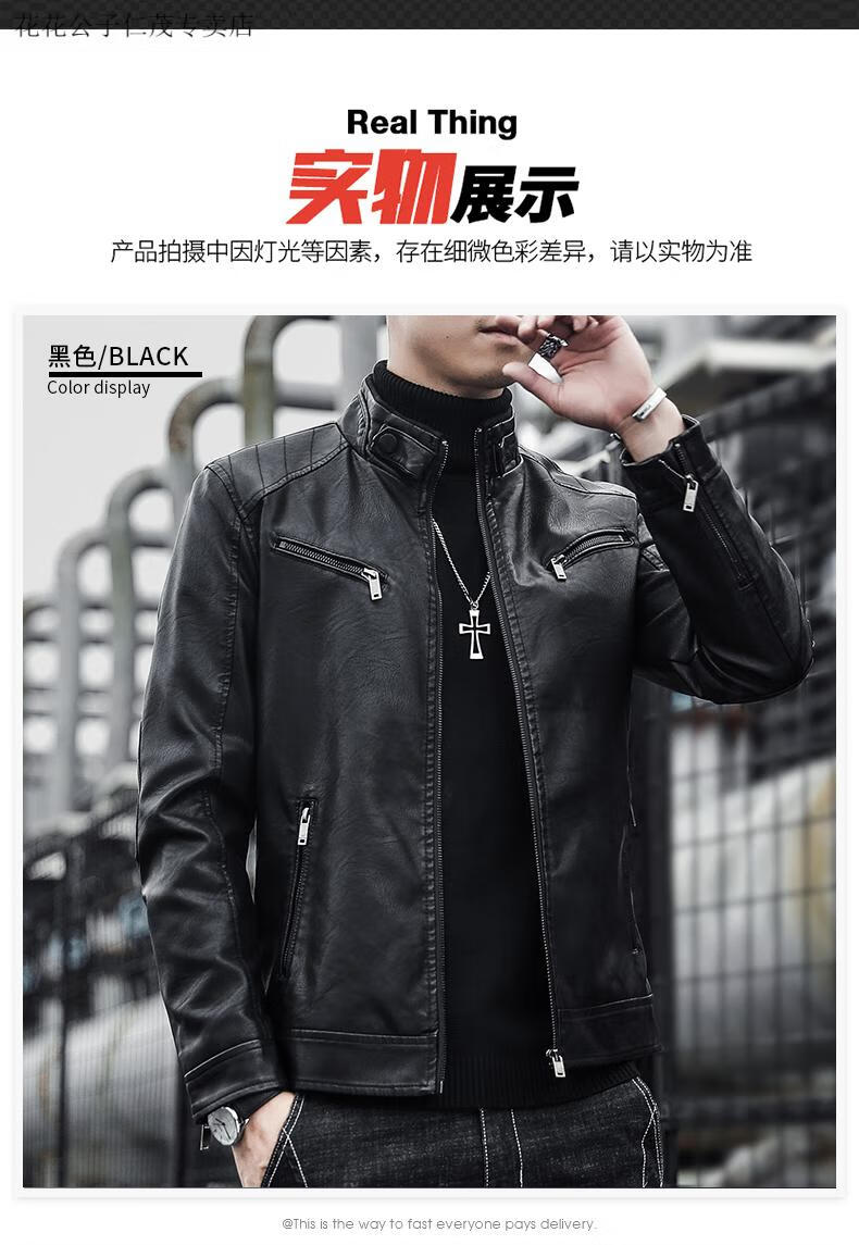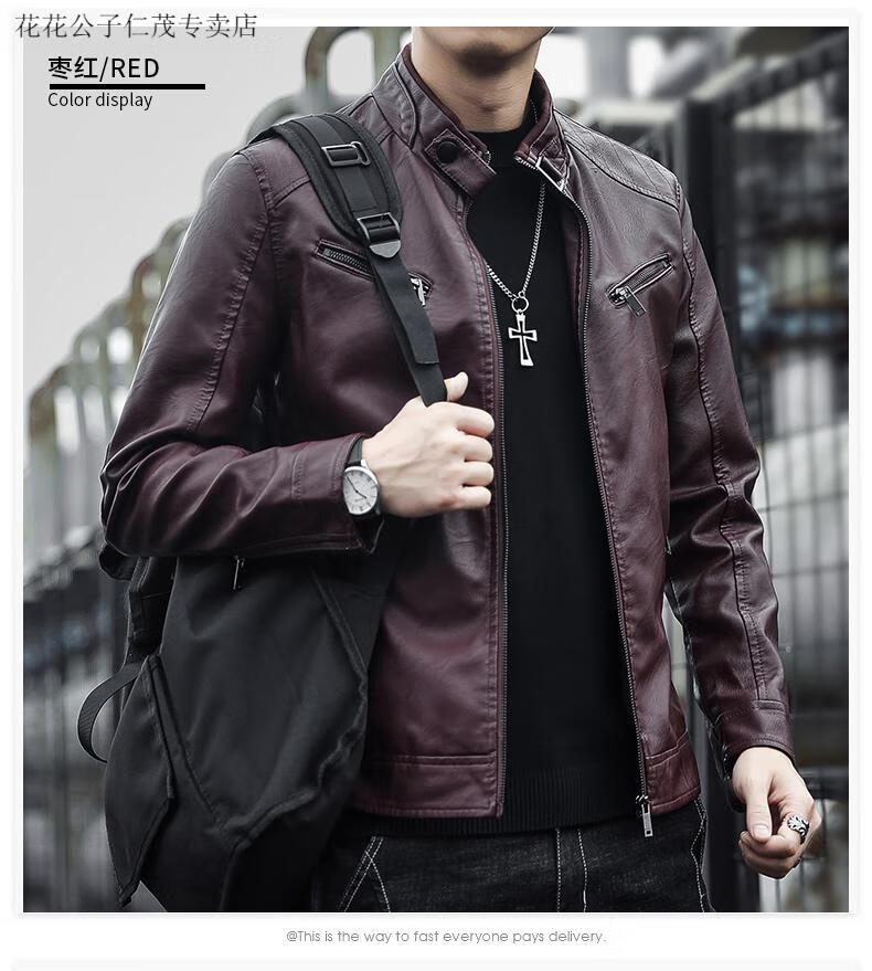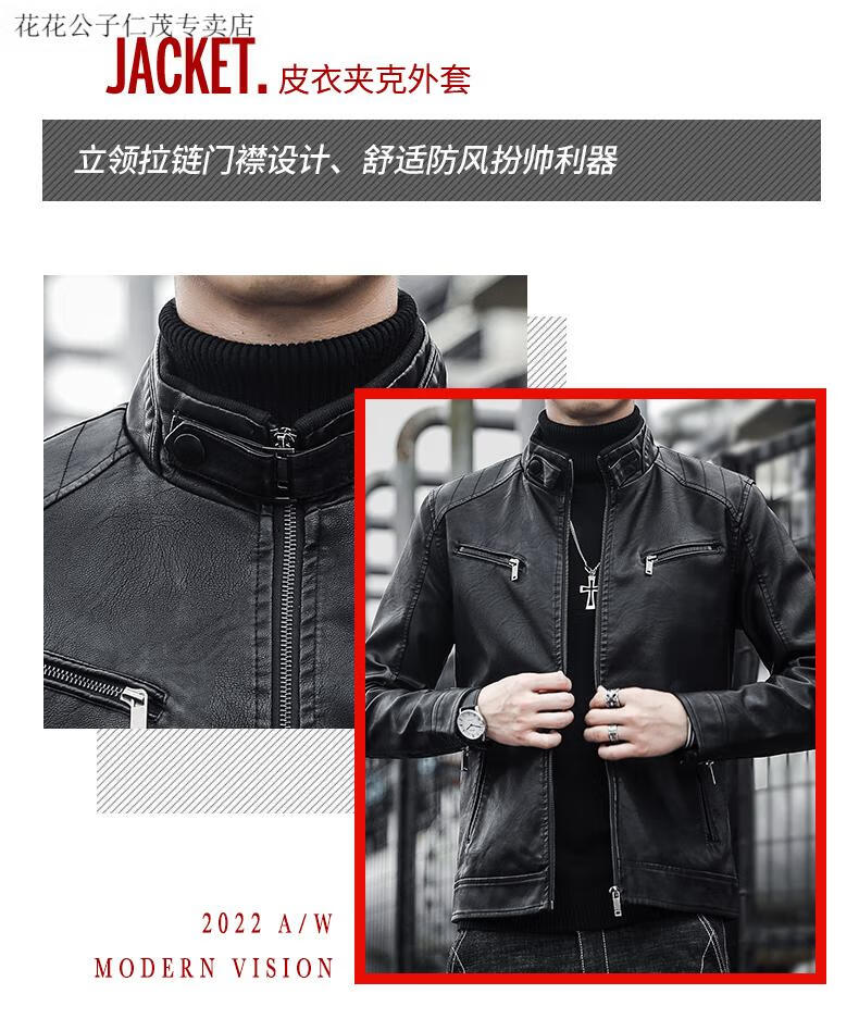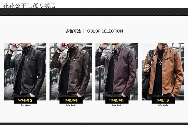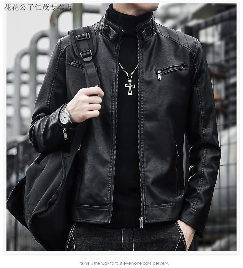Playboy (PLAYBOY) Stand Collar Leather Coat Men's 2025 Spring and Autumn New Trendy Upper Clothes Men's Velvet Thickened Winter Workwear Jacket 609 Coffee Velvet XL