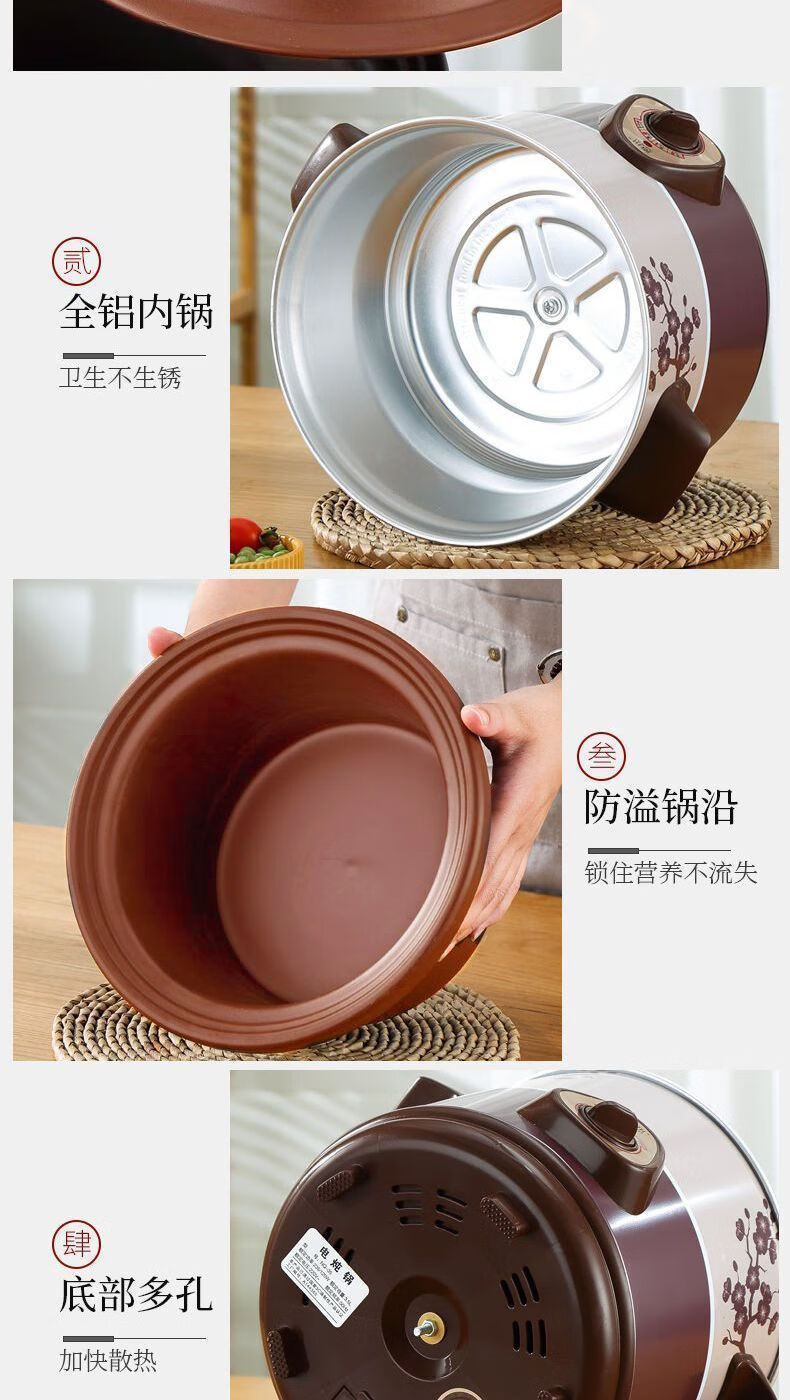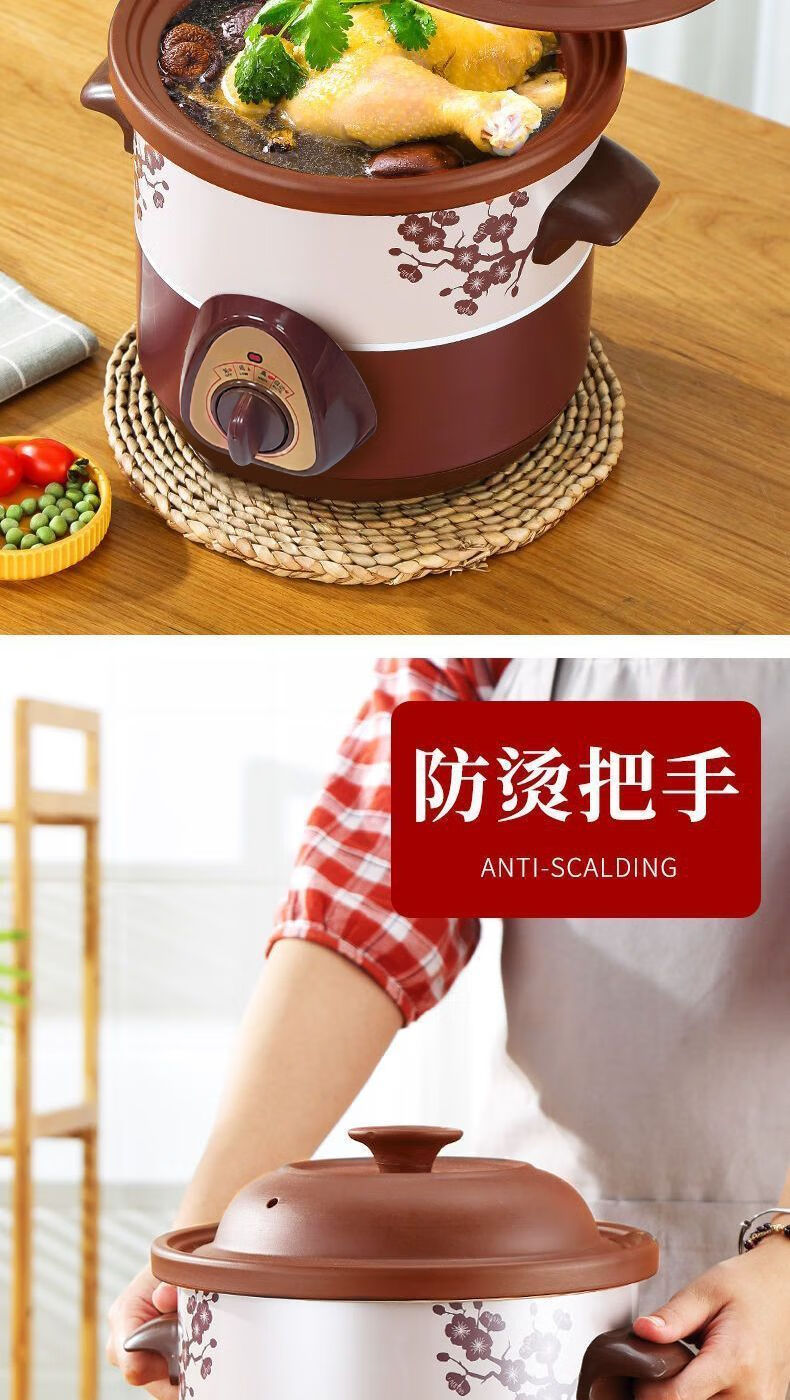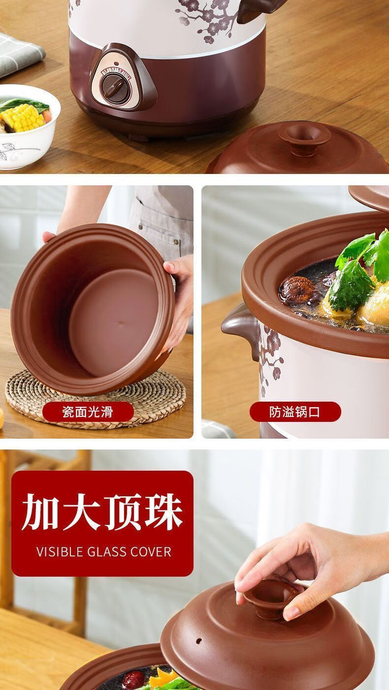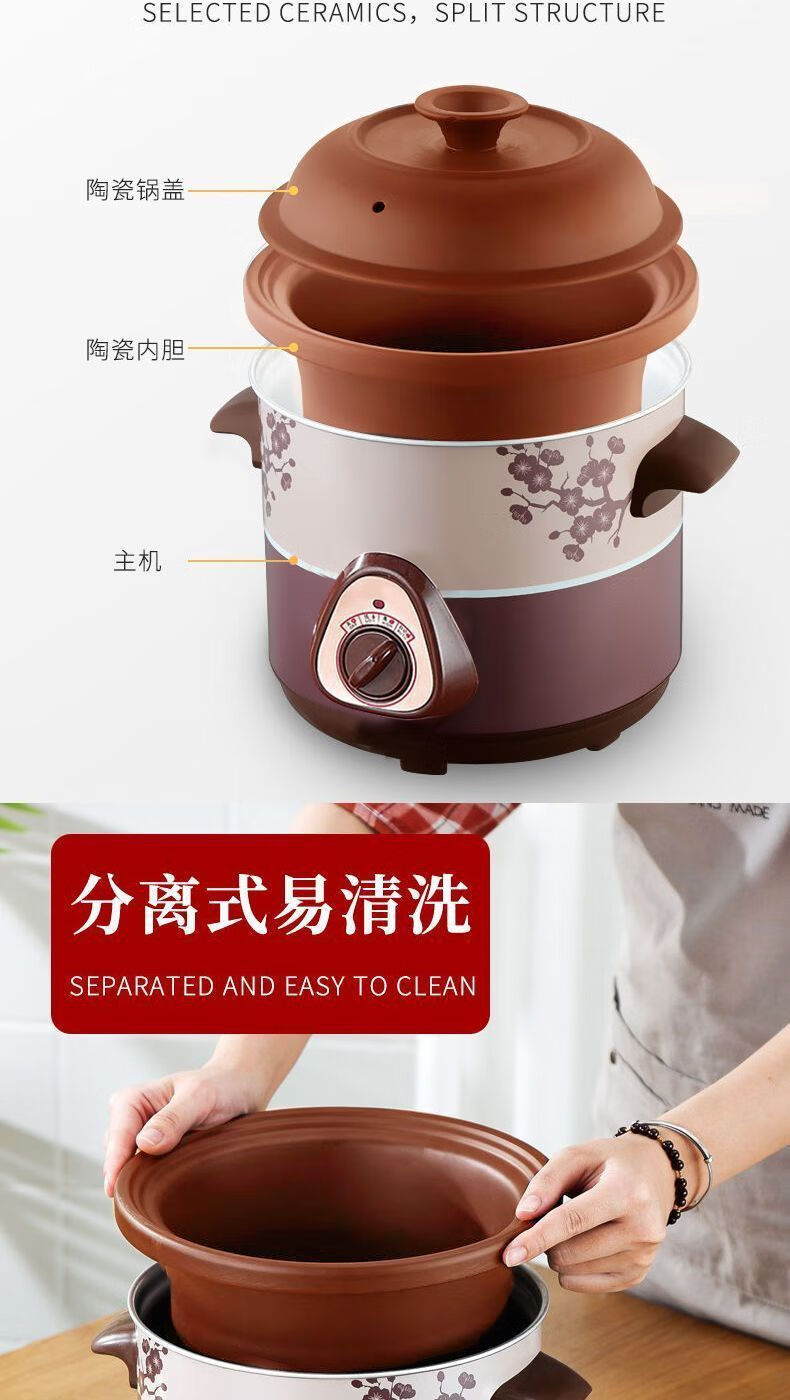 Electric stew pot, steamer, electric cooking pot, stew pot, casserole pot, stew and steam, all-in-one food supplement pot, stew soup cup, electric stew pot, electric casserole pot, soup pot, stew pot, water-proof porridge, multifunctional red porcelain electric stew pot 6L