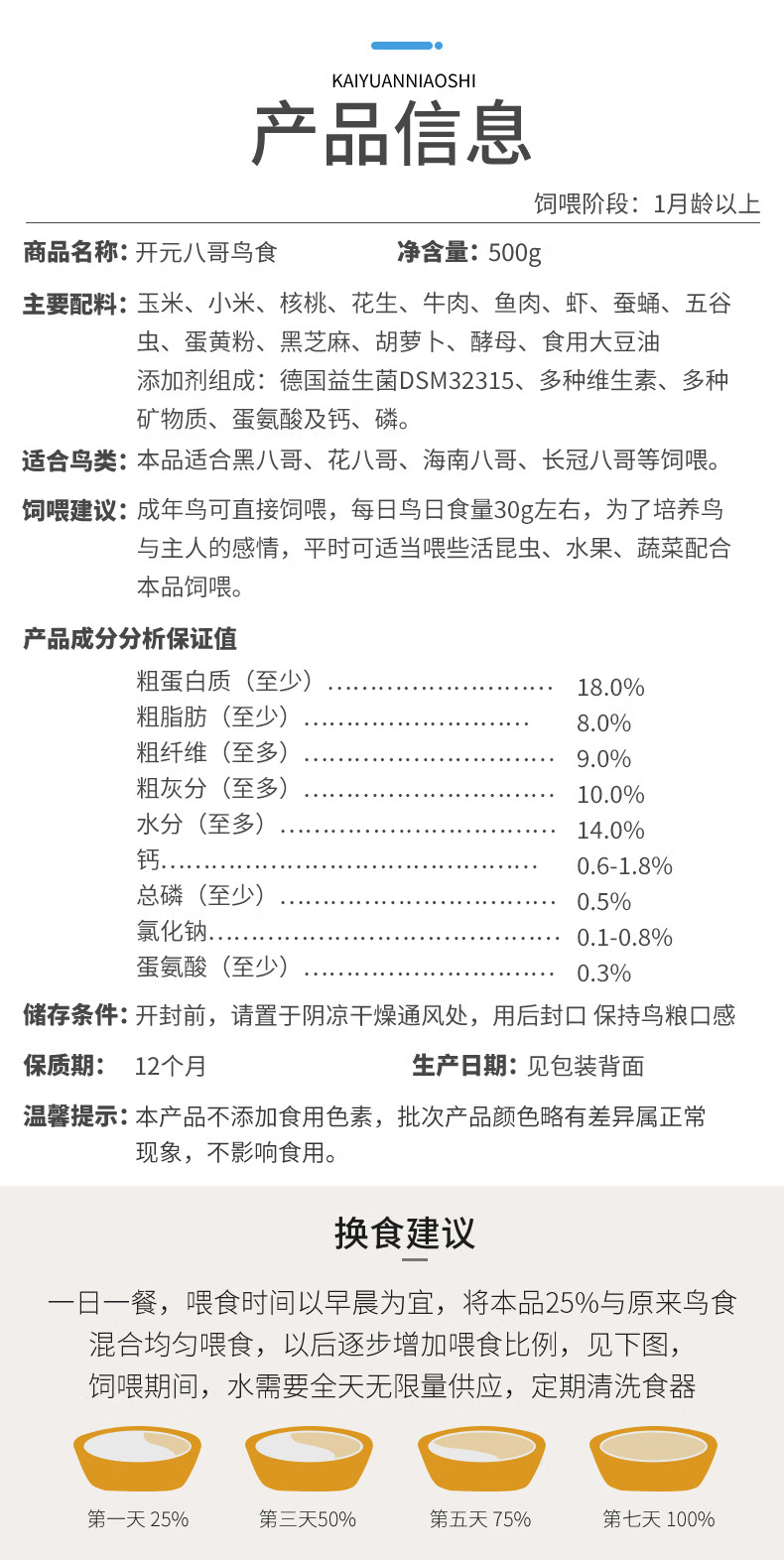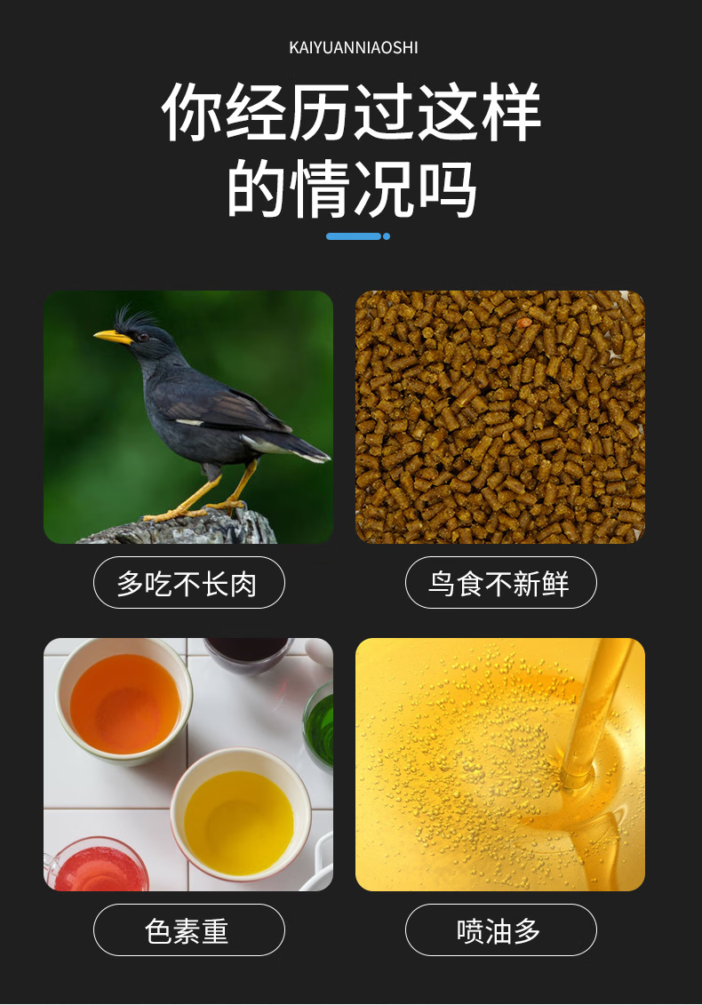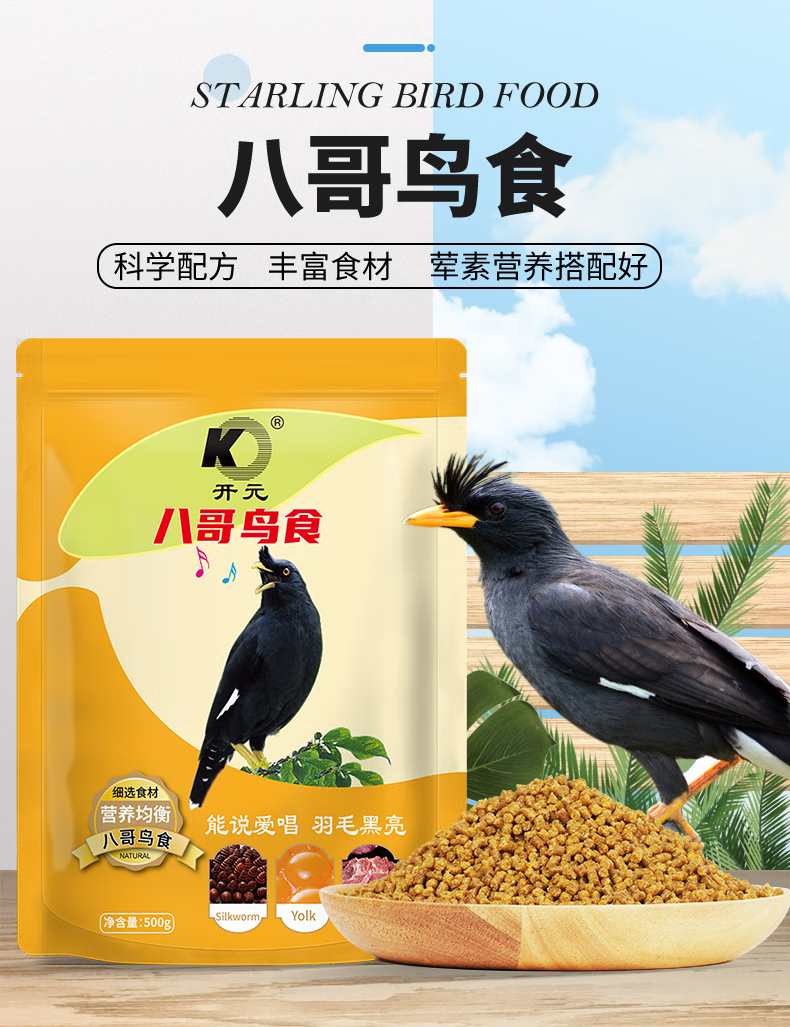 Kaiyuan starling special feed bird food myna bird food blackbird food eight bird feed bird food black eight nutritious food full price myna bird food 1kg barrel
