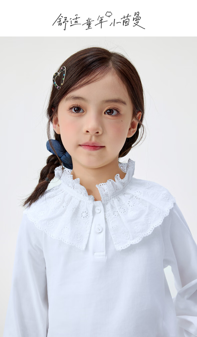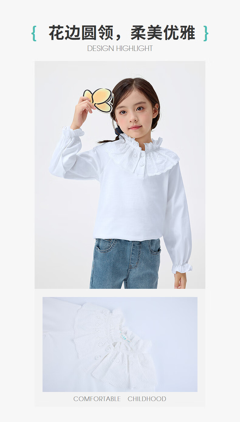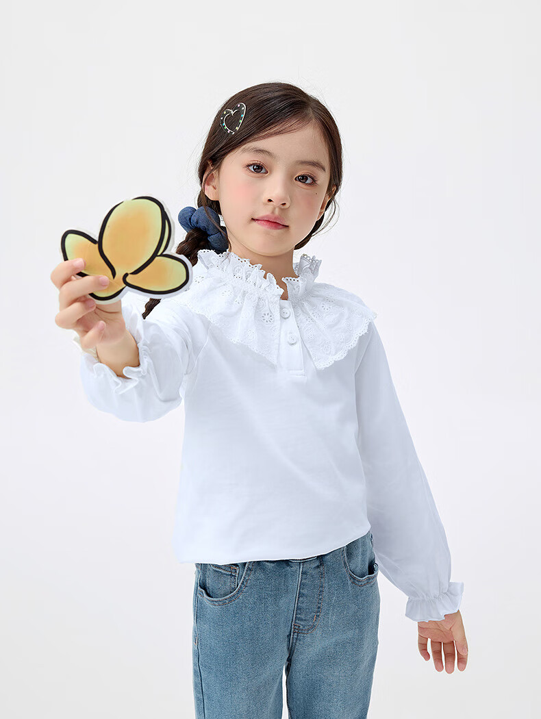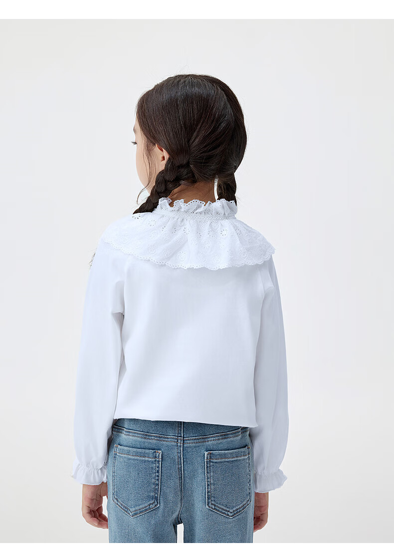 INMAN children's clothing girls lace collar shirt spring and autumn fashionable casual long-sleeved tops for middle and older children and girls off-white 140