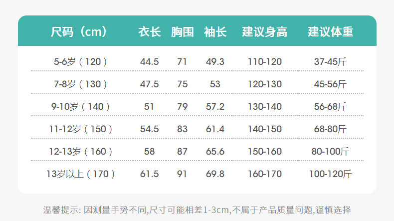 Size (cm) 42 44 46 48 50