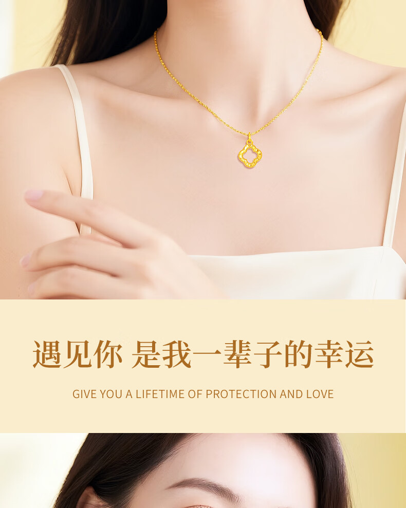 Chinese gold 18K gold four-leaf clover necklace for women 2025 new birthday gift for girlfriend and wife practical lucky four-leaf 18k four-leaf clover pendant free silver chain birthday gift