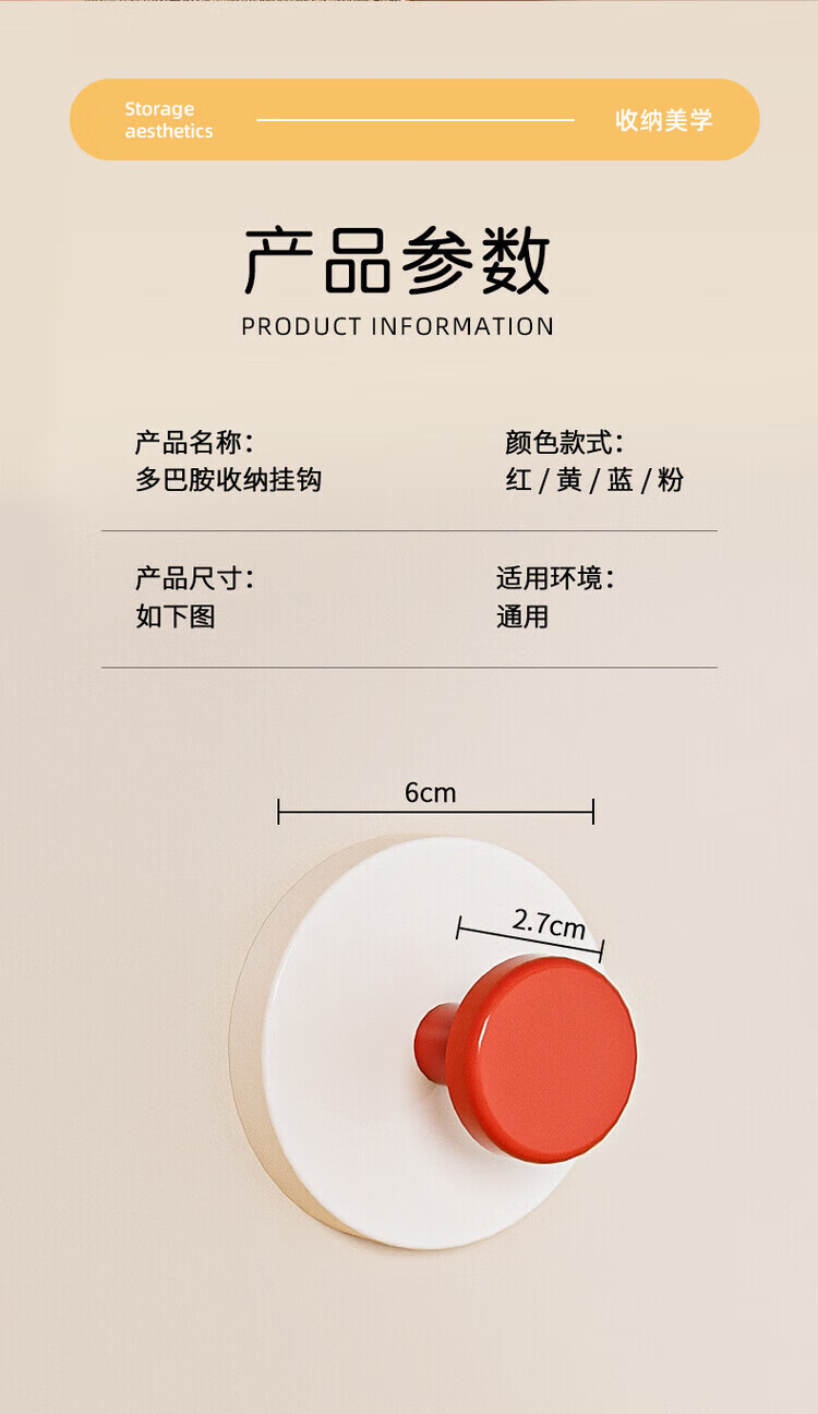 Plus dopamine high-looking no-punch no-mark hair ties and hair accessories storage rack strong adhesive dopamine color 5 pcs