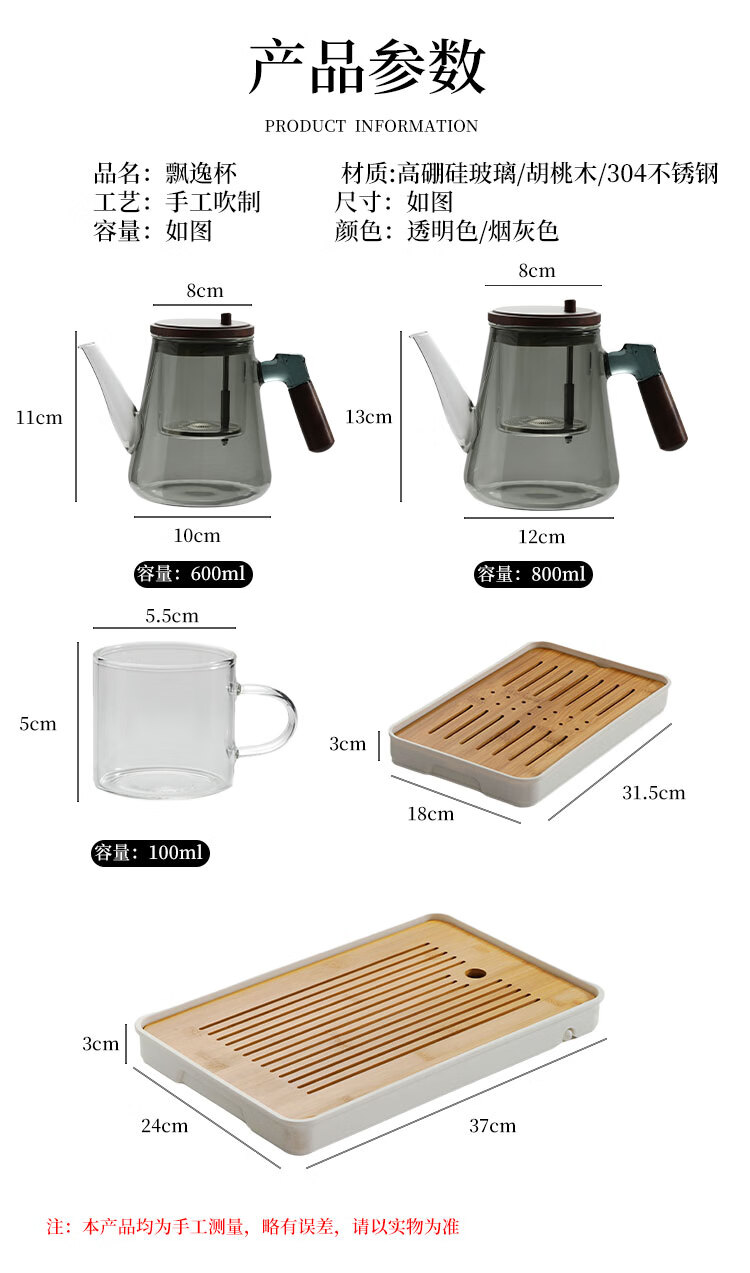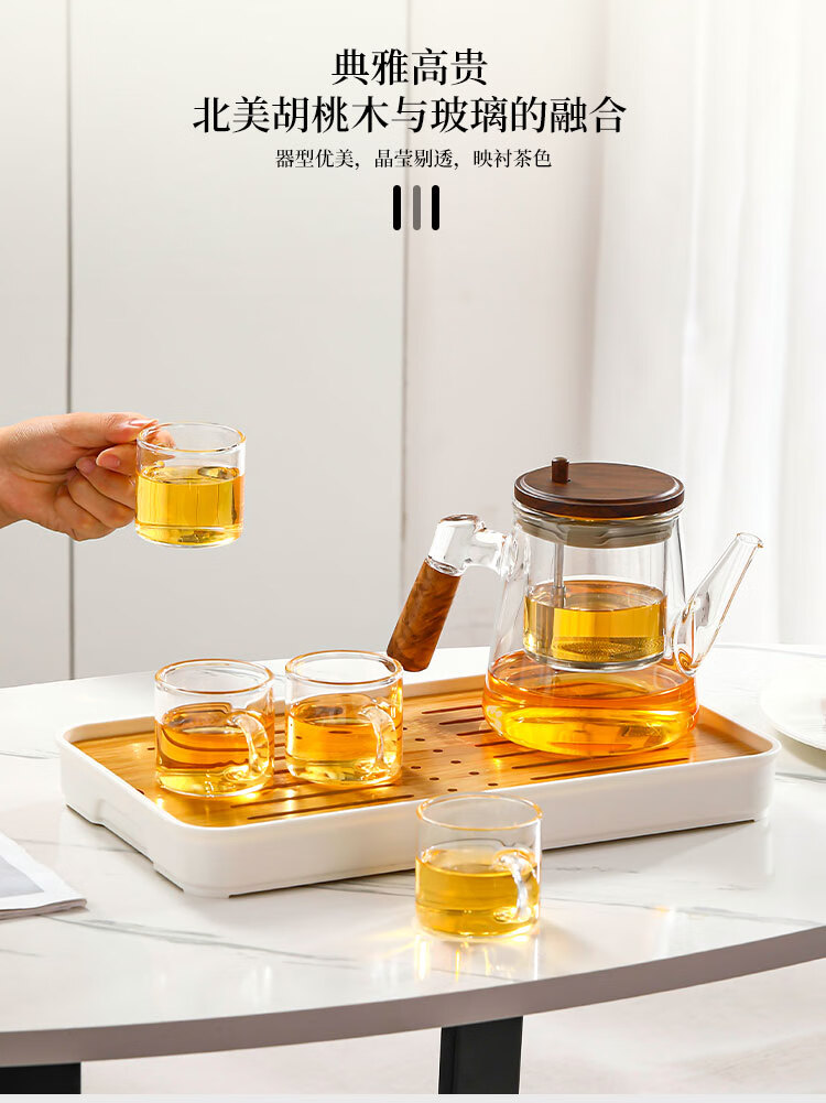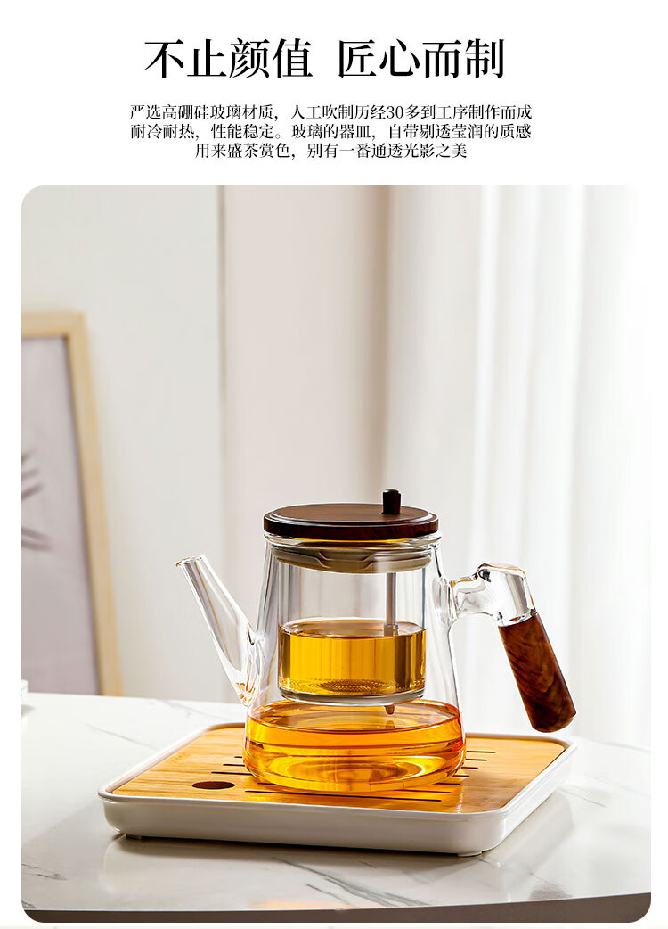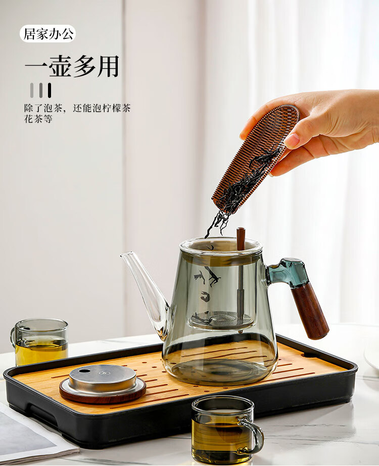 High-end glass teapot semi-automatic tea making artifact 25 new style elegant teapot tea cup set special tea set heat-resistant ash long mouth elegant teapot glass liner 800ml