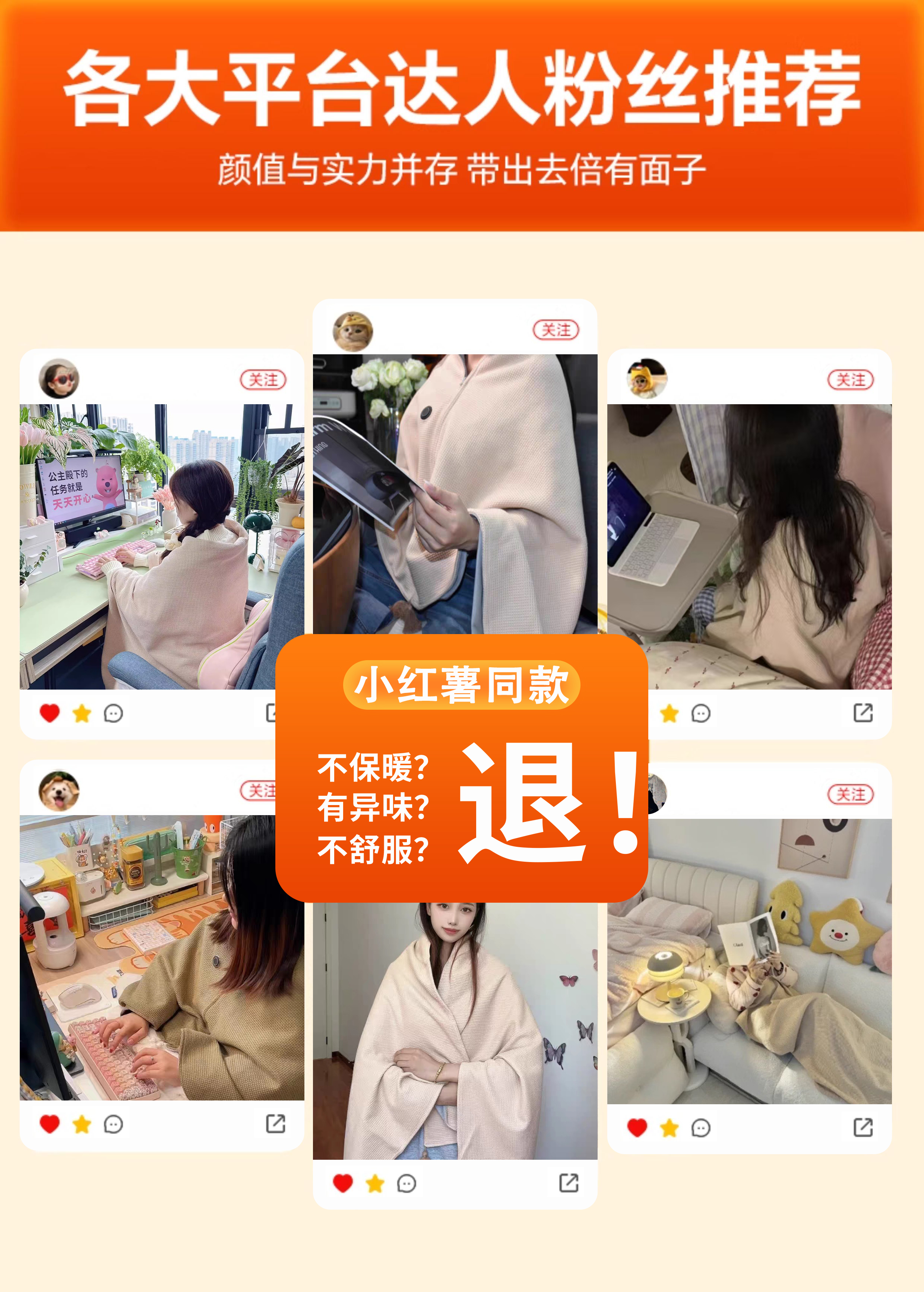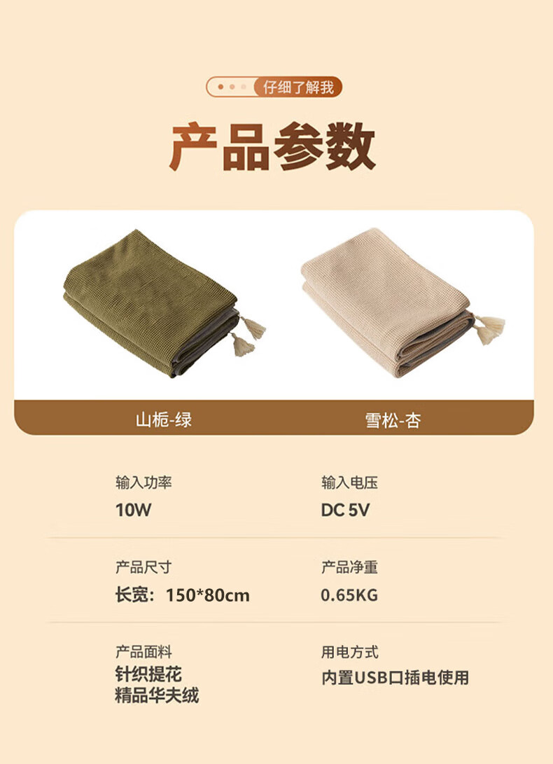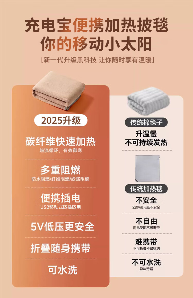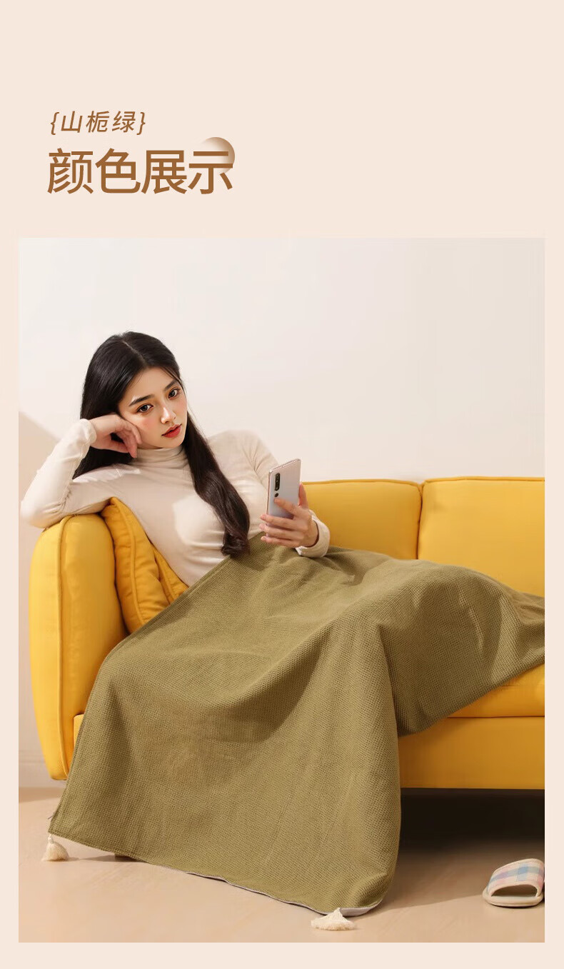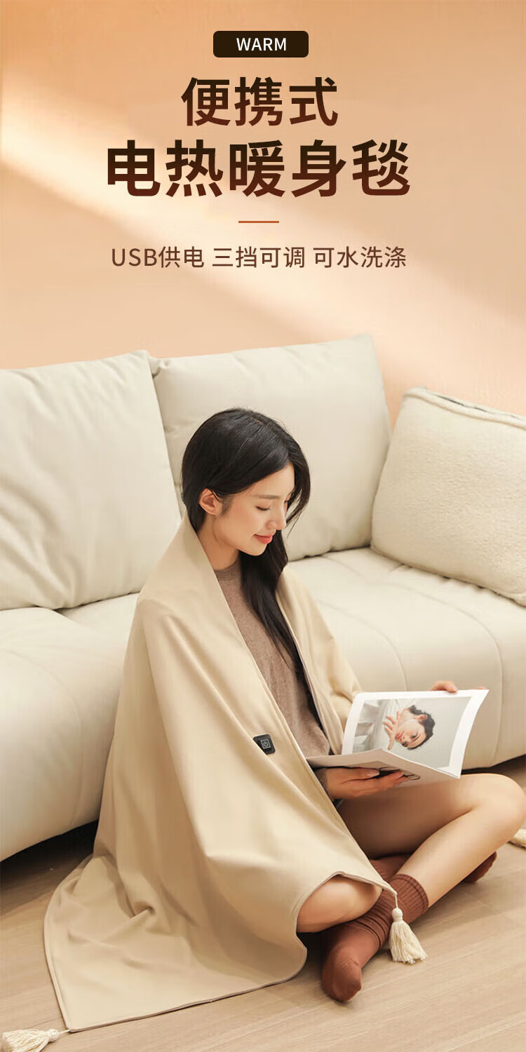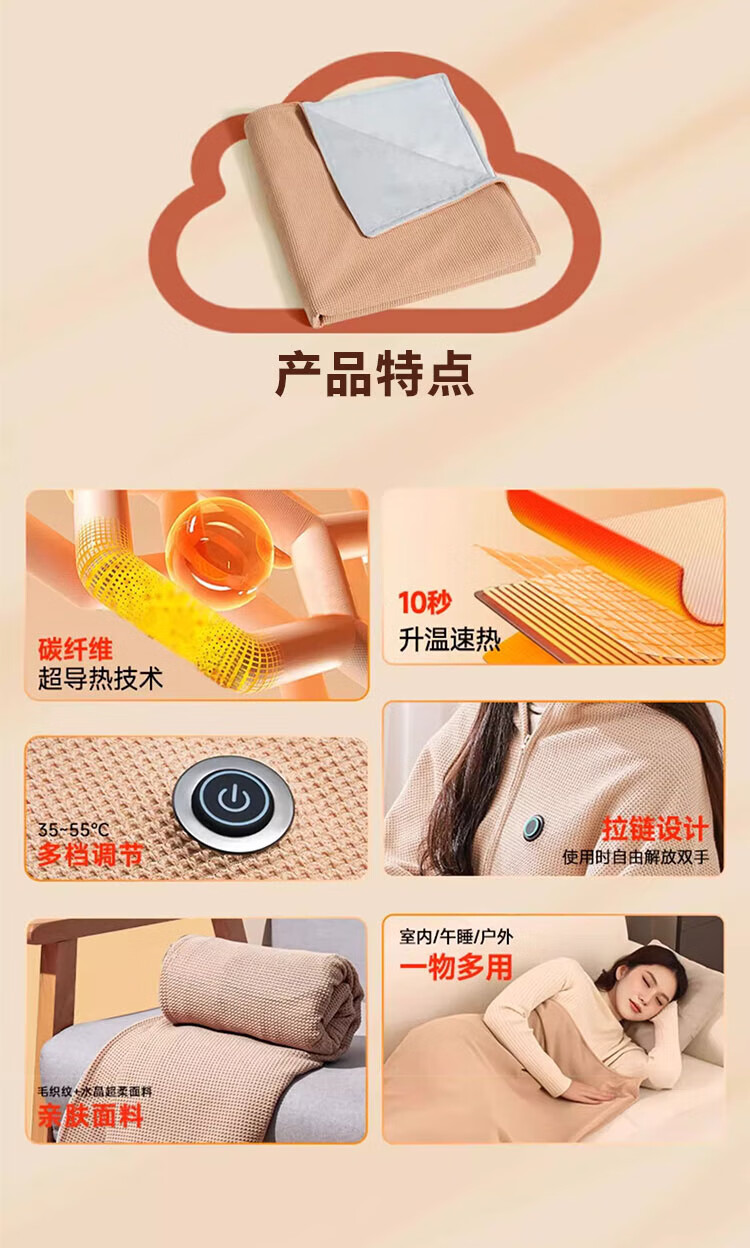 Mitcmolard German brand electric shawl blanket heating heating blanket usb warm-up office small single leg covering blanket 8 zones 10s graphene quick heating 150*80cm thick and machine washable - cedar apricot usb plug-in free | three-speed temperature adjustment | 3c certified power bank | close-fitting quick heating