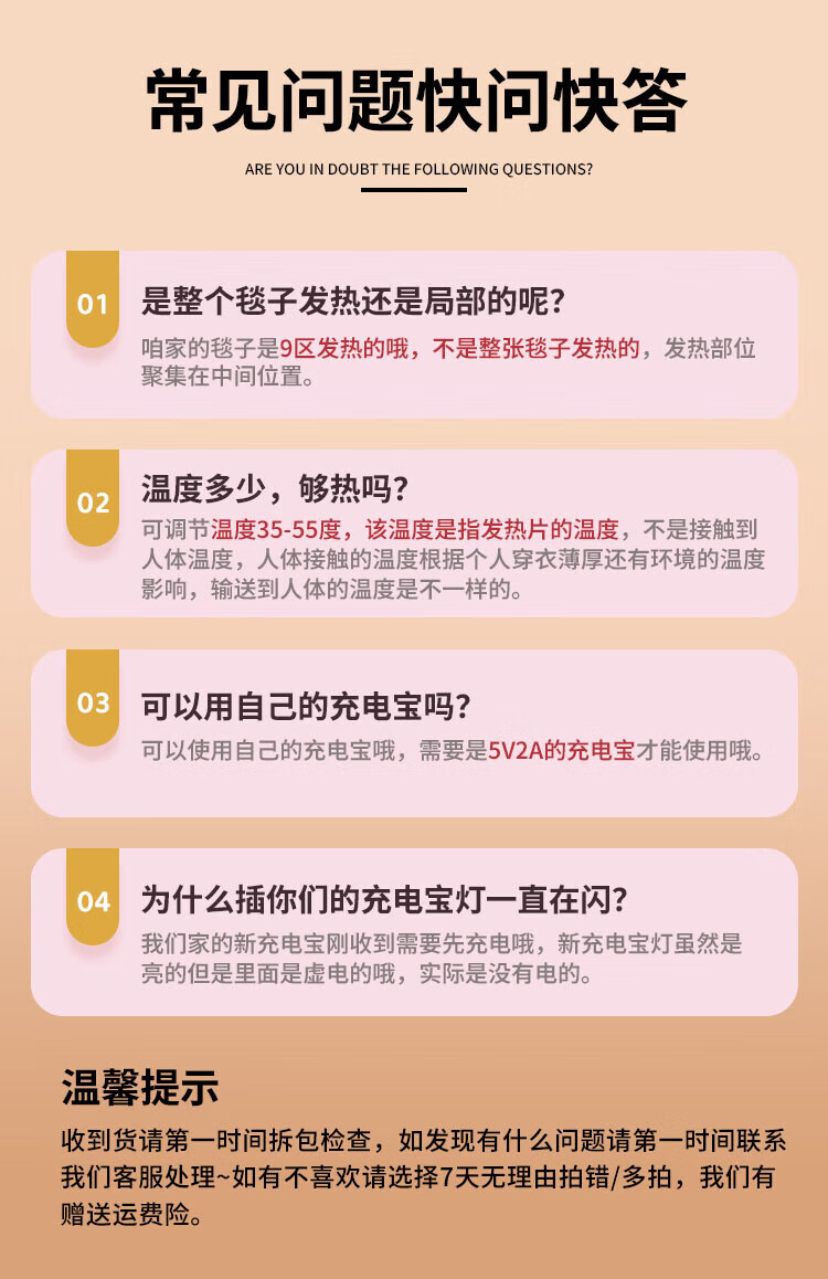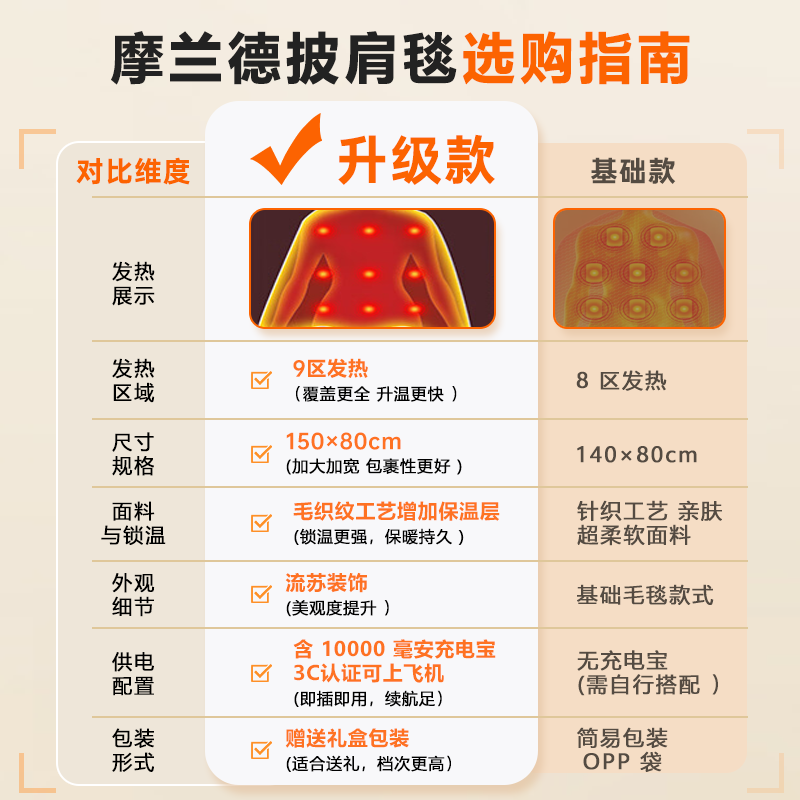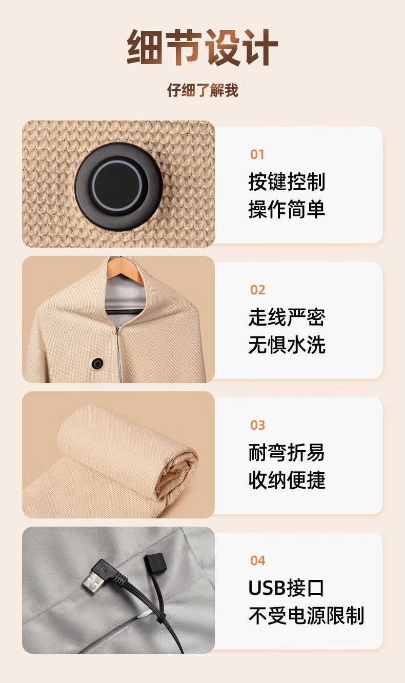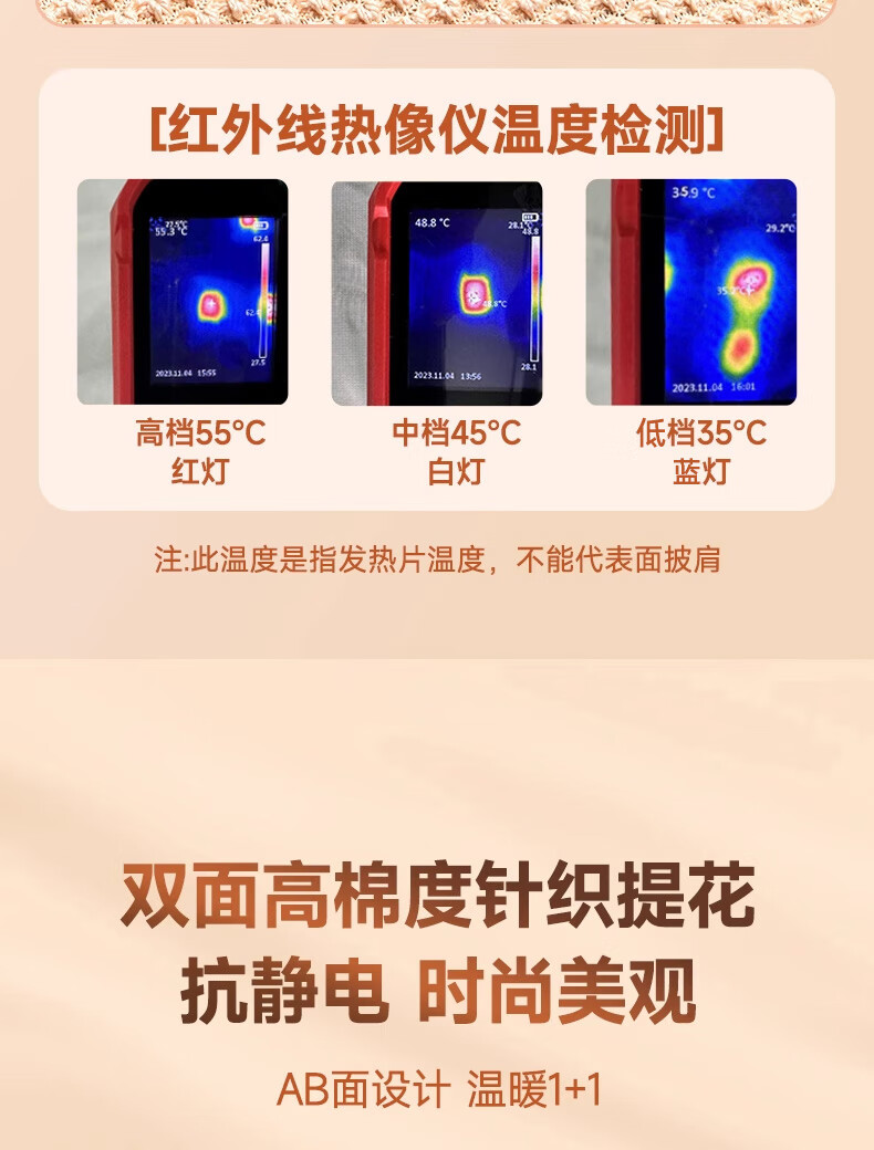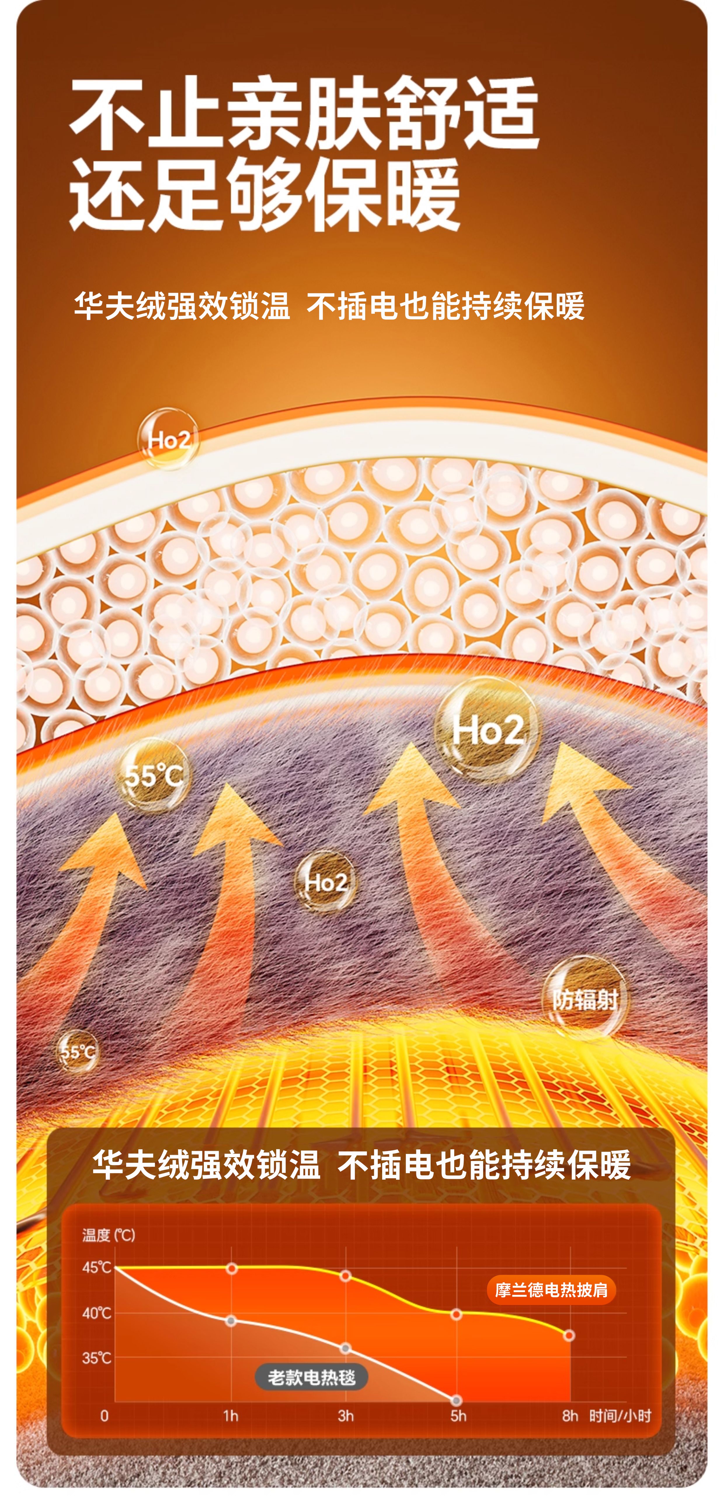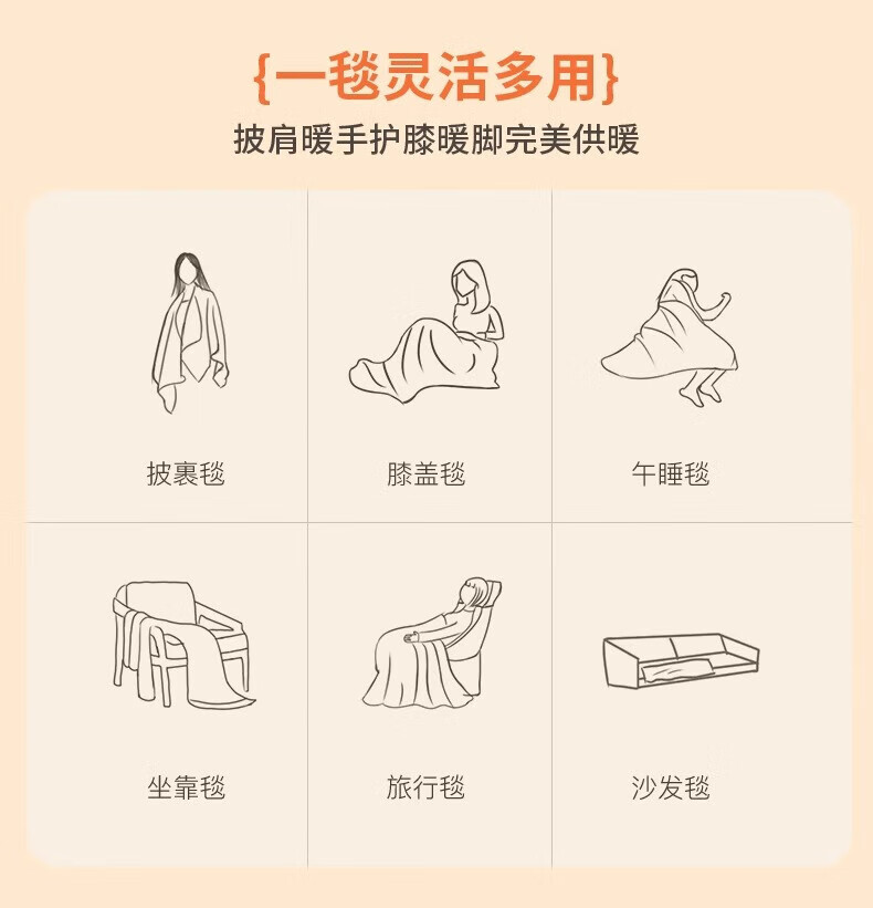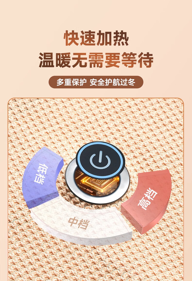 Mitcmolard German brand electric shawl blanket heating heating blanket usb warm-up office small single leg covering blanket 8 zones 10s graphene quick heating 150*80cm thick and machine washable - cedar apricot usb plug-in free | three-speed temperature adjustment | 3c certified power bank | close-fitting quick heating