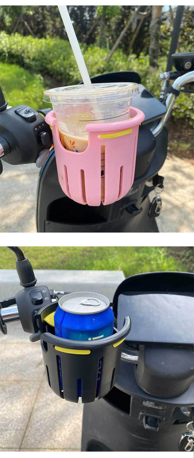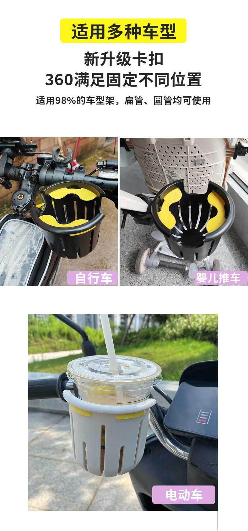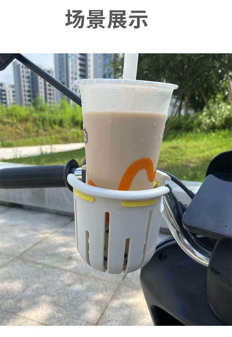 Electric vehicle water cup holder, universal bicycle, milk tea, coffee, water bottle holder, motorcycle, children's stroller, milk bottle drink holder, white + yellow inner pad, cup holder, opp bag packaging