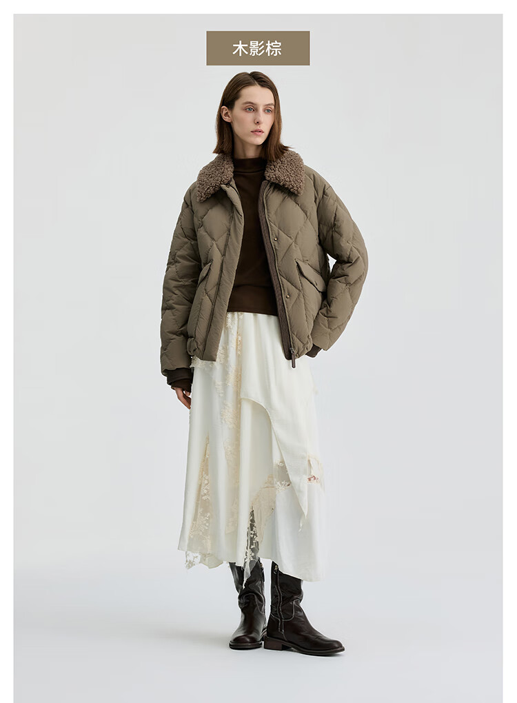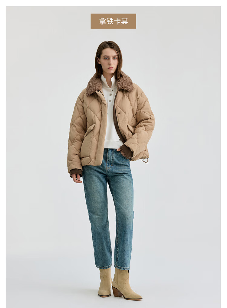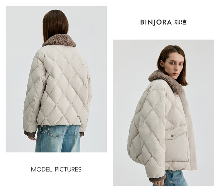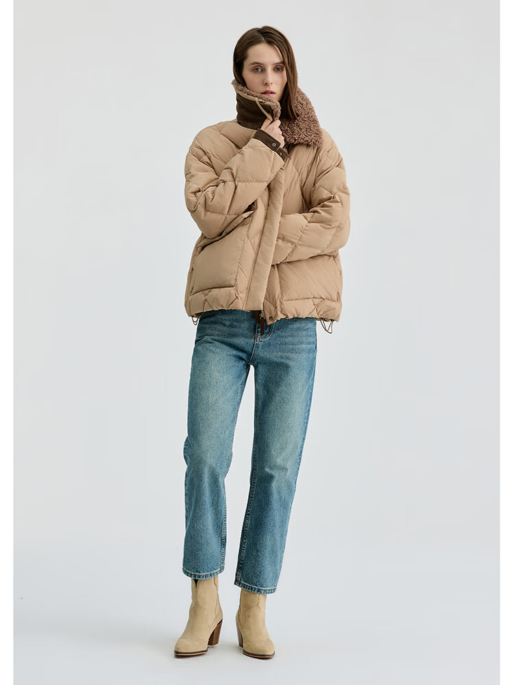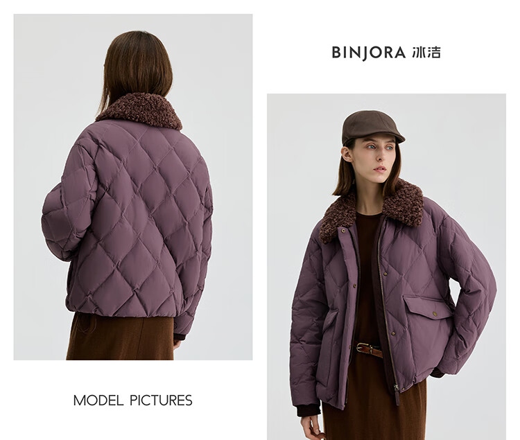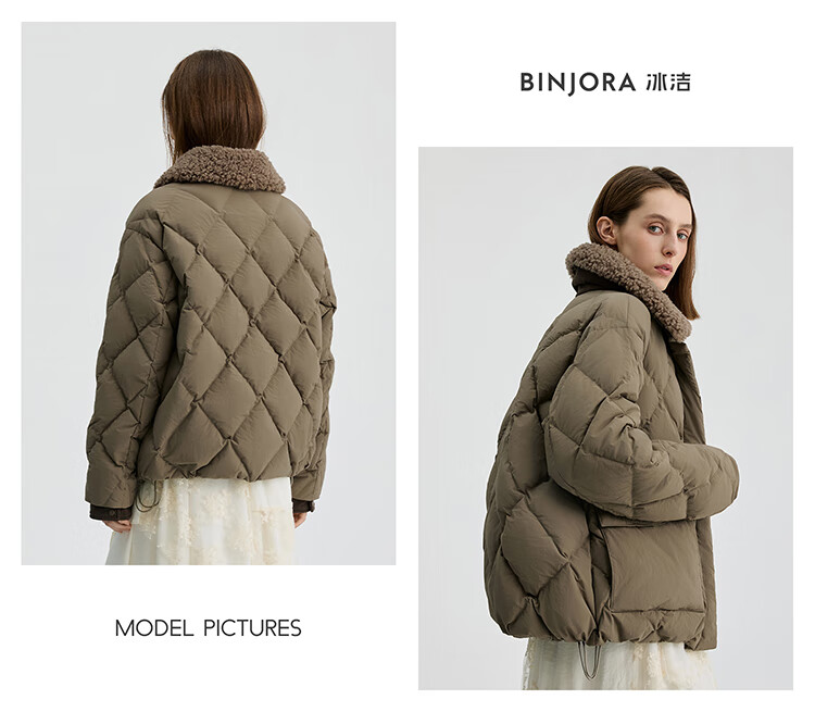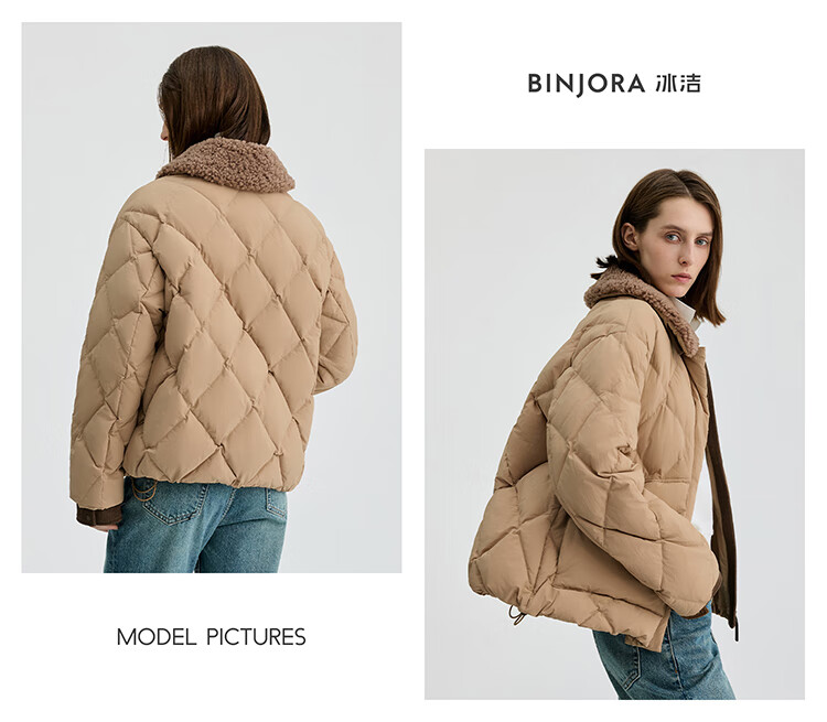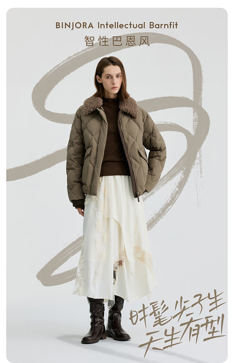 Bingjie BINJORA 25 Winter 95 Plush Collar Bath Style Down Jacket Women's Short J5400JI40 Star Style Wood Shadow Brown Star Style XS 155/80A Weight Approximately 45-60KG