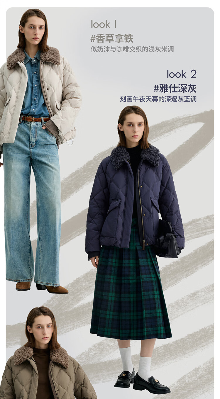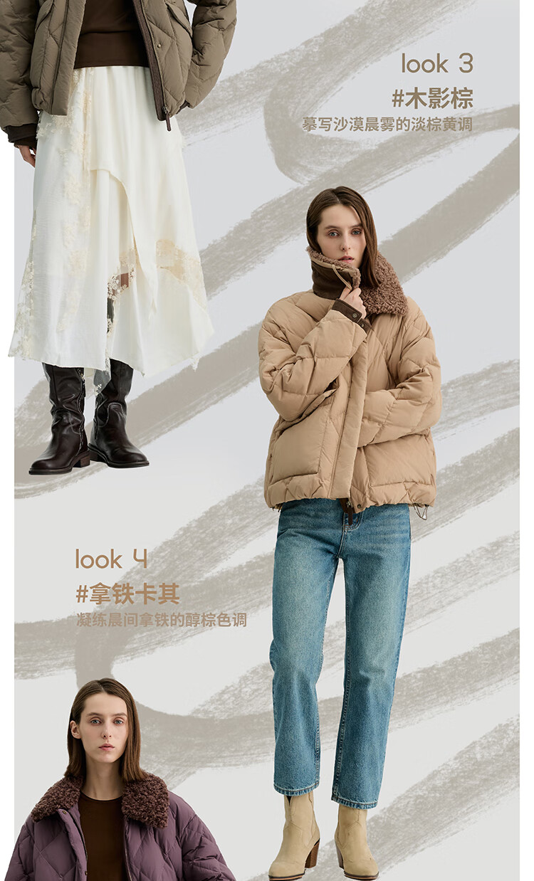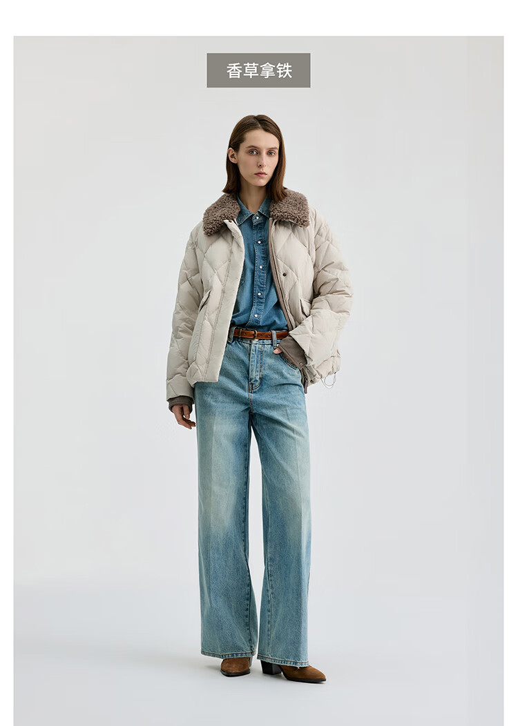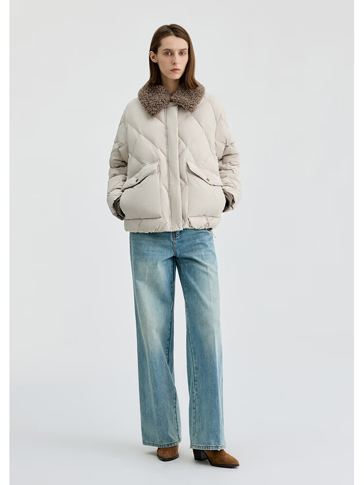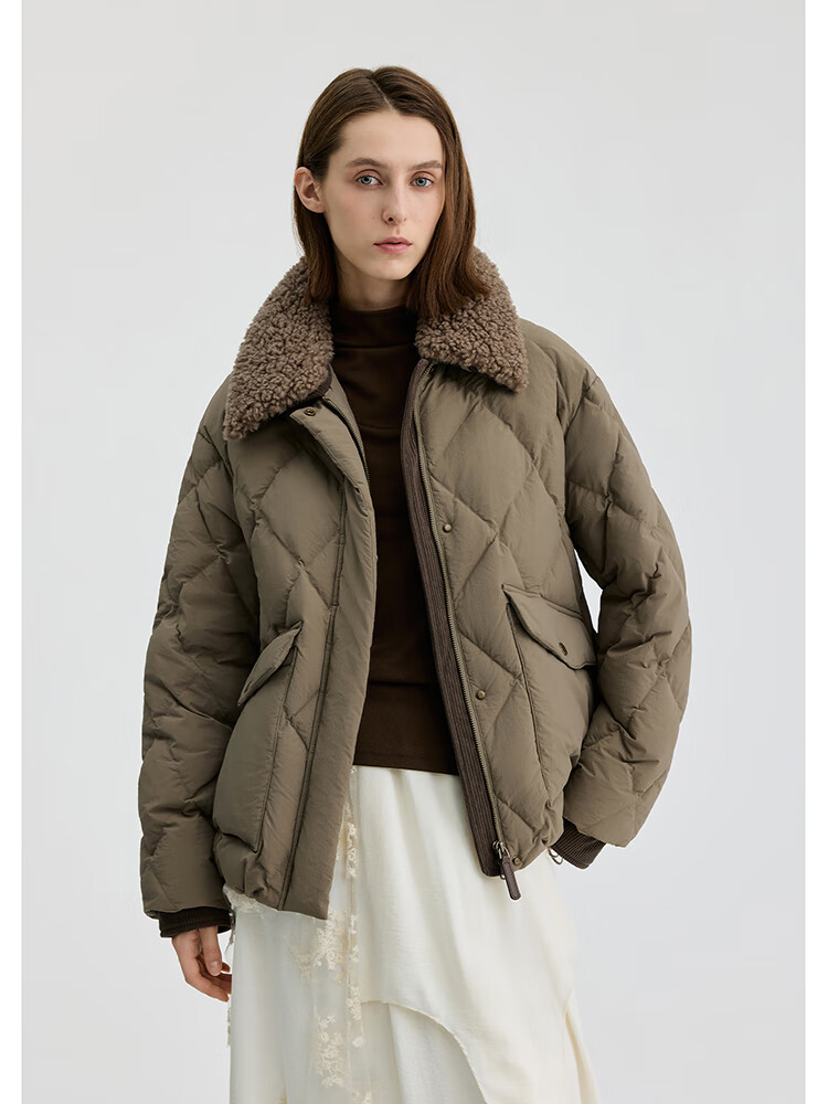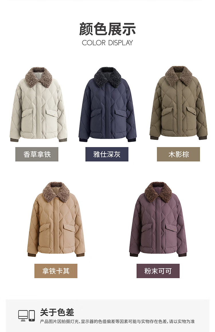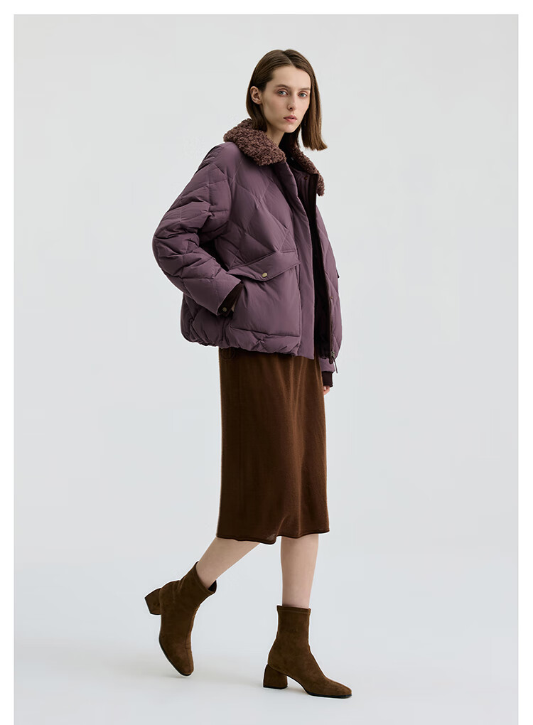 Bingjie BINJORA 25 Winter 95 Plush Collar Bath Style Down Jacket Women's Short J5400JI40 Star Style Wood Shadow Brown Star Style XS 155/80A Weight Approximately 45-60KG