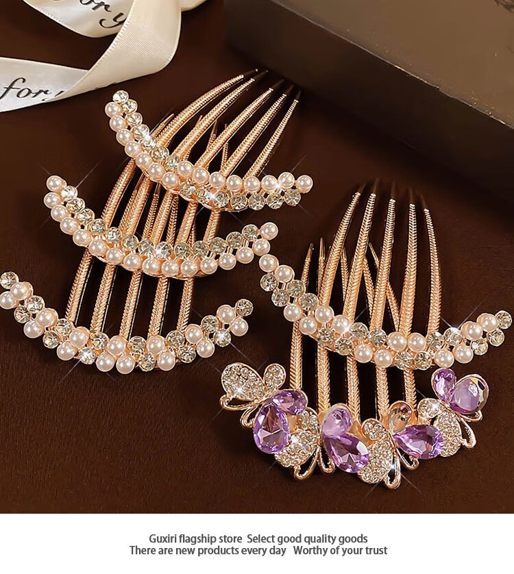 Pearl upside-down comb hairpin for women 2025 new high-end hairpin artifact hairpin high-end hair comb hairpin headdress 11 high-end 2-piece set