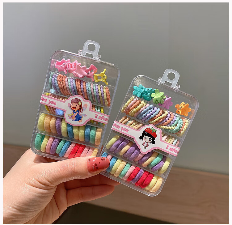 Garnbei's new candy-colored hair tie rubber band for children that does not hurt the hair, hair rope, girl's box, hair tie, baby hair rope headdress, sweet color box set, 1 piece