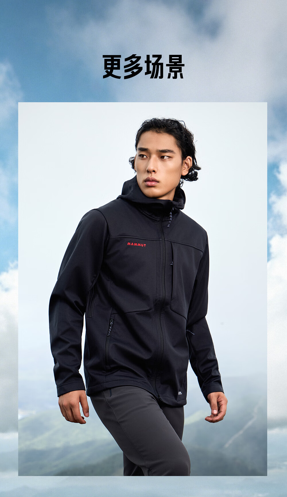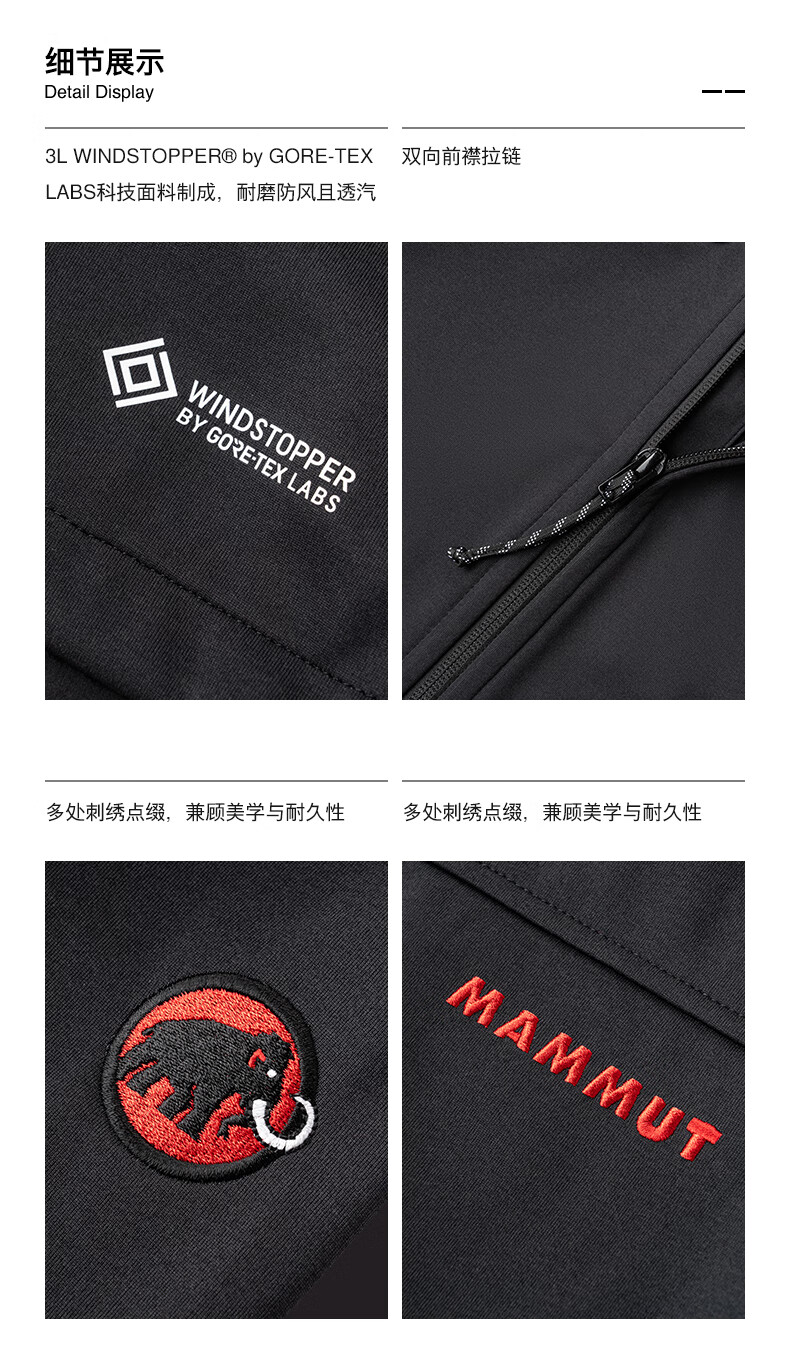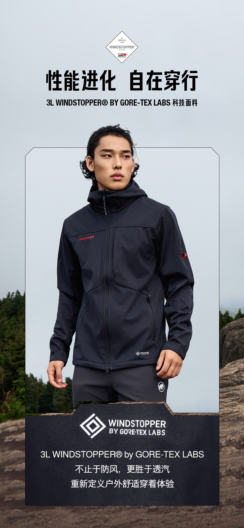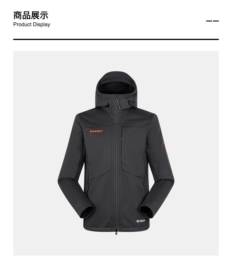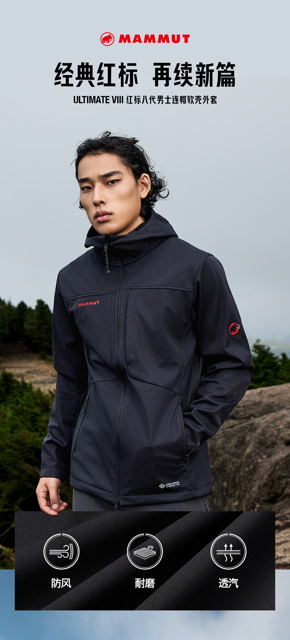 MAMMUT Red Label 8th Generation Ultimate VIII Men's Outdoor Windproof and Water-Repellent Jacket Soft Shell Black L