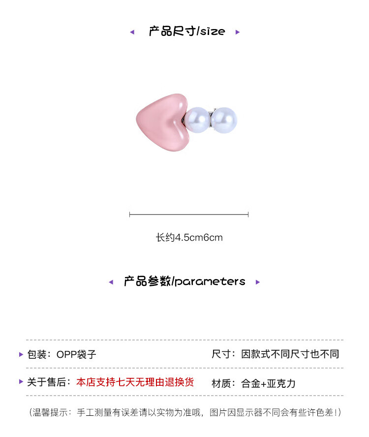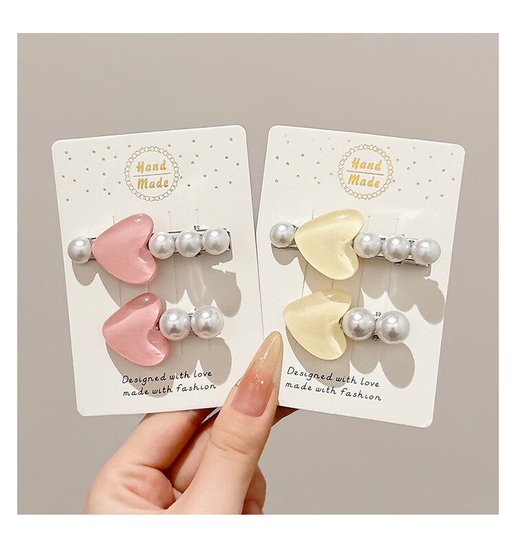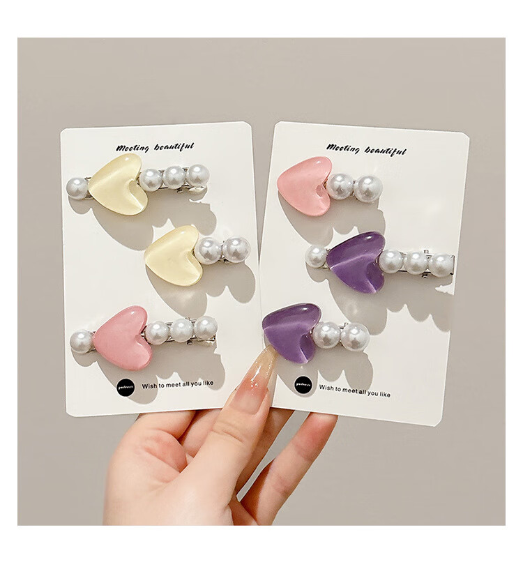 Add gentle temperament, jelly color love pearl hairpin, side clip, girly bangs duckbill clip, forehead Internet celebrity hairpin, pink mermaid bubble clip, pair