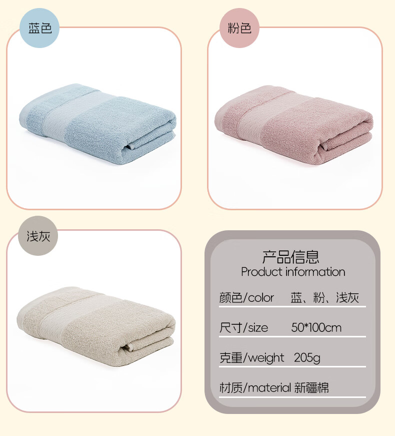 Various types of children's pure cotton bath towels 50*100cm thick absorbent bath towels for students at home not easy to shed lint dot satin bath towels 50*100cm off-white
