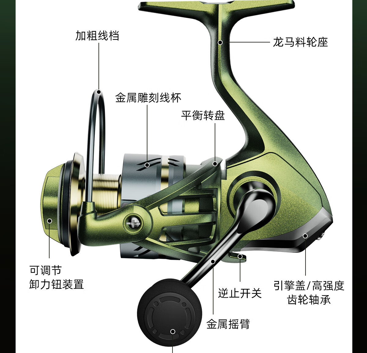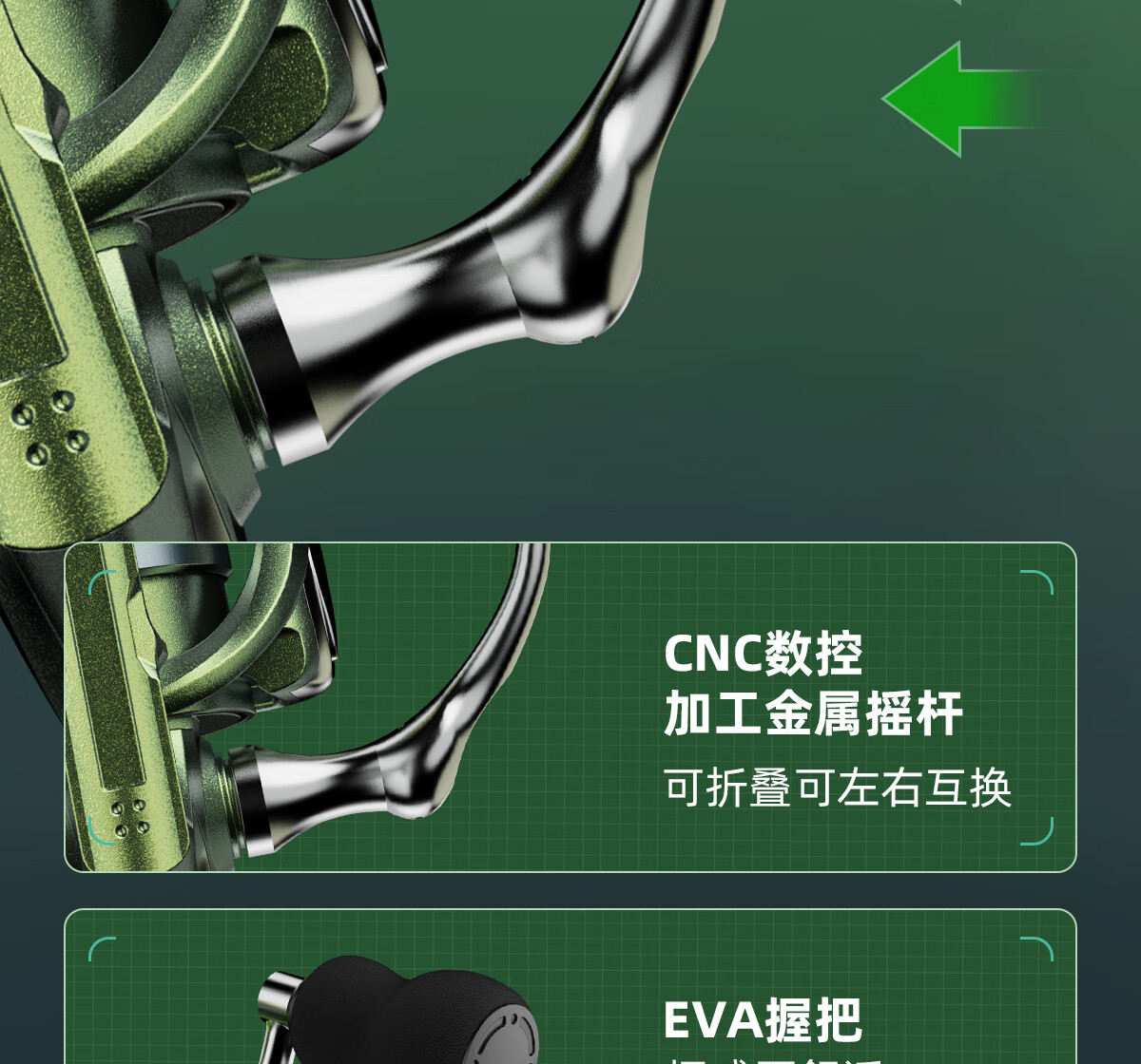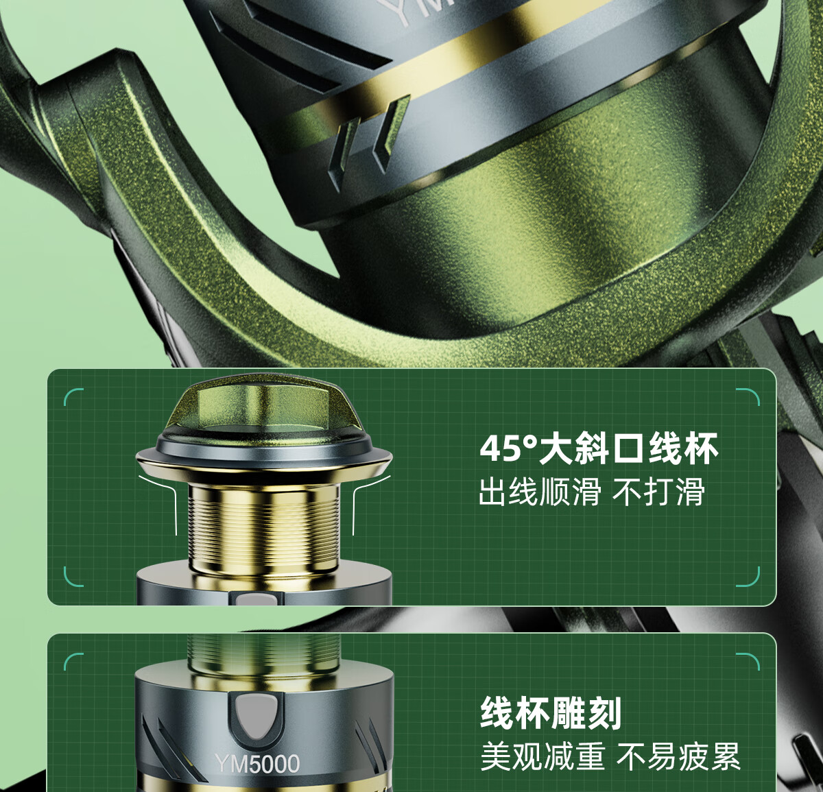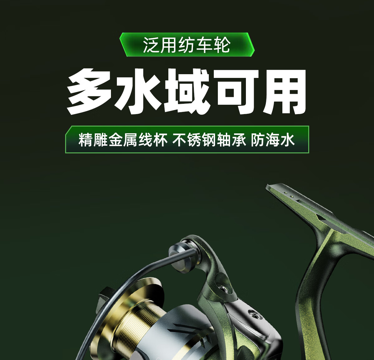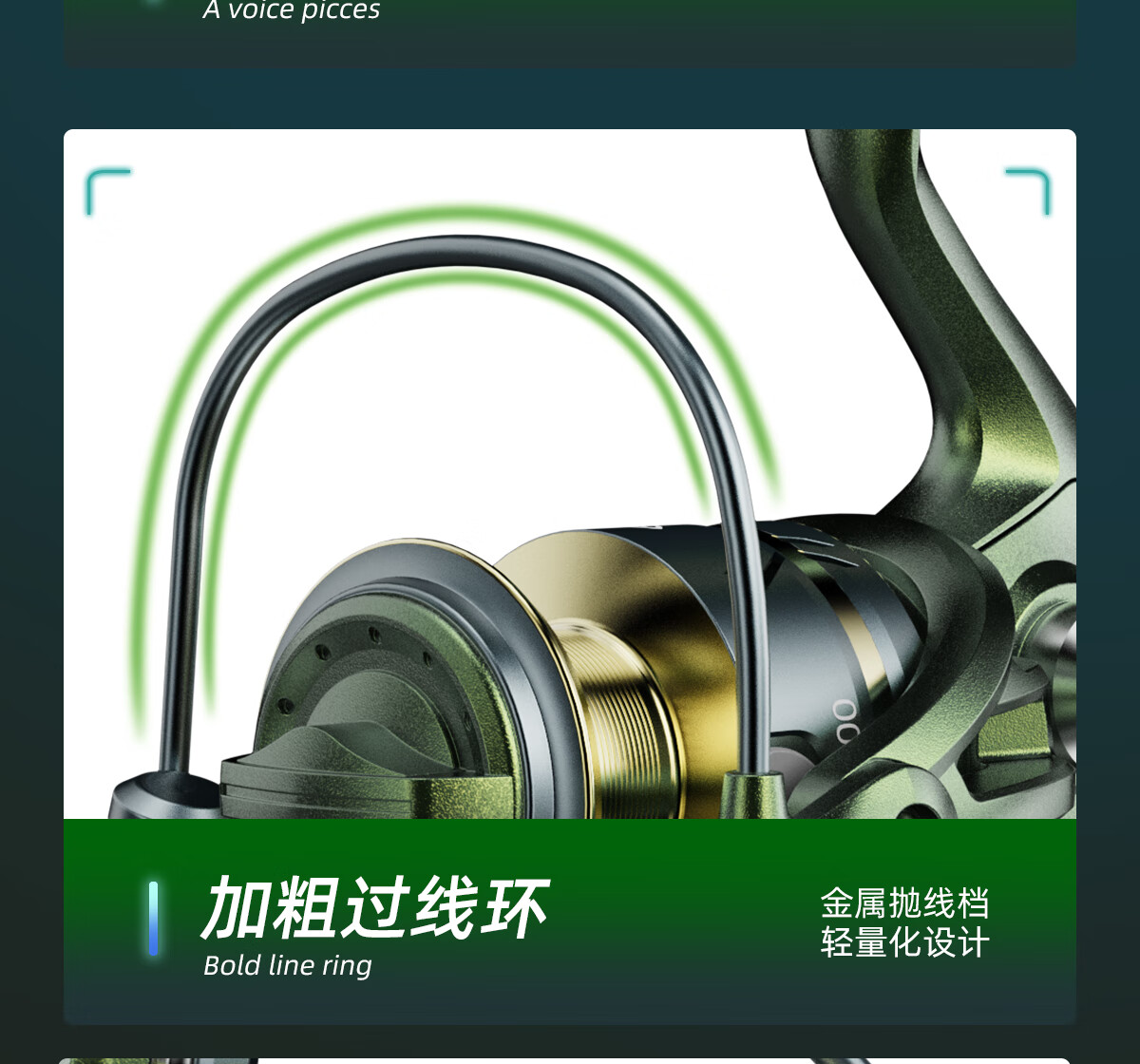 All-metal spinning wheel fishing wheel, multi-water general-purpose wheel, high smooth fishing line wheel, sea pole throwing long-distance fishing wheel, multi-water general-purpose wheel, gold and green model 3000 series