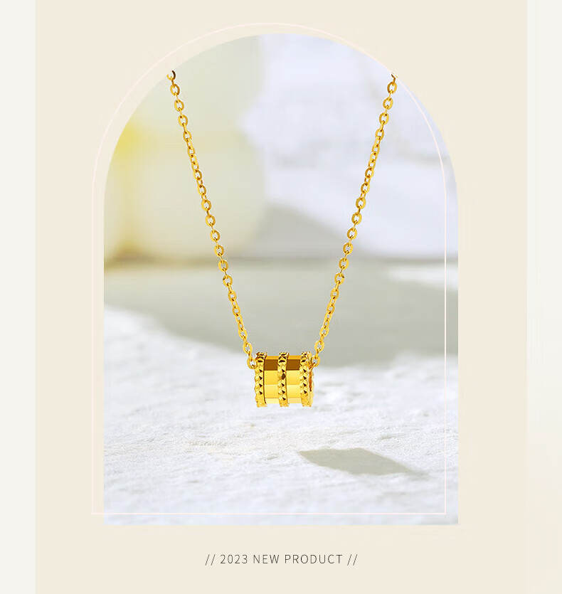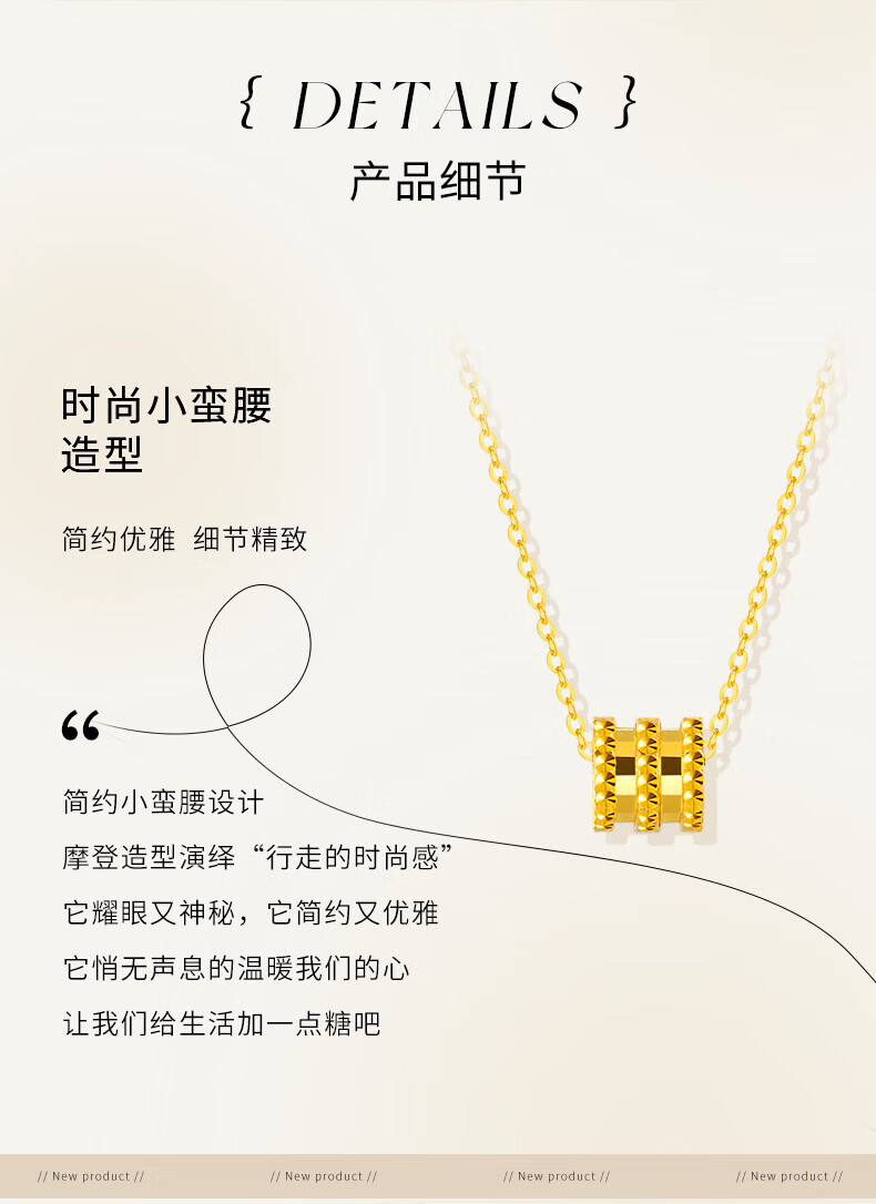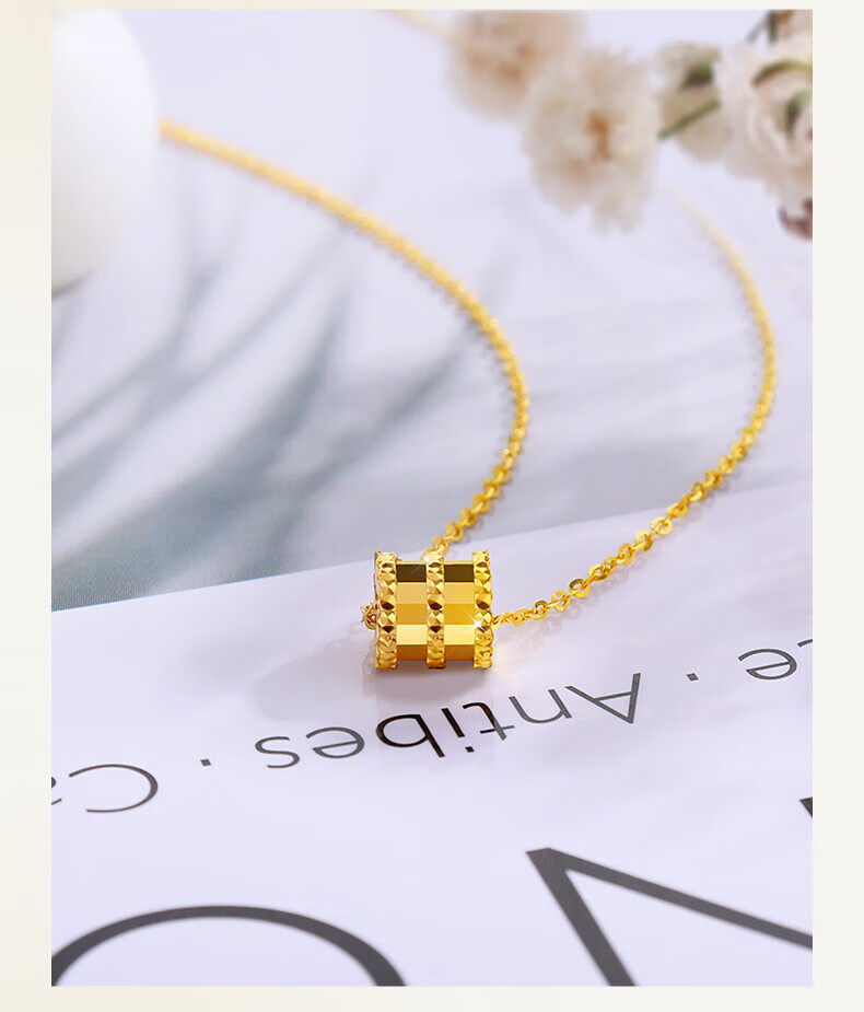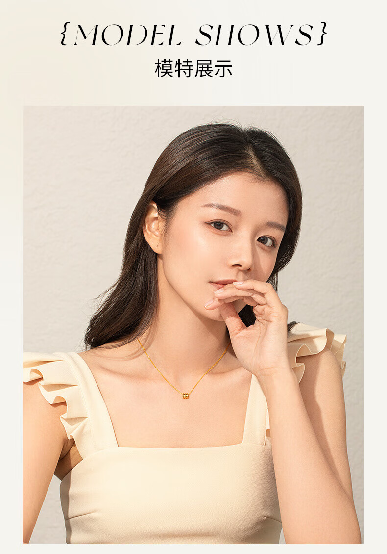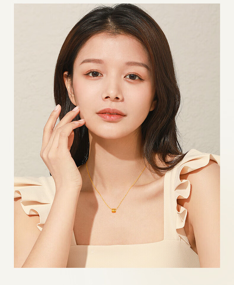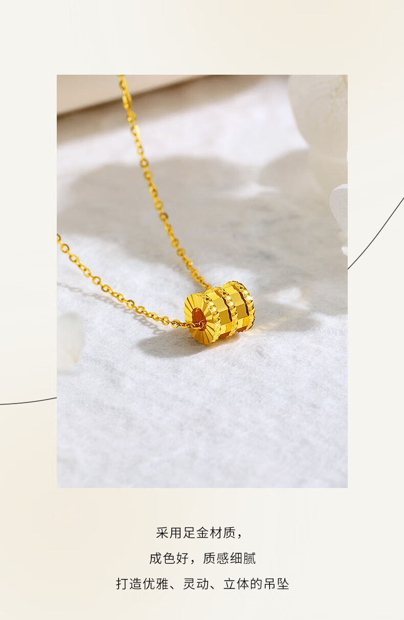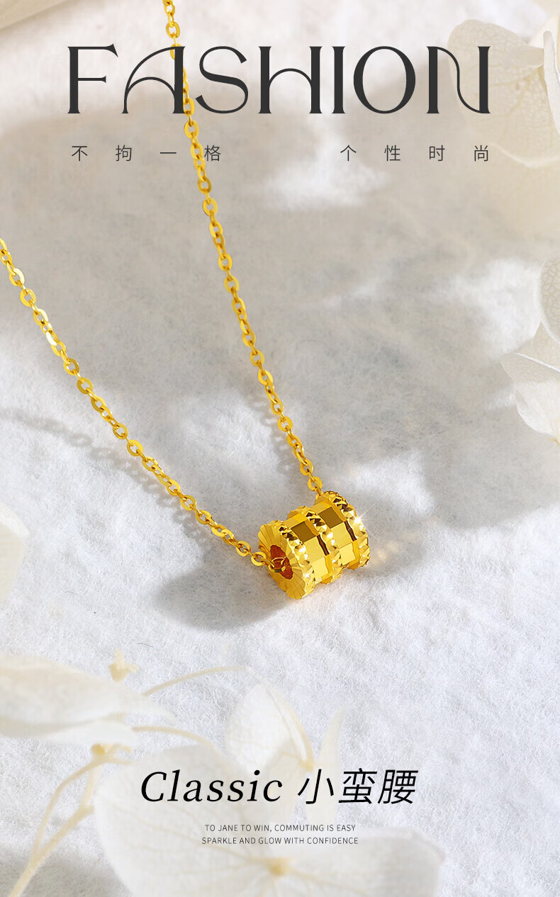 Chow Tai Fook Chinese Valentine's Day gift gold necklace women's pure gold 999 small waist necklace clavicle chain for my wife Chinese Valentine's Day pure gold pendant + 18k titanium chain