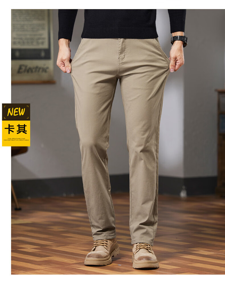 Wear-resistant and durable casual pants men's new spring and autumn thin men's pants loose straight business versatile men's pants 258 khaki high quality 32 recommended 130-140 Jin Jin equals 0.5 kg
