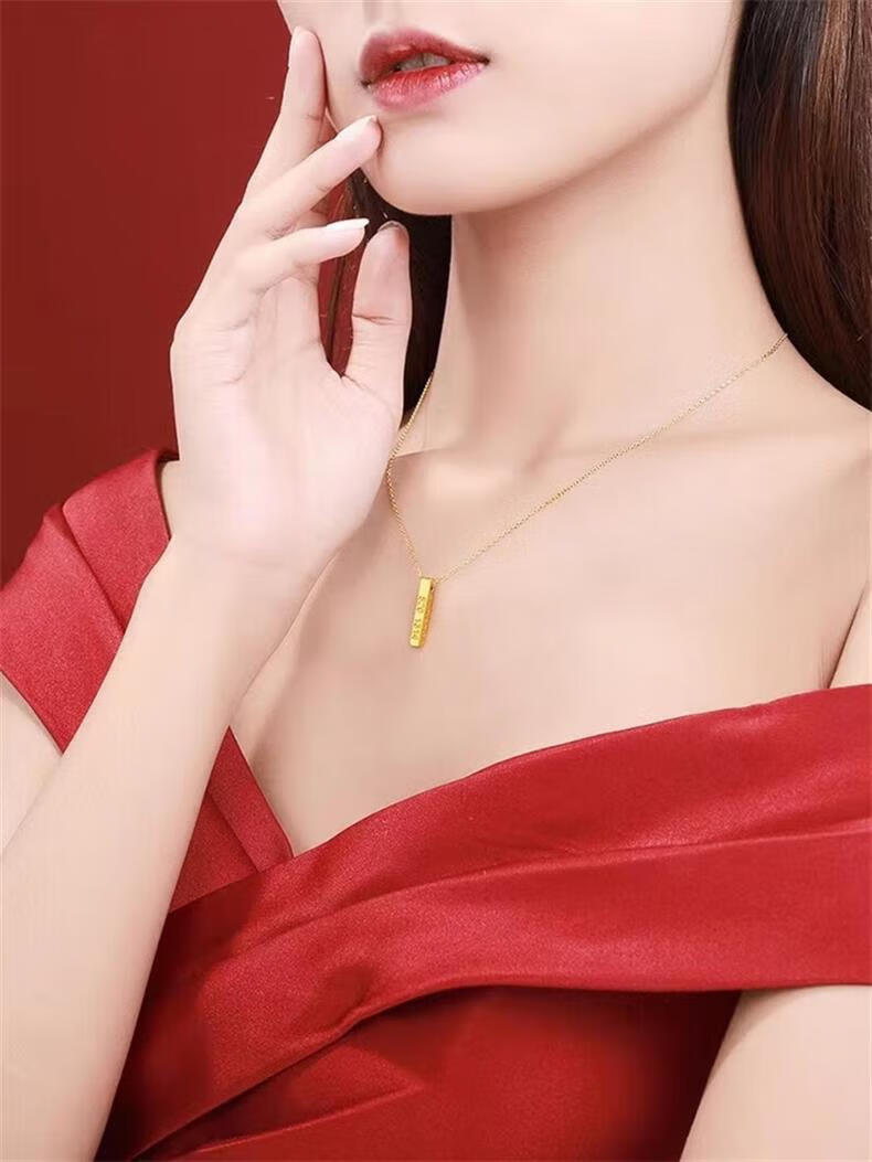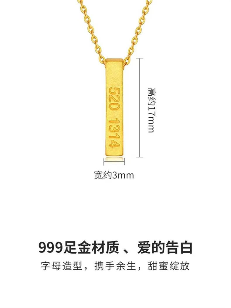 Chow Tai Fook Gold Small Gold Bar 5201314 Pendant Women's 999 Pure Gold Birthday Gift for Girls and Wife Chinese Valentine's Day Gift Chinese Valentine's Day Pure Gold 999 Pendant + 925 Necklace