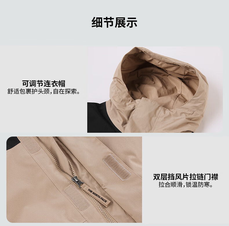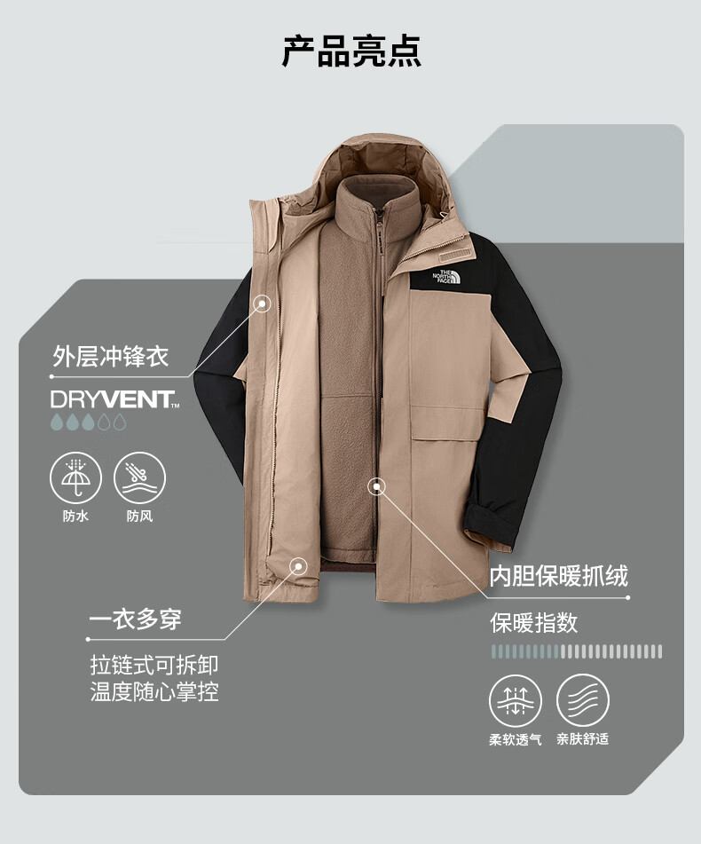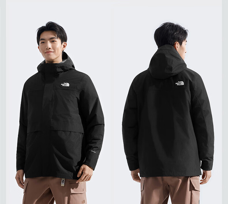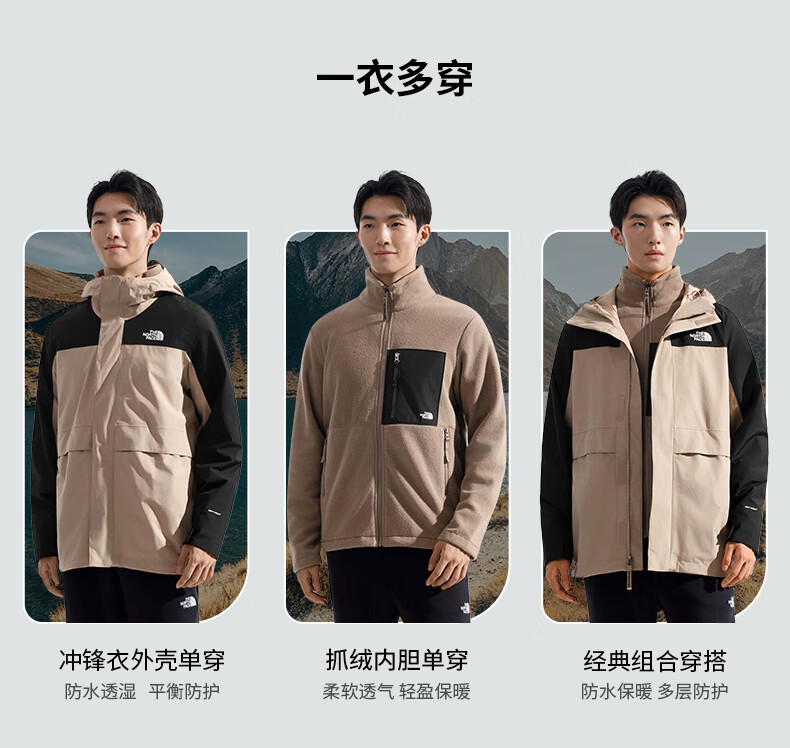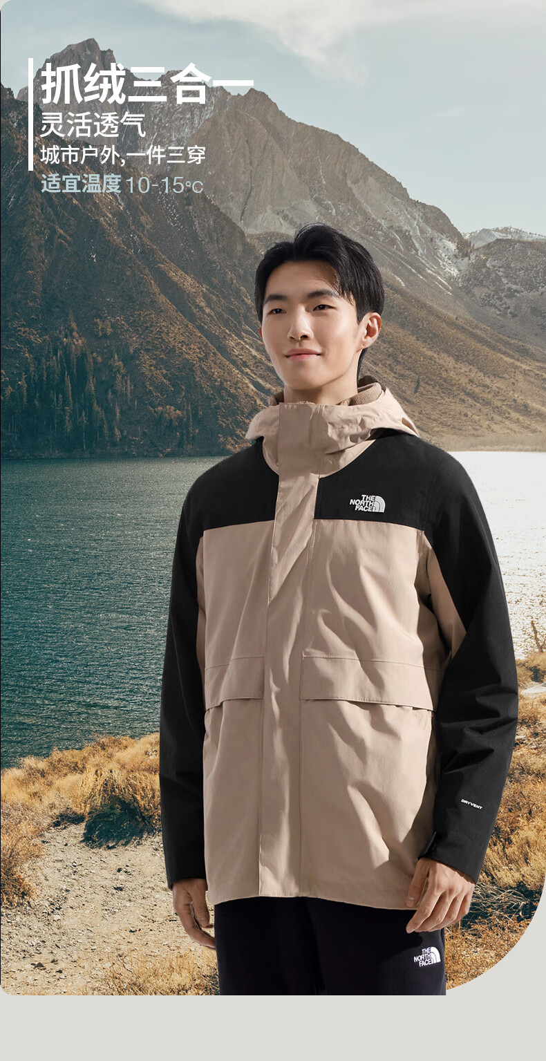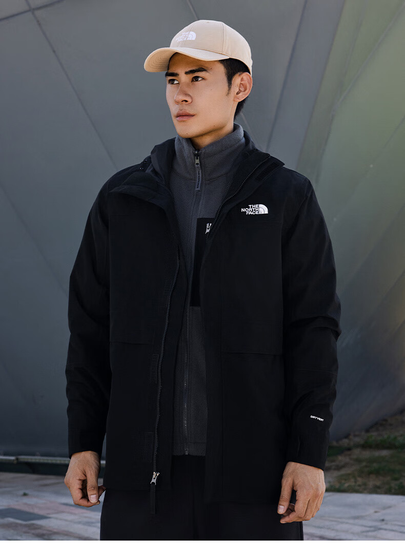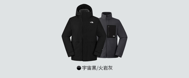 The North Face 3-in-1 Jacket Men's Elements Fleece Liner Outdoor Waterproof Warmth 25th Autumn New | 89YX W9O/Cosmic Black/Fire Gray XL /180