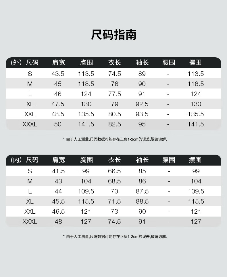 China (cm) 165 / 88-90 170 / 96-98 175 / 108-110 180 / 118-122 185 / 126-130