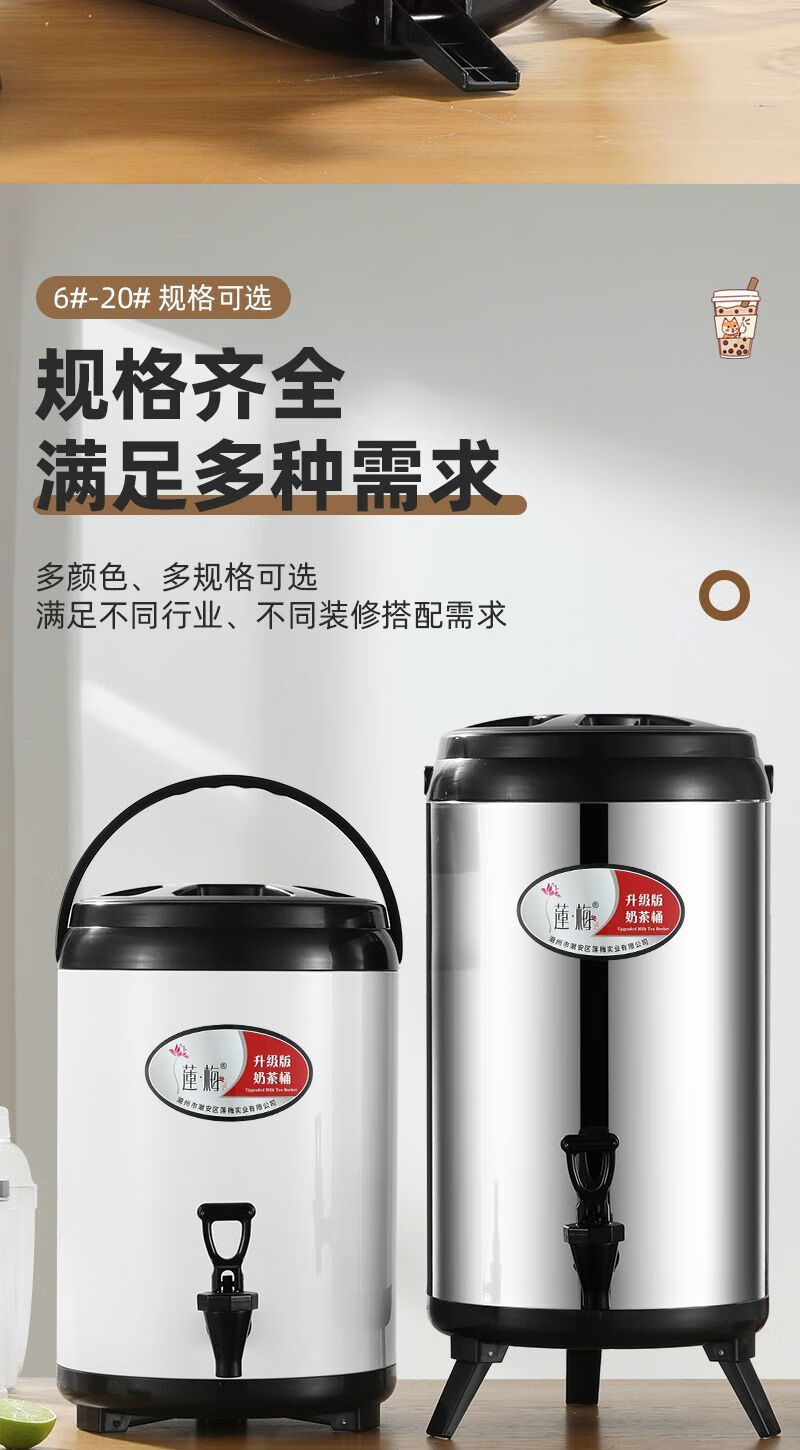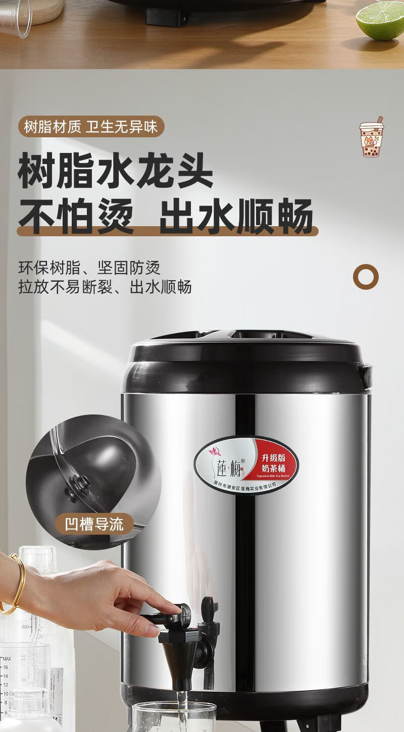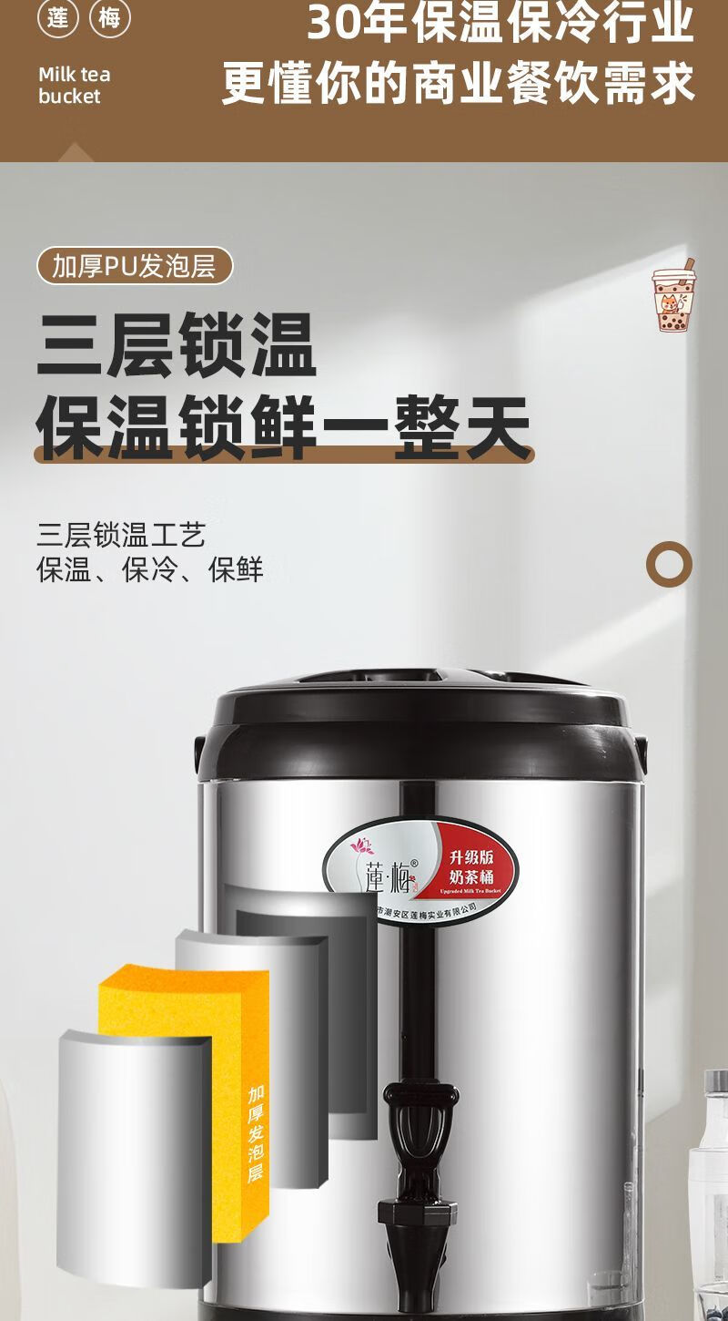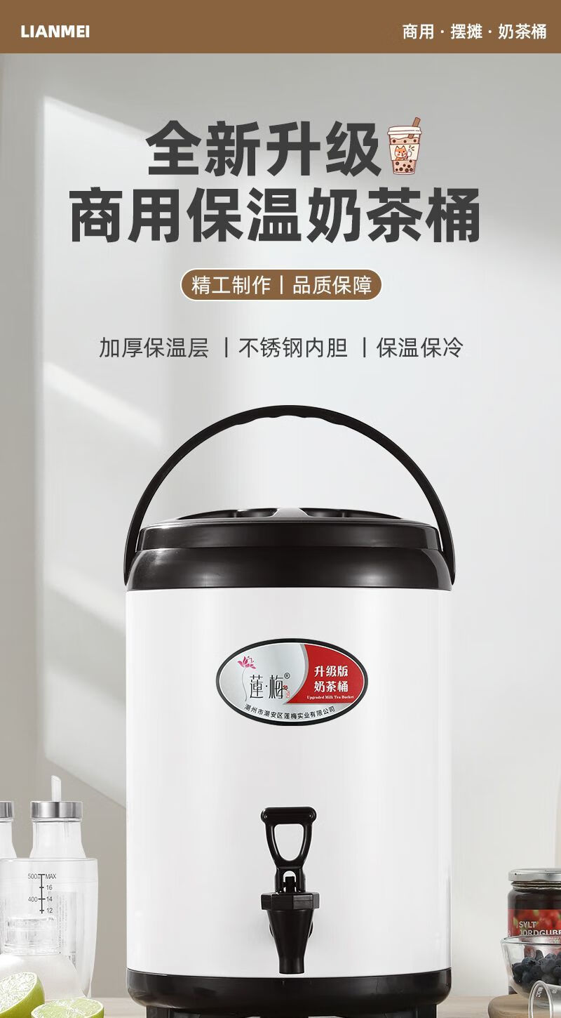 Xiongwochi Stainless Steel Milk Tea Bucket Large Capacity Milk Tea Shop Commercial Soy Milk Tea Water Insulation Bucket Cold Storage Stall with Faucet Approximately 10 Jin Jin is equal to 0.5 kg of water 14 cups of soy milk 350 ml per cup Extra thick foam - pearl white