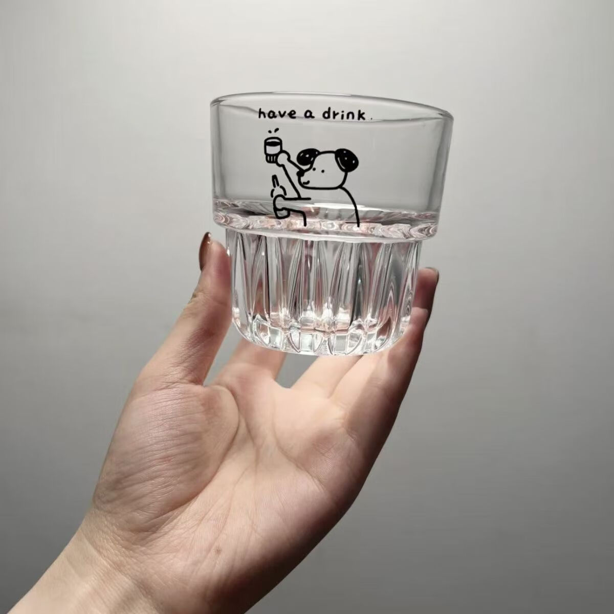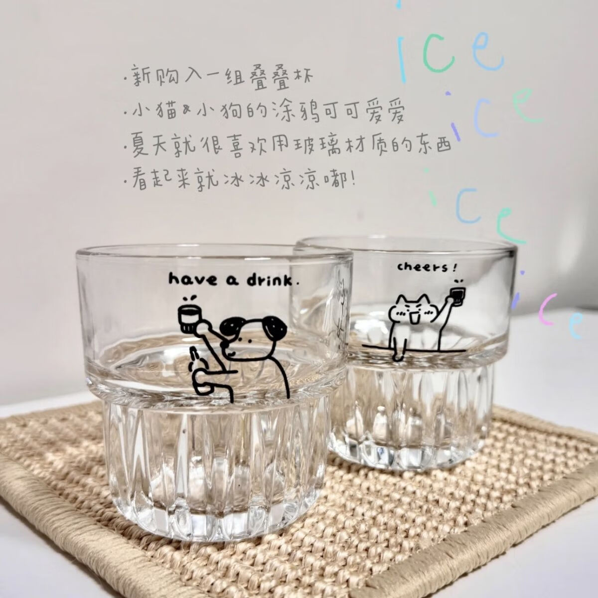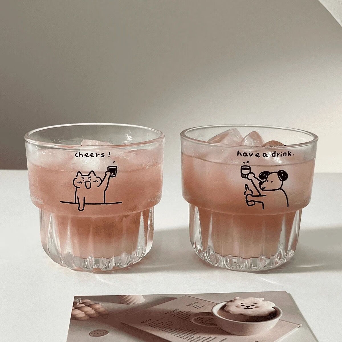 Cartoon high-looking kitten and puppy print stacking cup creative cute glass family juice coffee cup kitten 250ml 1 piece