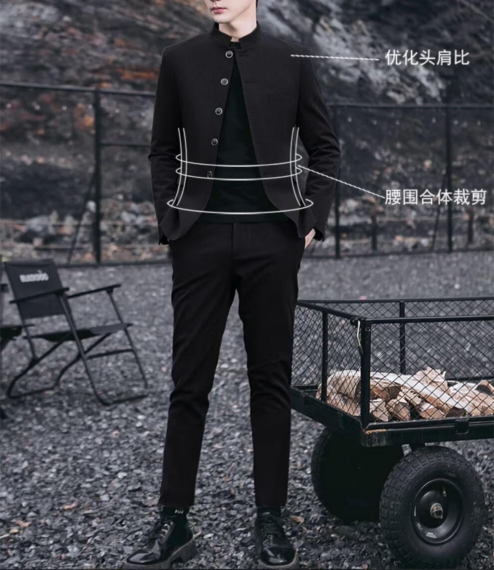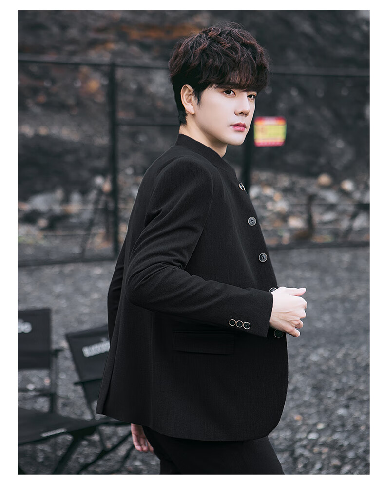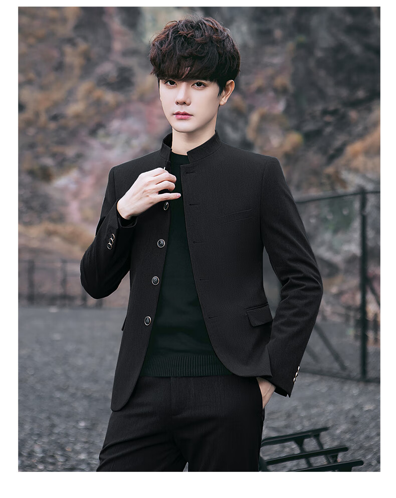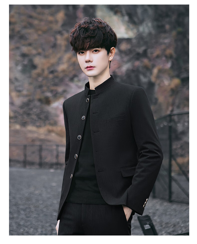 ROMON new style Chinese tunic suit suit men's trendy handsome slim Chinese stand collar performance wedding Tang suit jacket youth black top (single top) XL