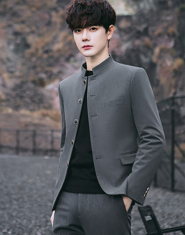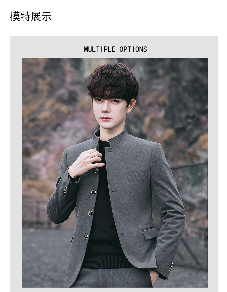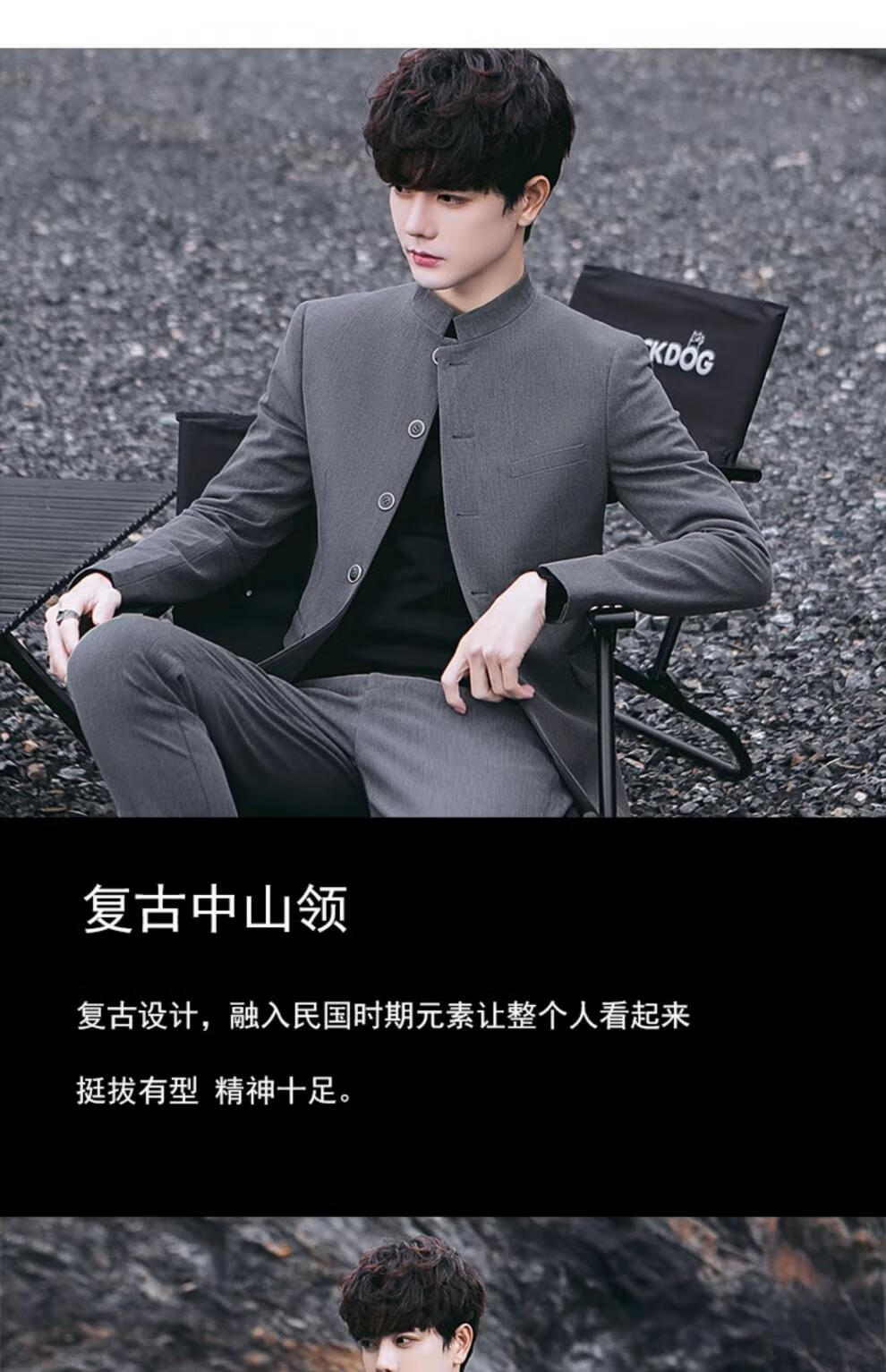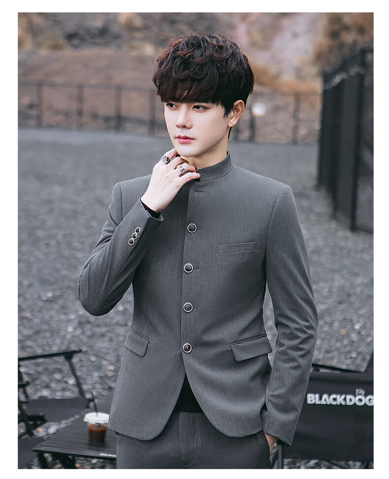 ROMON new style Chinese tunic suit suit men's trendy handsome slim Chinese stand collar performance wedding Tang suit jacket youth black top (single top) XL