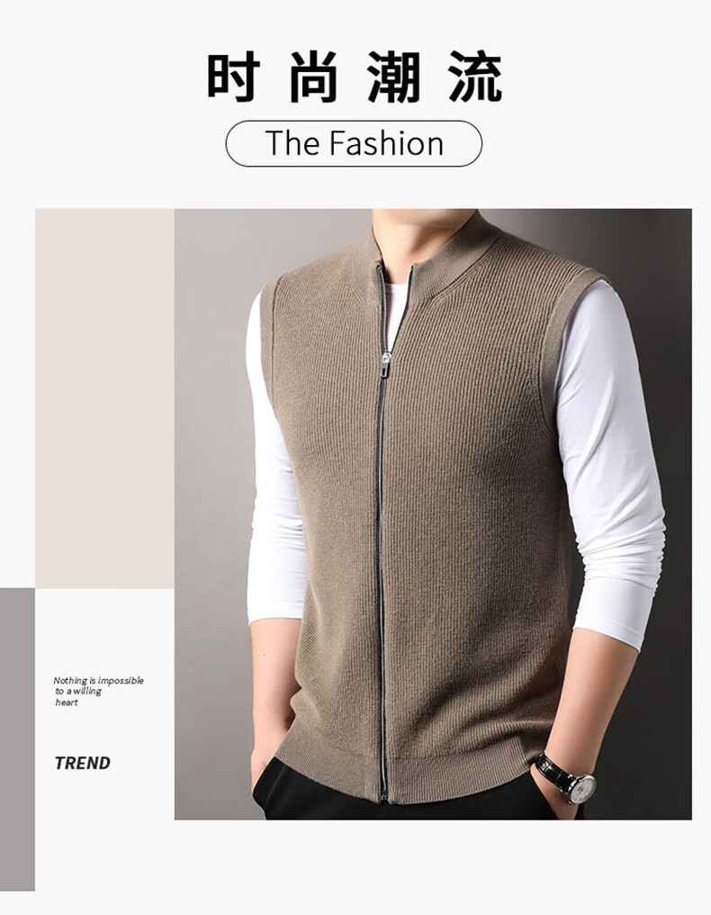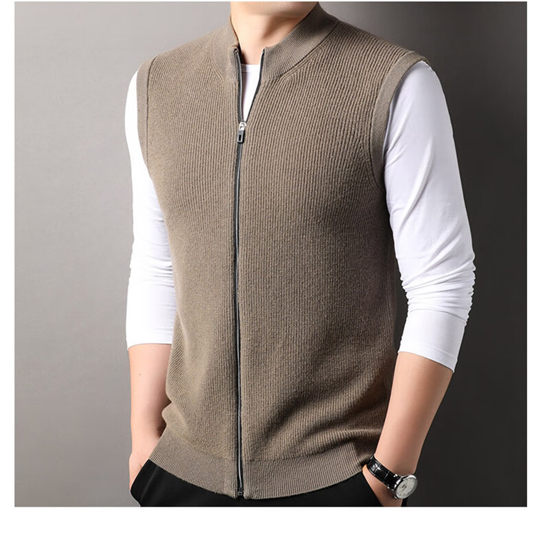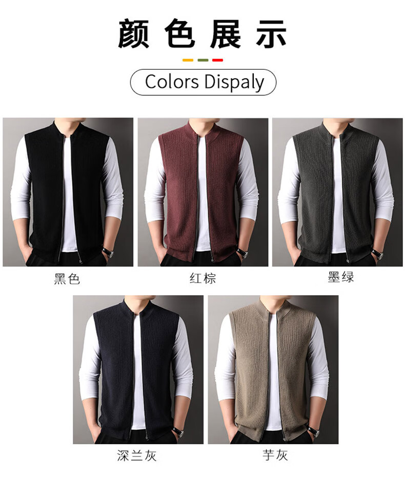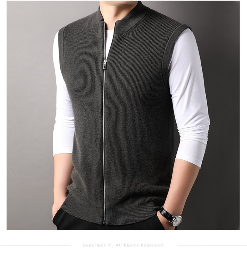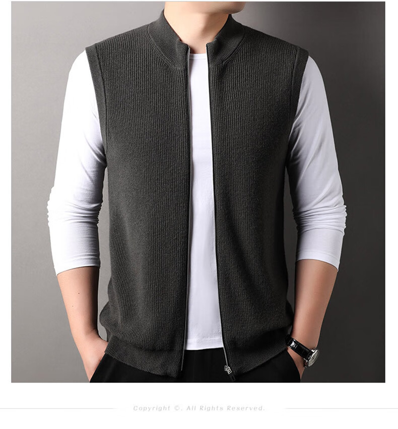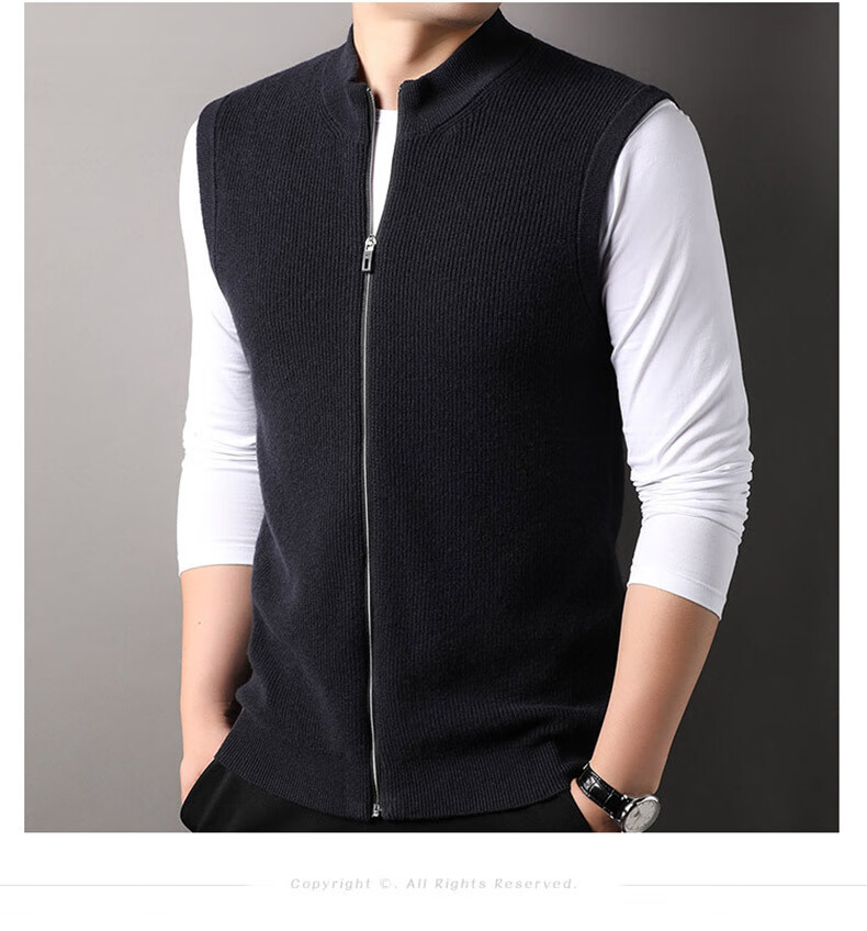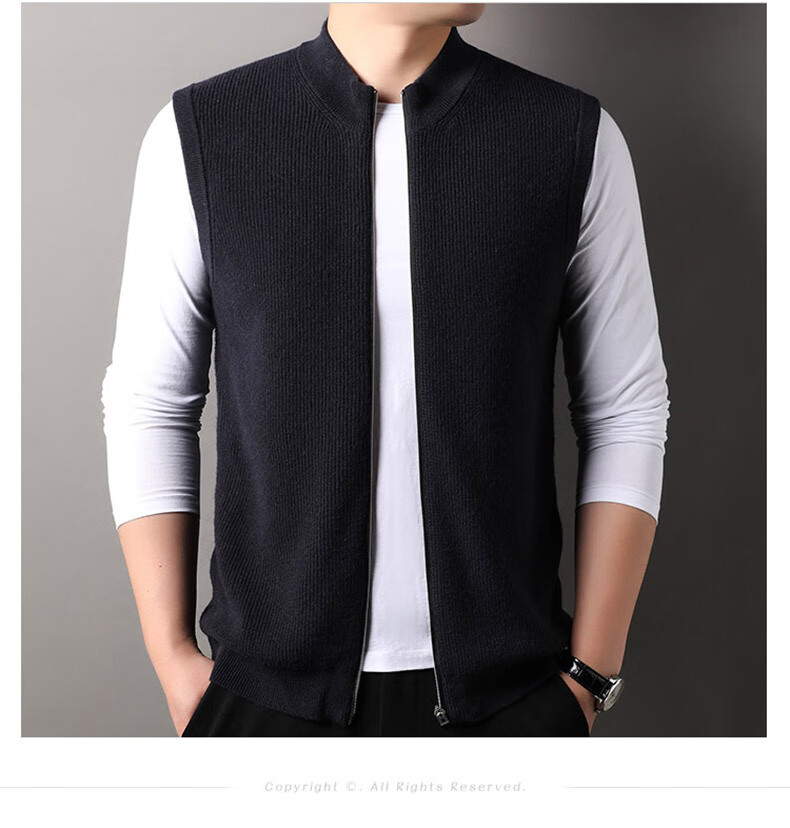 100% pure wool cardigan vest men's stand-up collar sweater vest Puyuan sweater waistcoat sleeveless top for young and middle-aged people dark blue gray 2XL 185/100A