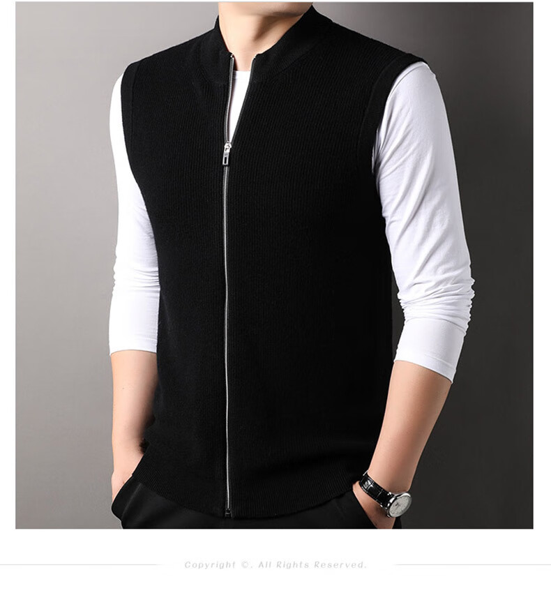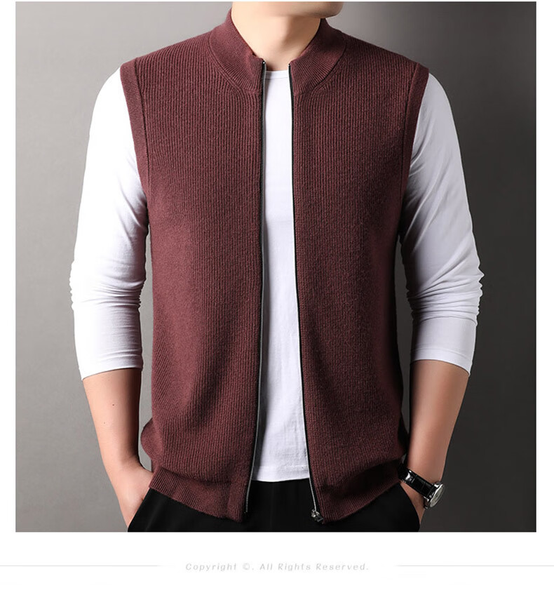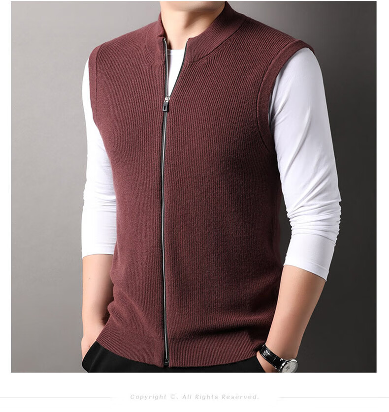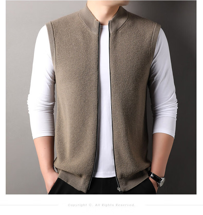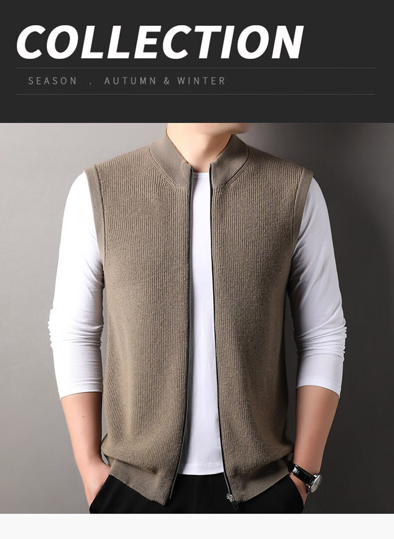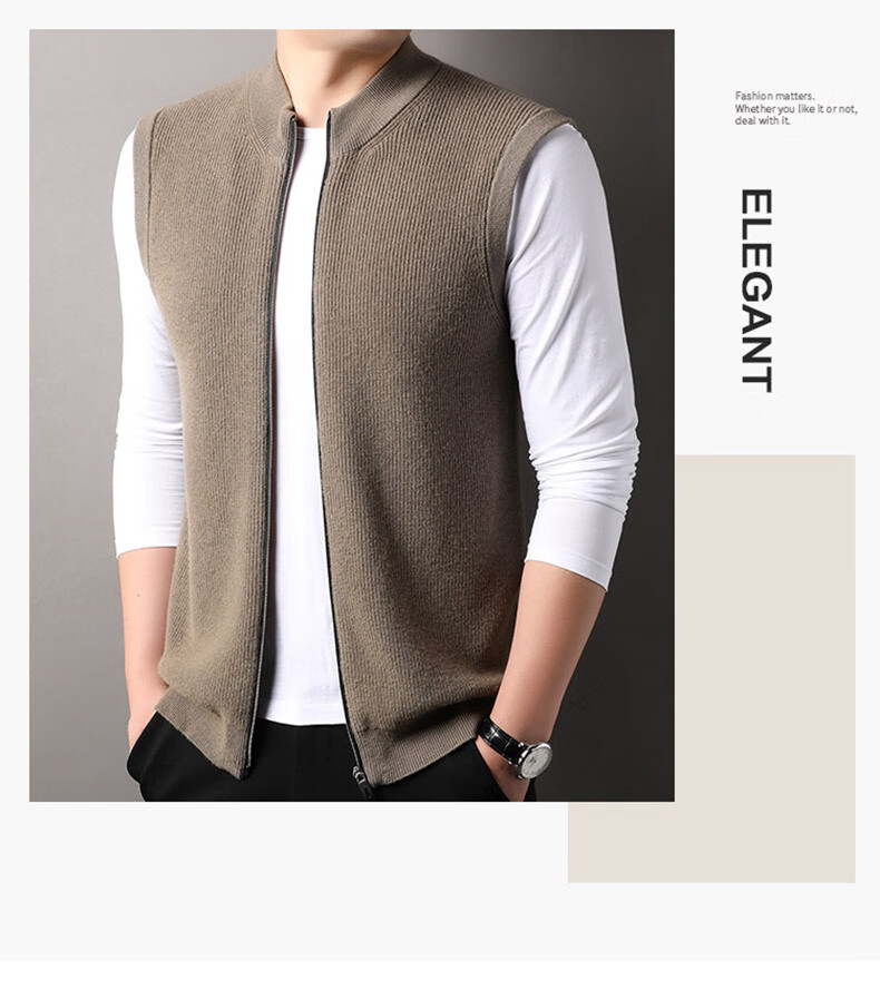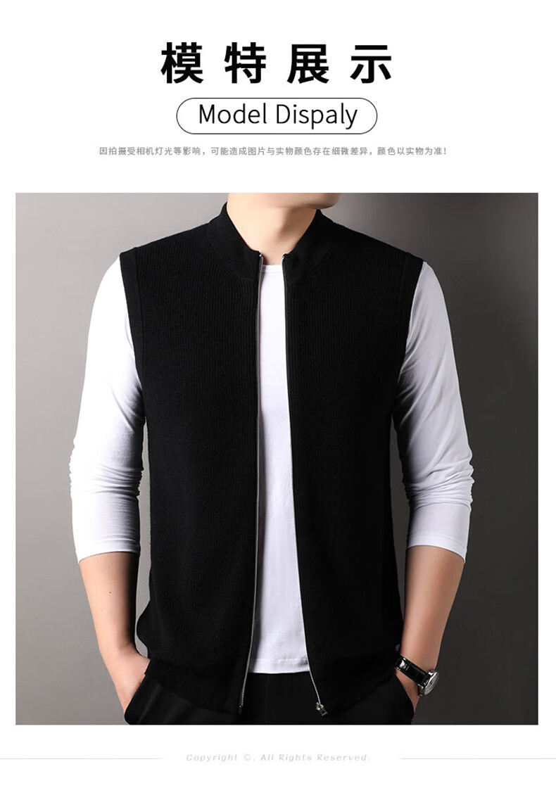 100% pure wool cardigan vest men's stand-up collar sweater vest Puyuan sweater waistcoat sleeveless top for young and middle-aged people dark blue gray 2XL 185/100A