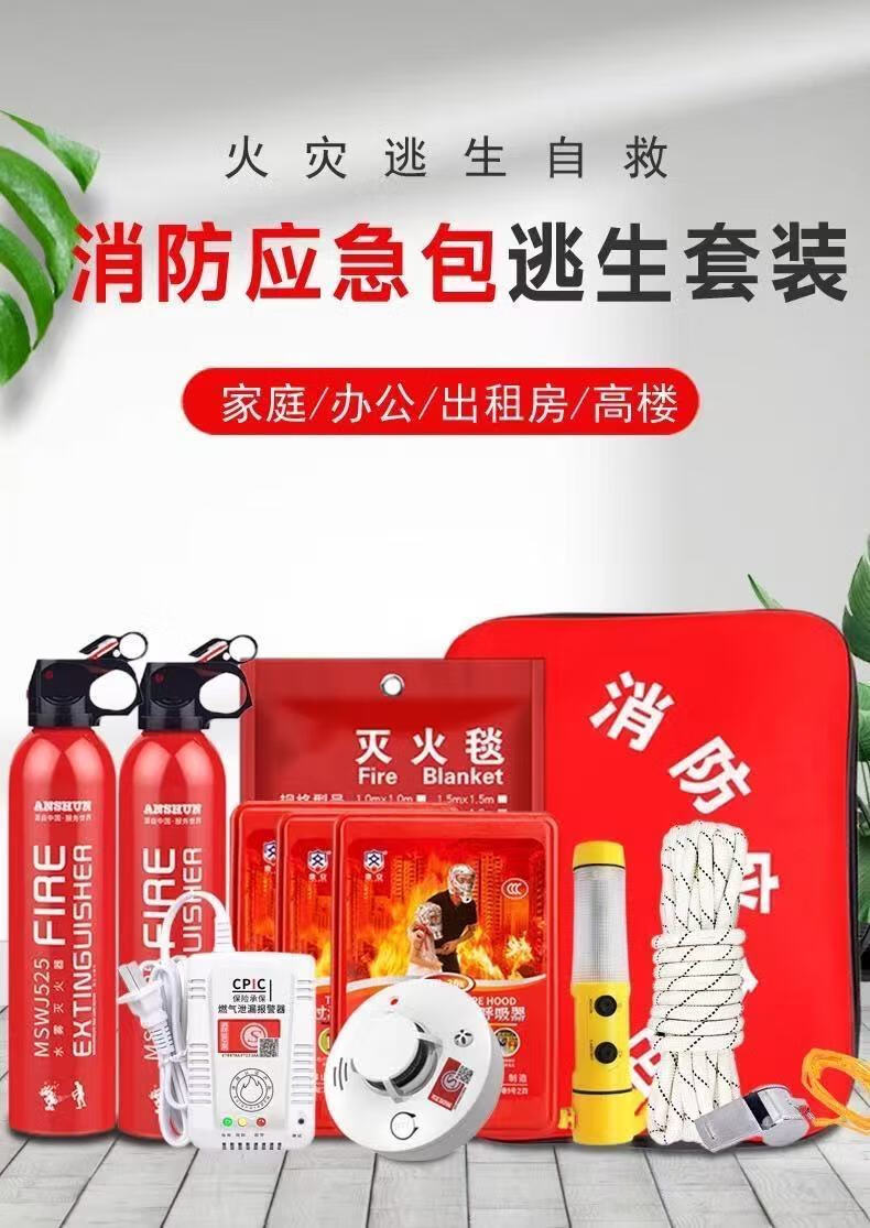 Household fire escape emergency kit water-based fire extinguisher fire blanket smoke mask self-rescue set fire emergency kit home safety fire five-piece set-standard version