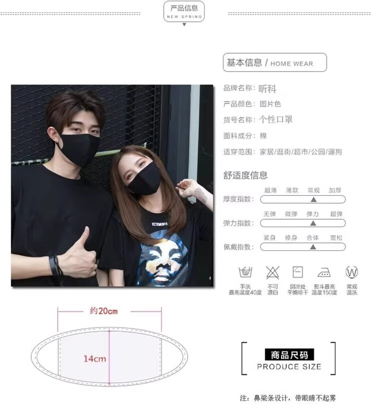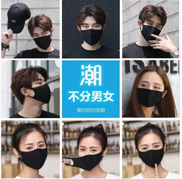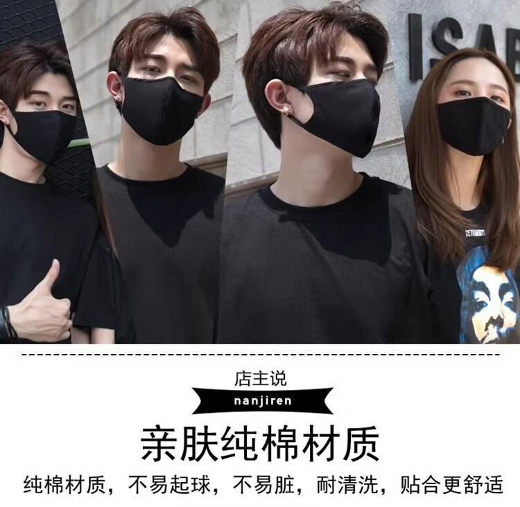 Pure cotton mask washable autumn and winter outdoor cycling dustproof and warm men and women trendy style black internet celebrity cloth mask 2 pack black pure cotton (autumn and winter style)