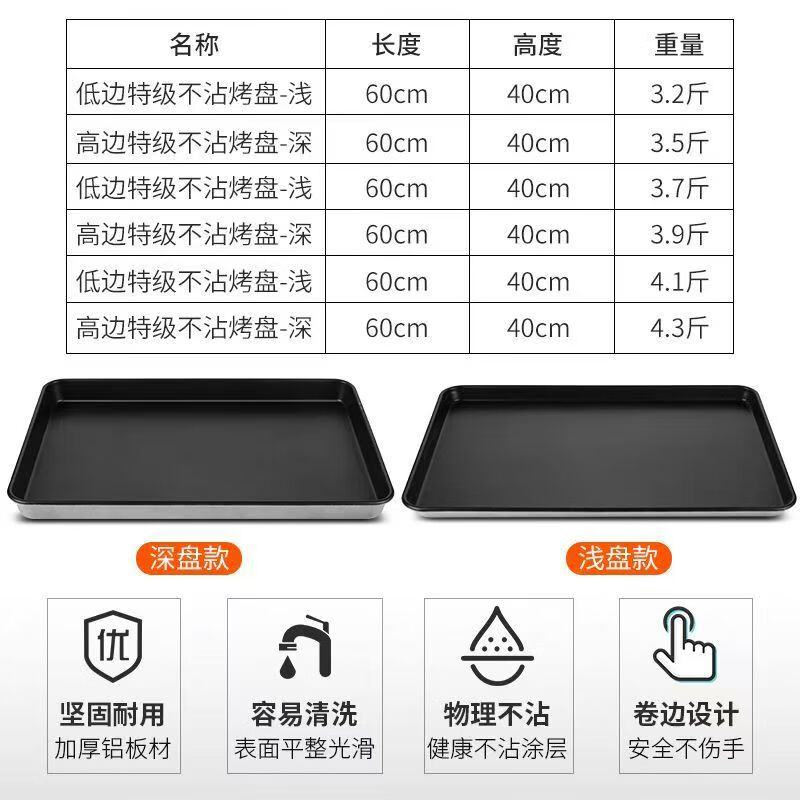 Xinmai food grade non-stick baking pan rectangular 60*40 non-stick aluminum pan oven commercial bread cake baking mold Xinmai 4.3Jin Jin equal to 0.5kg 60*40*5cm special non-stick high sides
