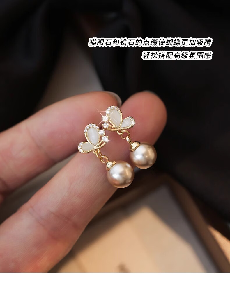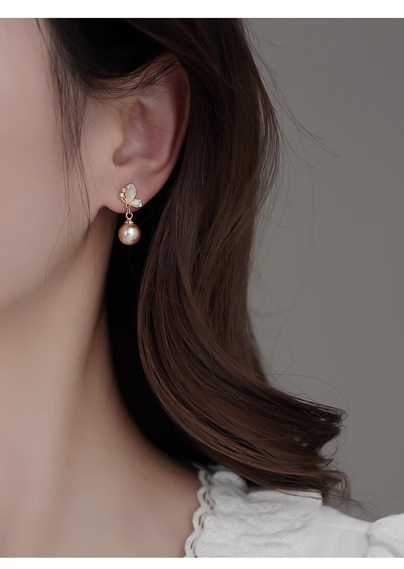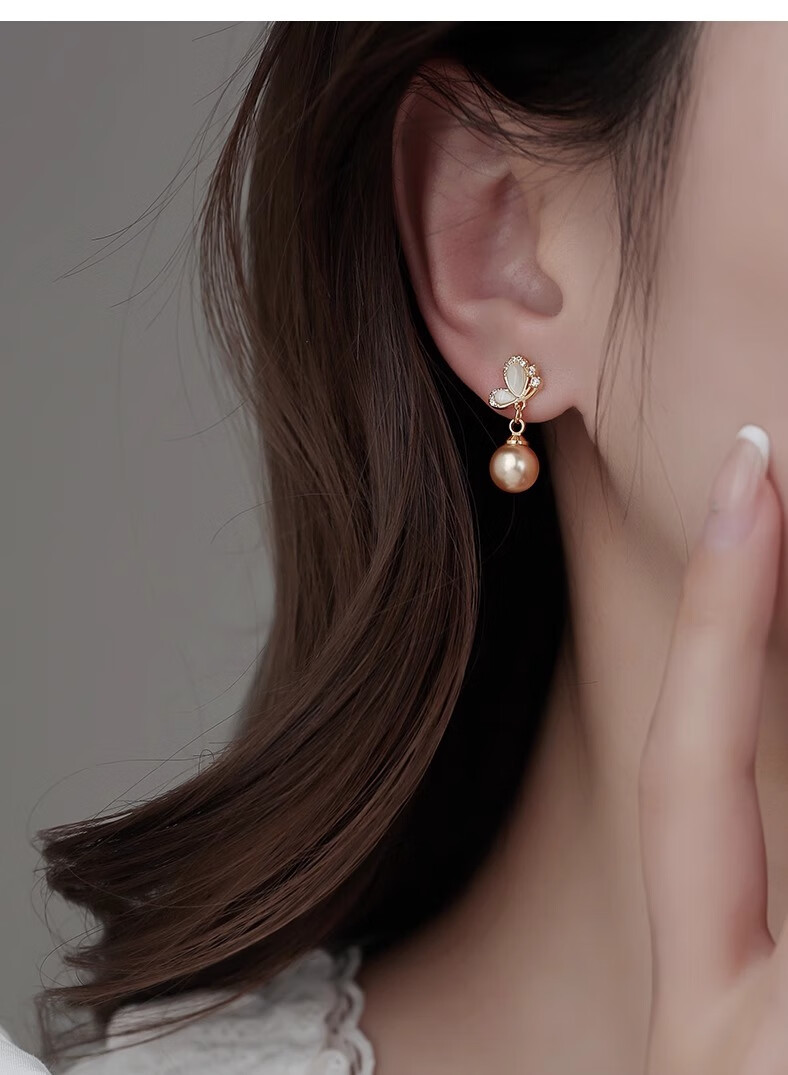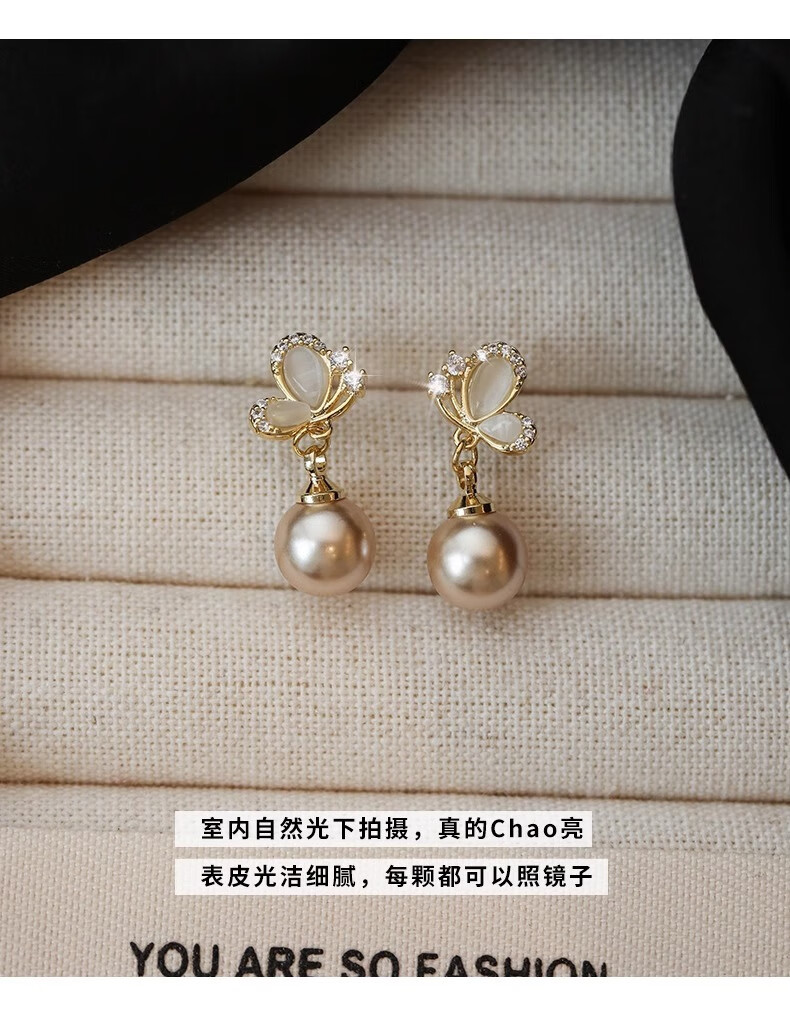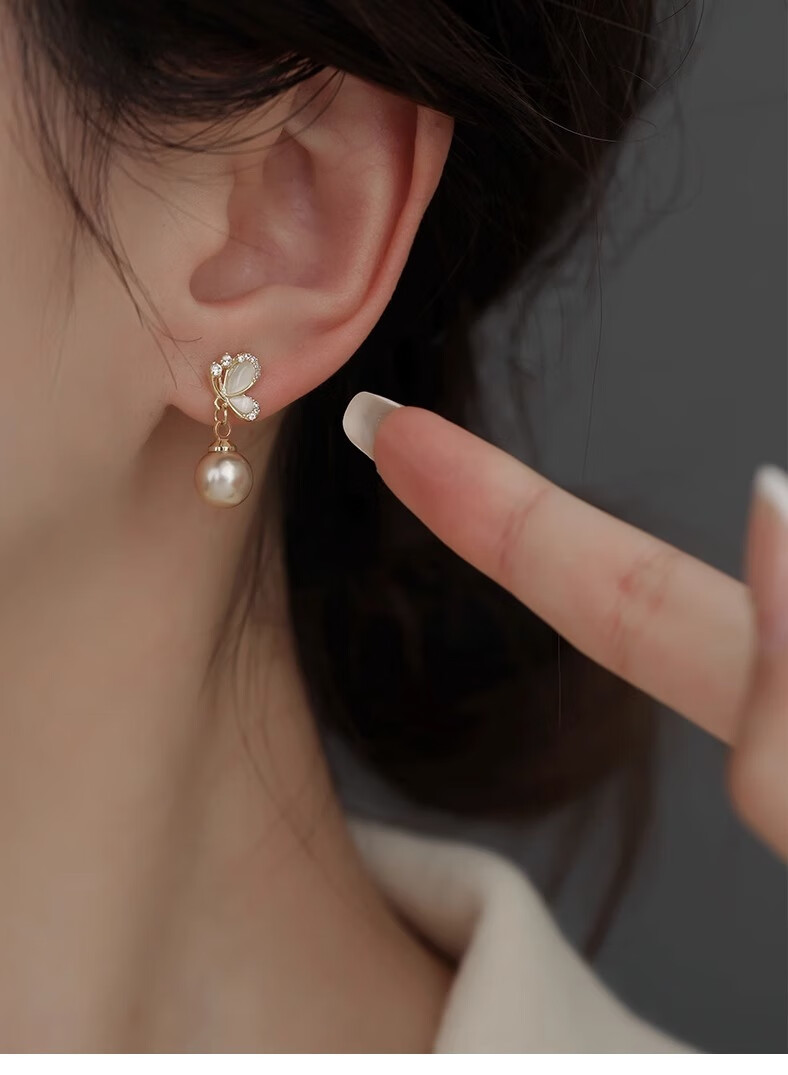NSYCA Old Phoenix sterling silver 9999 earrings butterfly champagne color pearl earrings 2025 new earrings niche temperament earrings gold-plated sterling silver earrings a pair of Lao Fengxiang