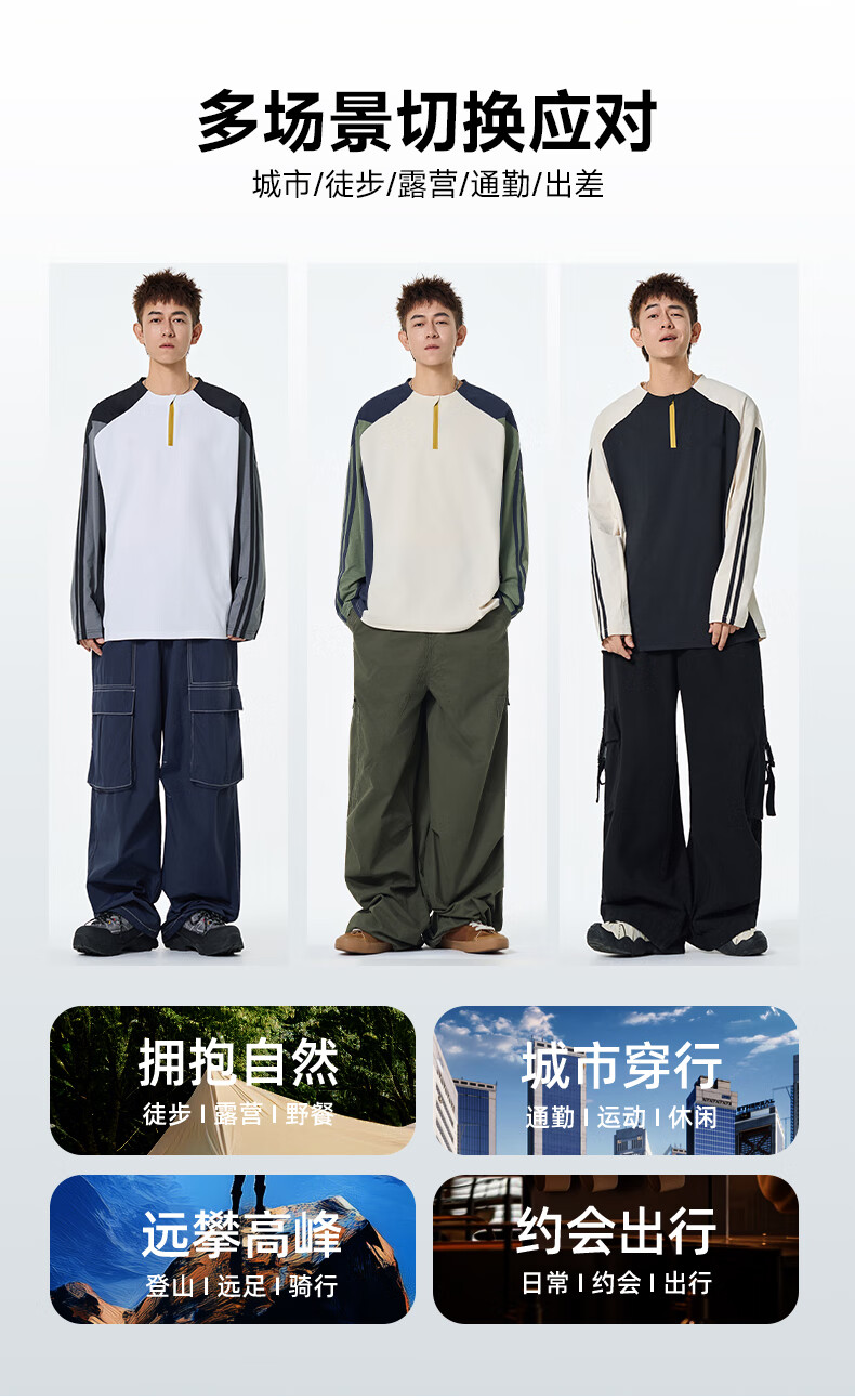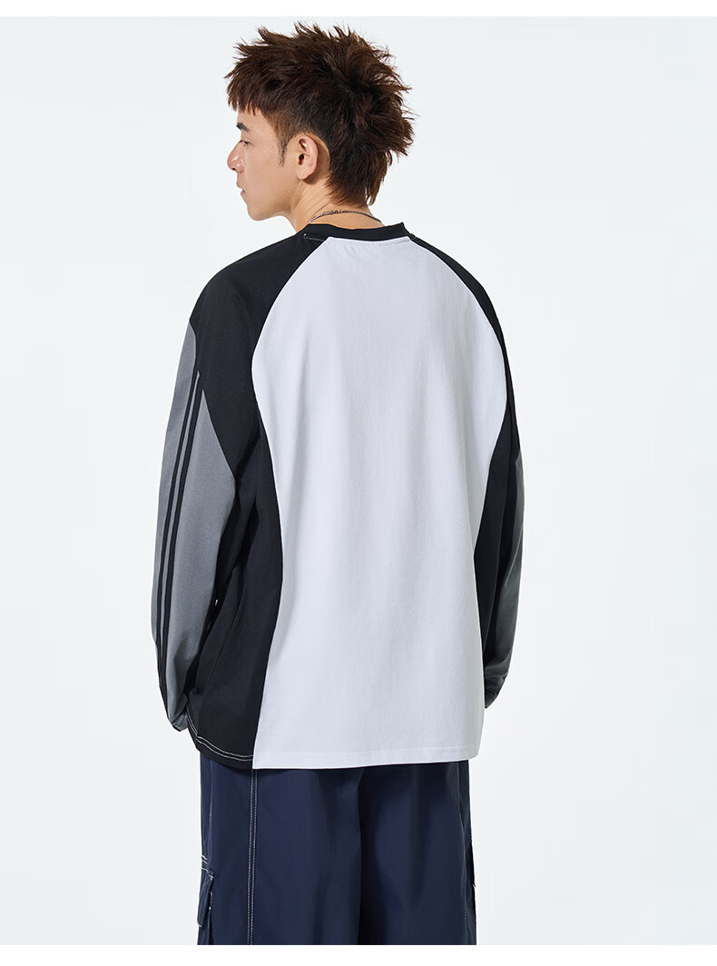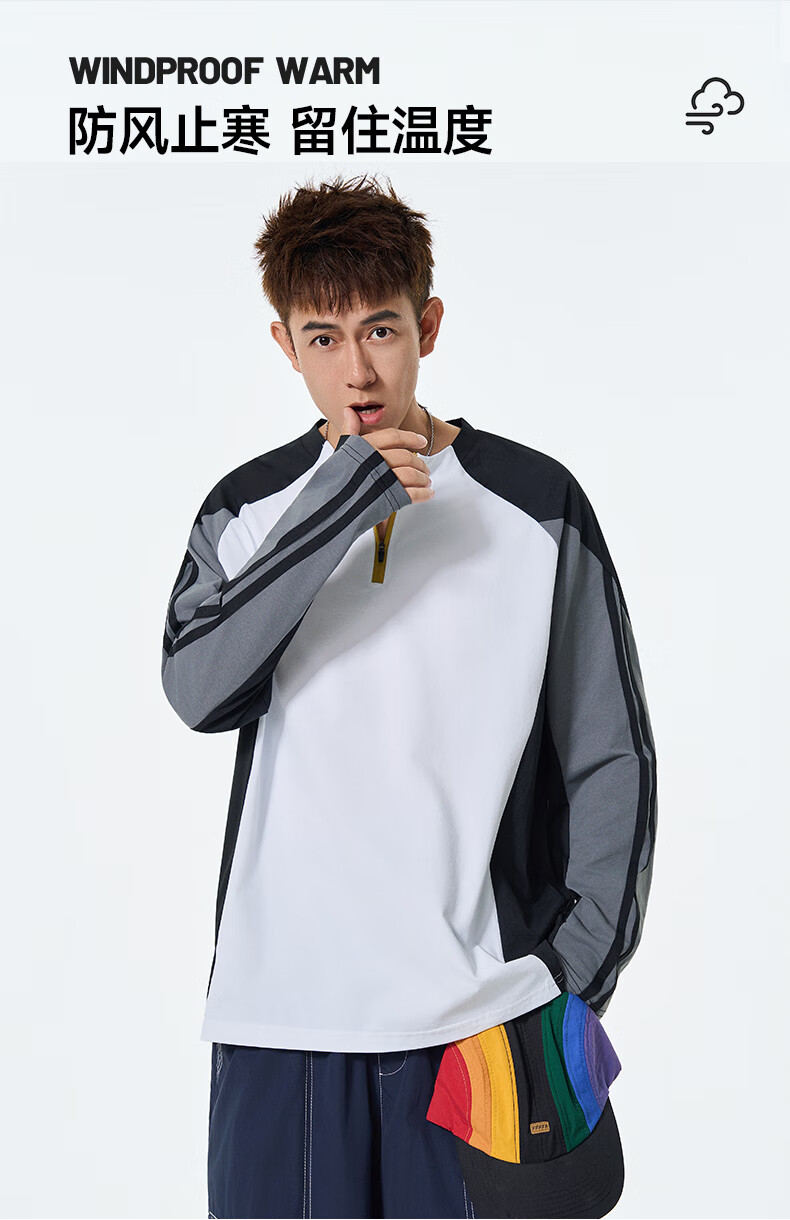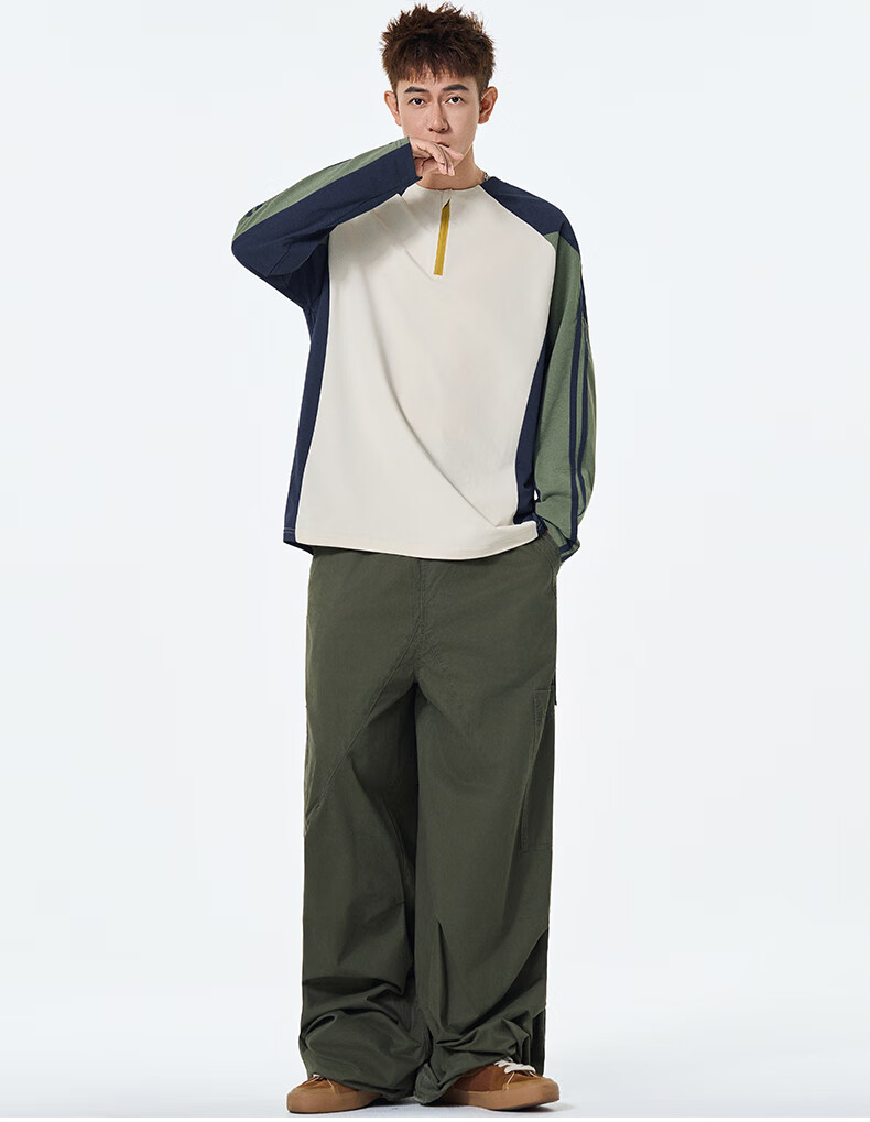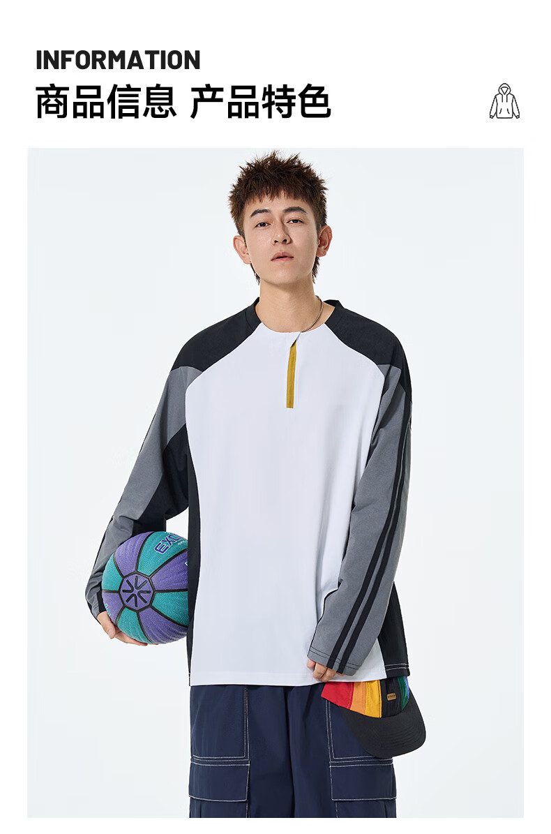 American retro contrasting color splicing half-zip quick-drying Henry collar long-sleeved T-shirt men's spring and autumn casual bottoming shirt trendy black apricot XL