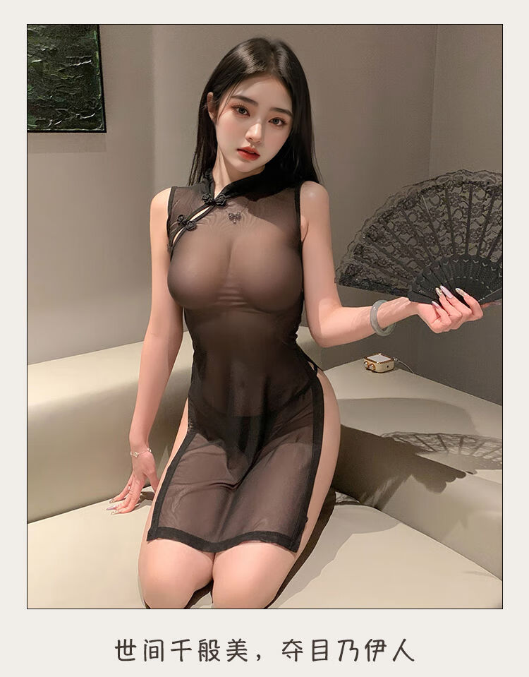 Sexy lingerie 2025 new sexy cheongsam hot pajamas uniform date shirt qqny black dress thong open black socks one size