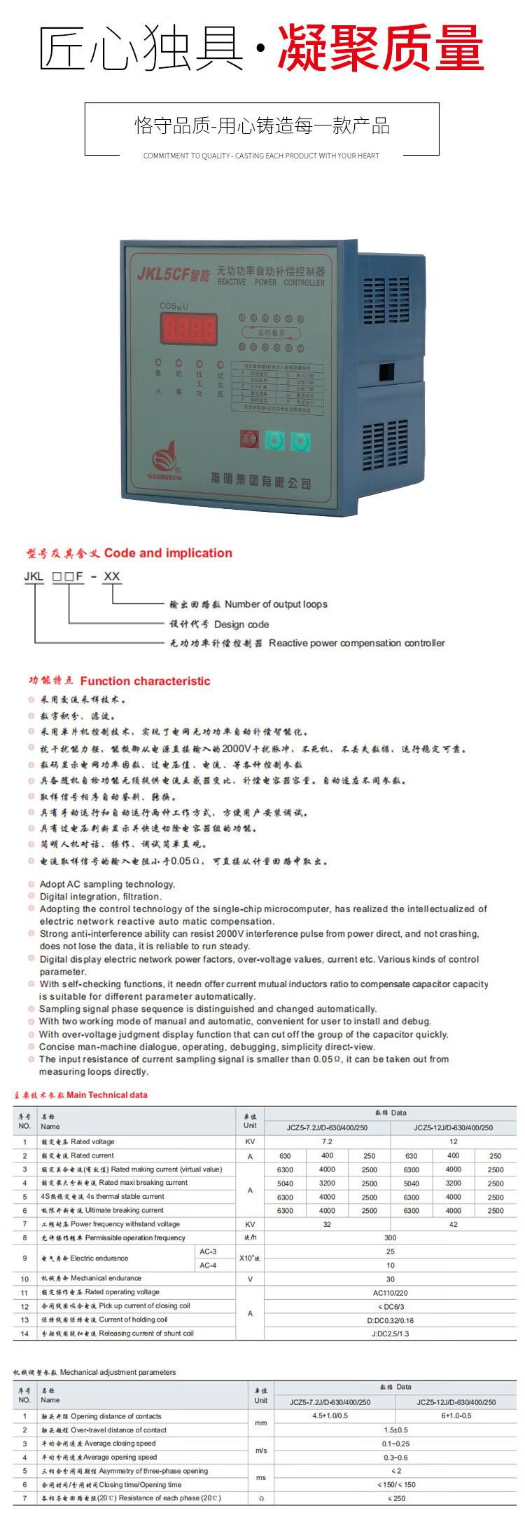 Yue Chang Sheng Sheng pointed out that the group's intelligent capacitor cabinet JKL1CF-12/voltage 690V reactive power automatic compensation controller JKL1CF-12