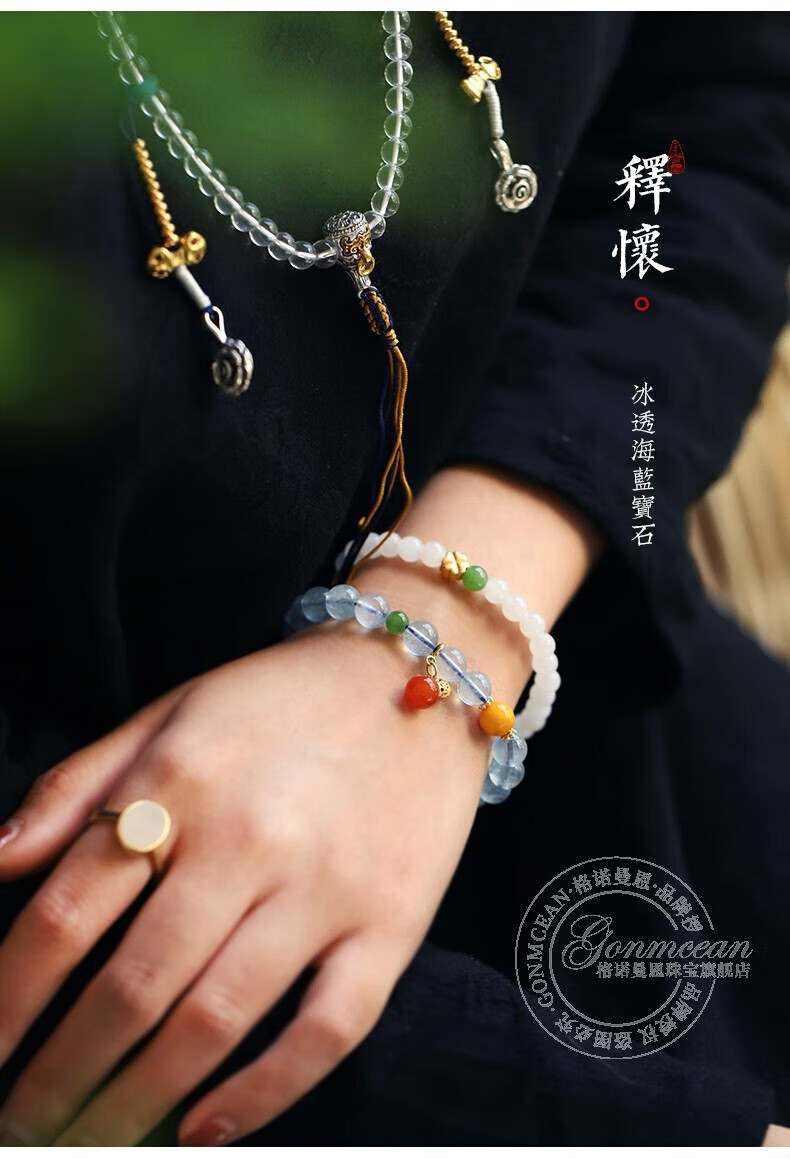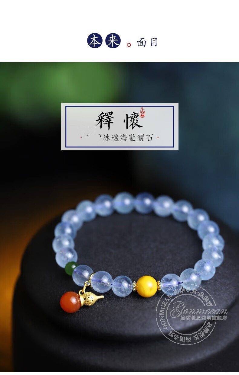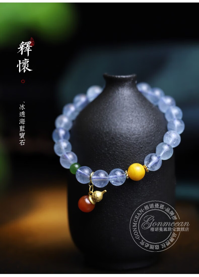 DRJEFUN ice-permeable aquamarine bracelet for women South red gourd pendant blue bracelet gift with gourd 10MM