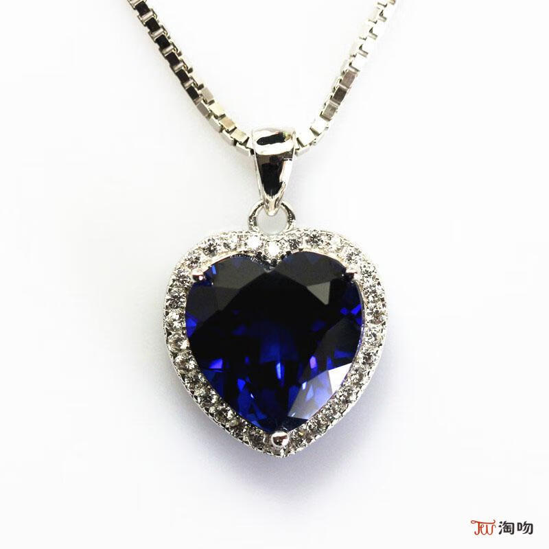 Magic Rabbit Tanzanite Silver Inlaid Sapphire Heart of the Ocean Necklace Titanic Women's Pendant Rose Gold 12X12mm Chain
