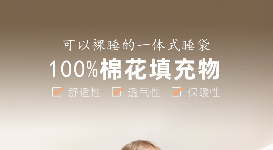 Smile baby sleeping bag autumn and winter cotton liner thickened in winter all-in-one pure cotton baby anti-kick quilt spring and autumn 100% cotton liner medium thickness 150g/80cm (suitable for 0-18 months and under 85cm)