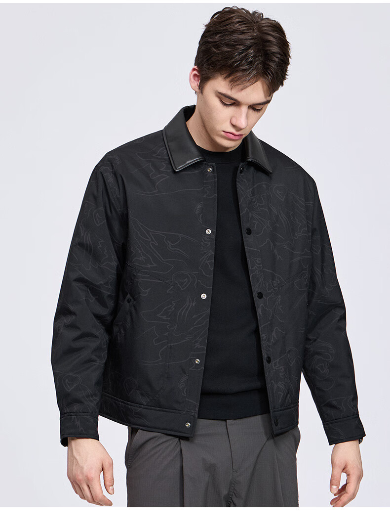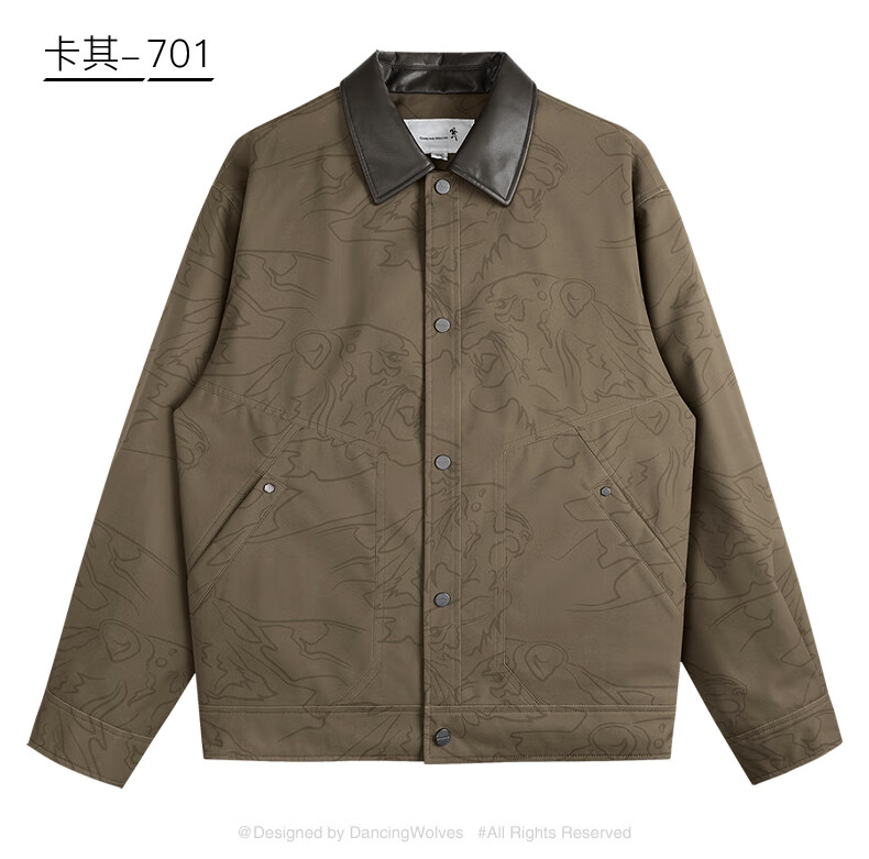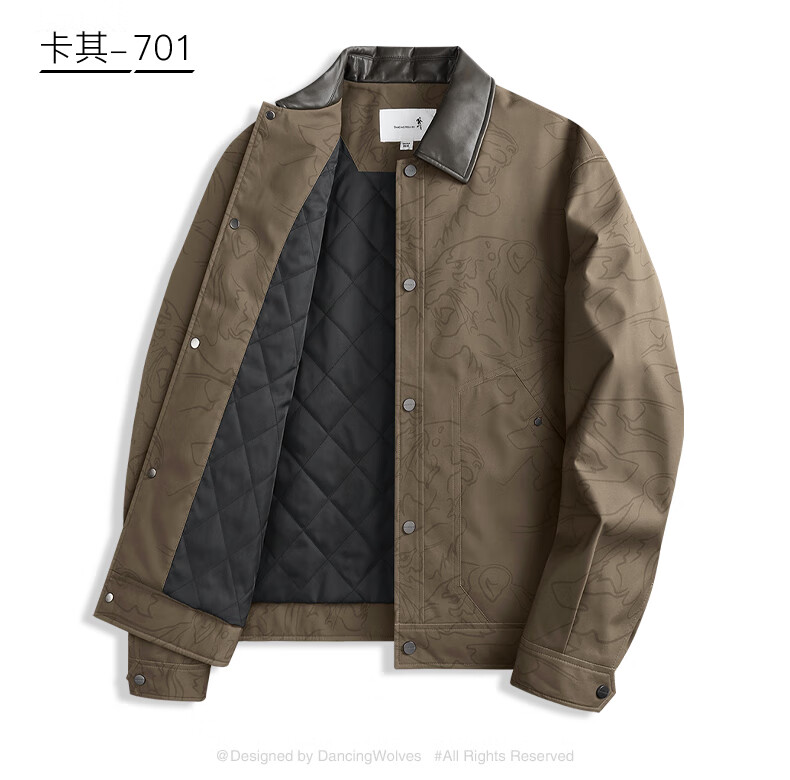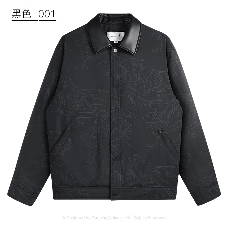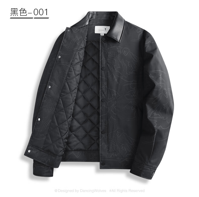 Dances with Wolves Barn Style Lapel Padded Jacket Men's 2025 Autumn and Winter New Casual Retro Print Warm Jacket 1017 Black 001 L (175)