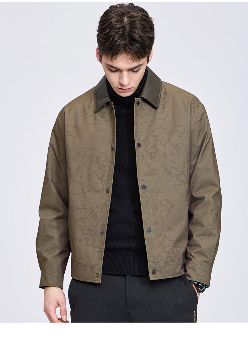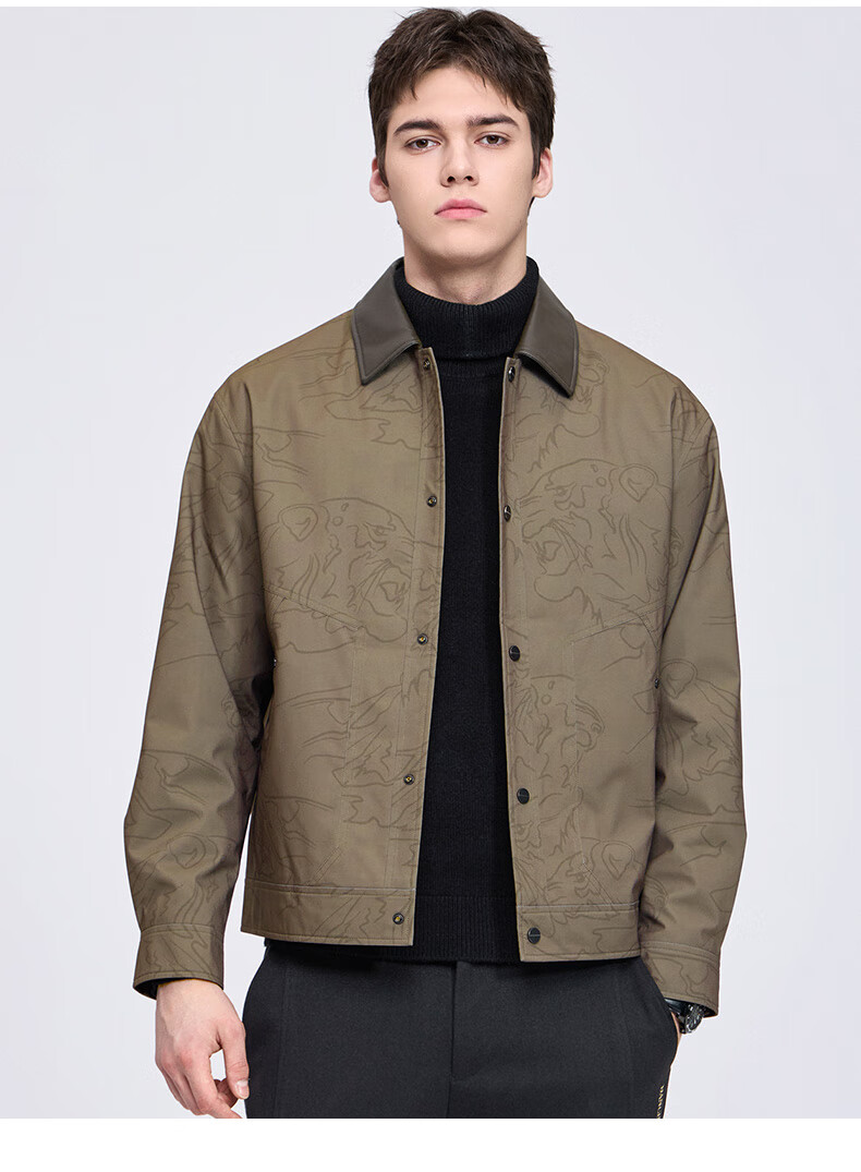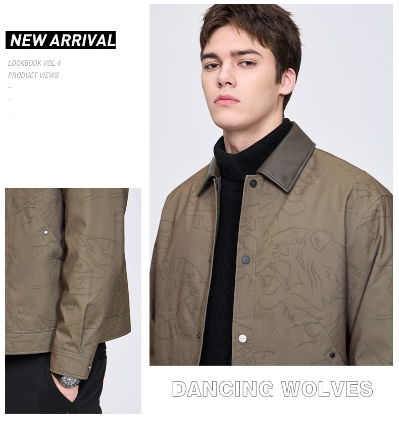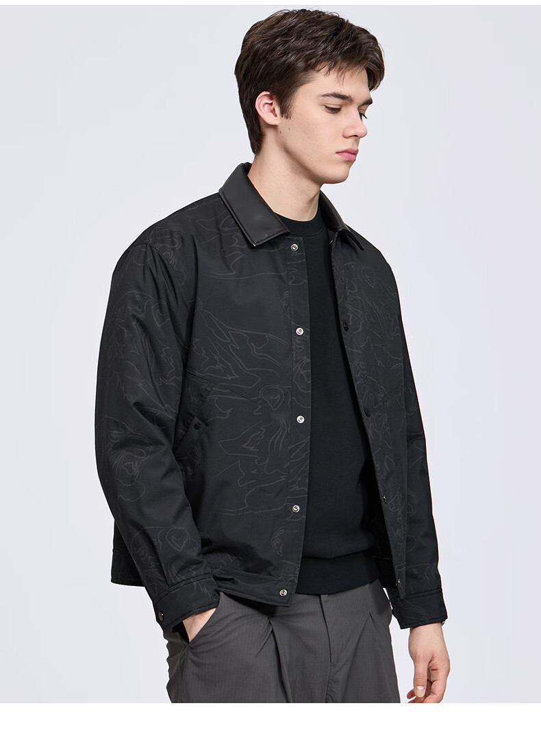 Dances with Wolves Barn Style Lapel Padded Jacket Men's 2025 Autumn and Winter New Casual Retro Print Warm Jacket 1017 Black 001 L (175)