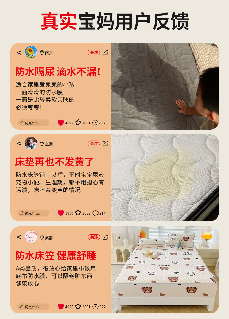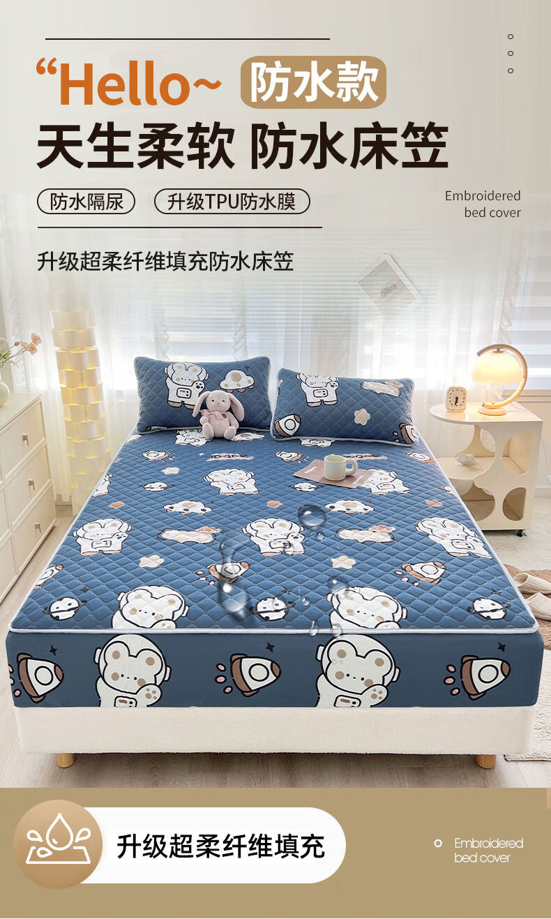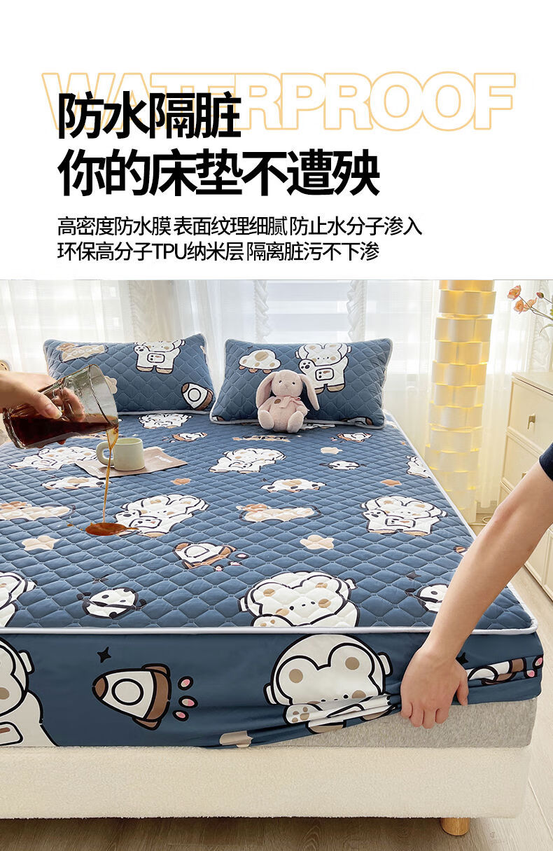 Pick-up Cat Sheet Cover Waterproof Diaper Bed Cover Single Piece Cotton Padded Thickened Sheet Set Mattress Protector Suitable for All Seasons Bag Bear MAX Waterproof Performance High Quality Non-Piece Set - 180x200cm Fitted Pillowcases 2 Pieces