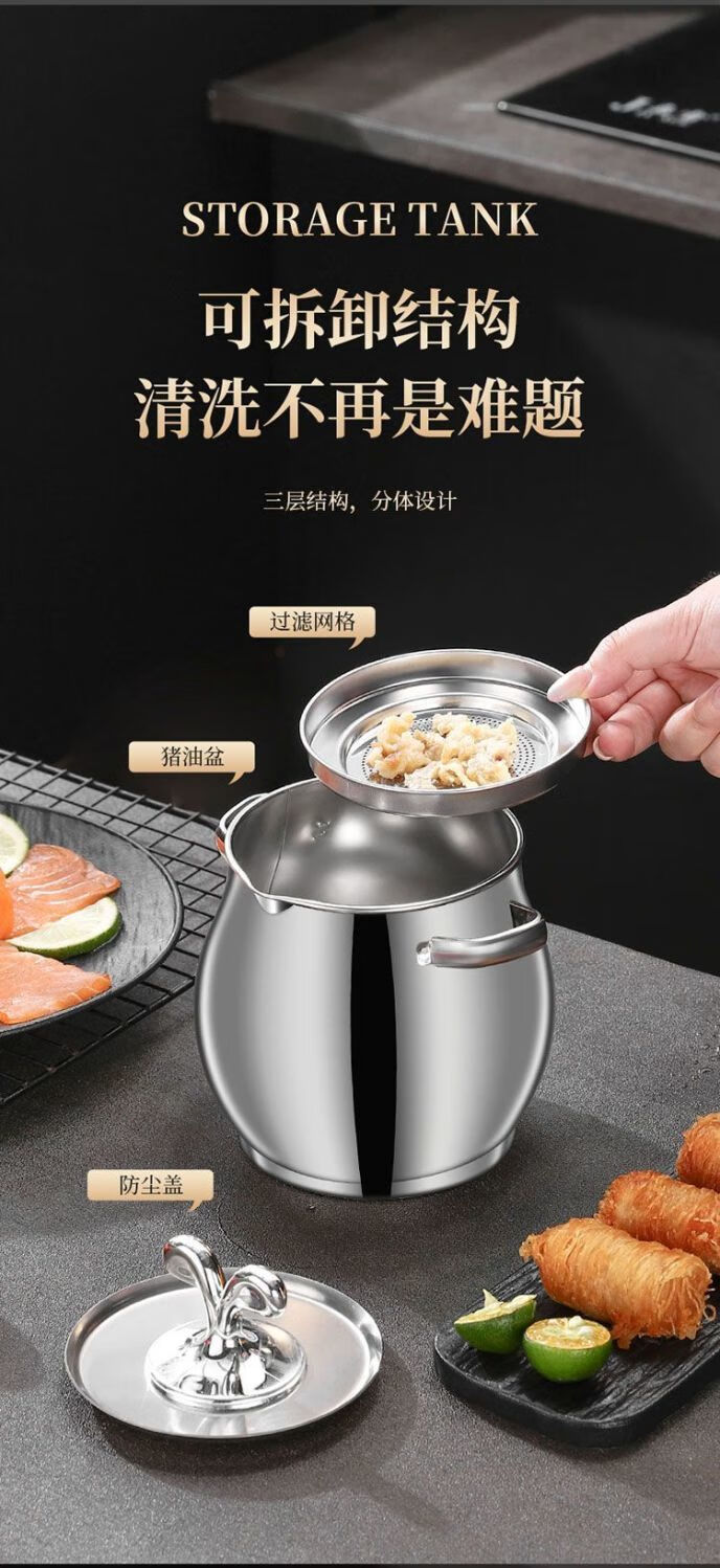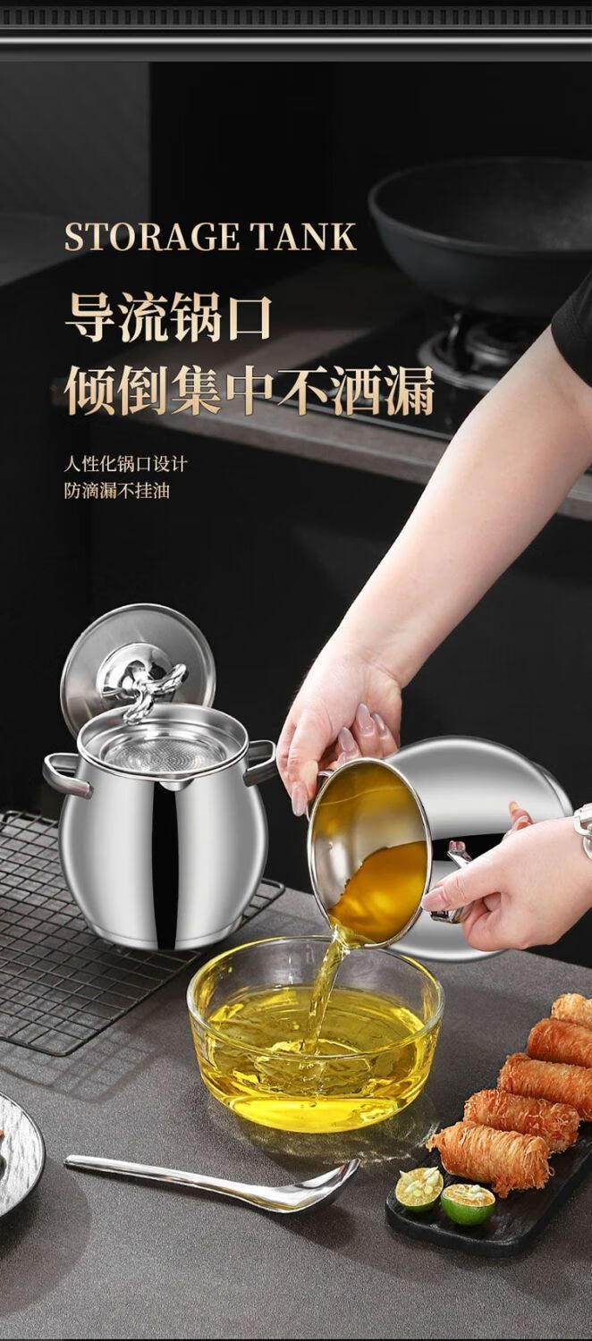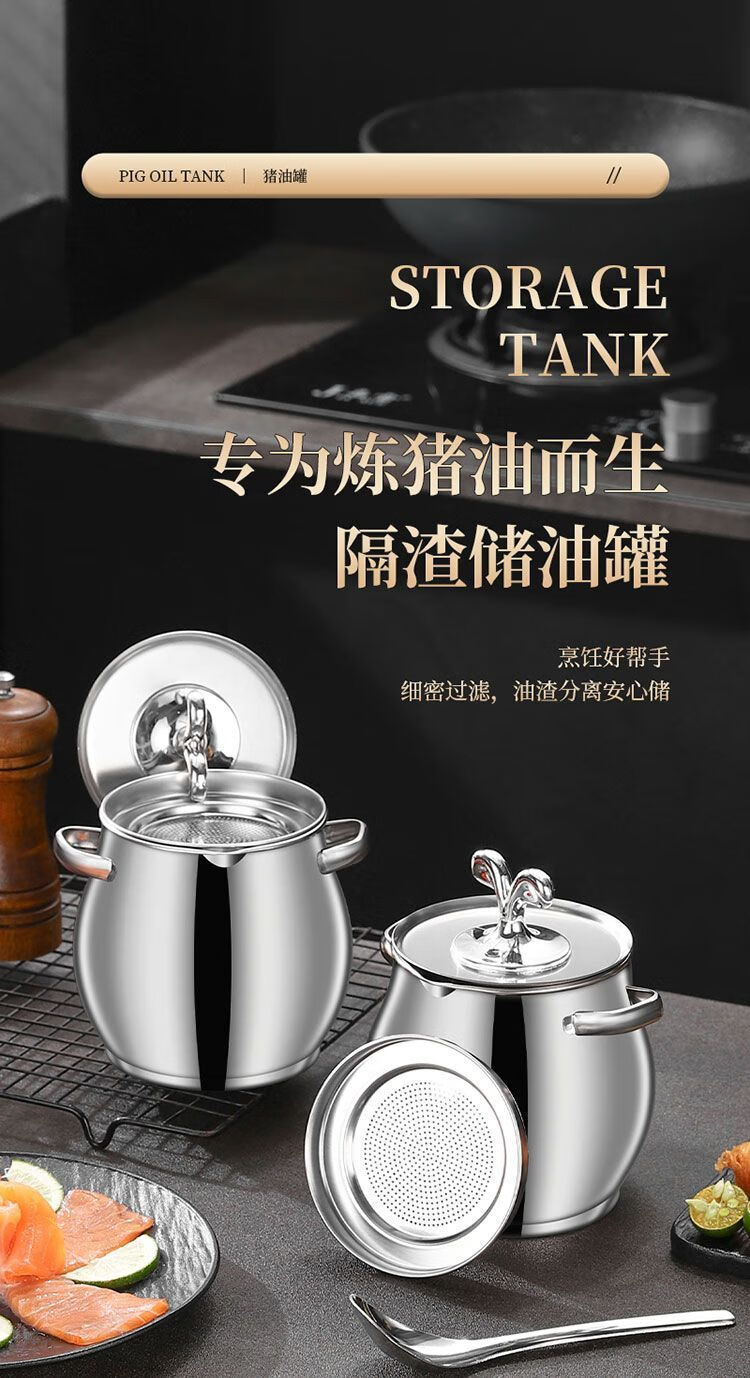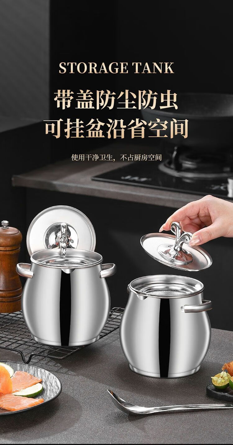 Chaosihui thickened stainless steel lard tank multi-purpose lard barrel with filter household kitchen with lid and high temperature resistance double-ear lard pot large heat-resistant lid 2500 + net + steel spoon
