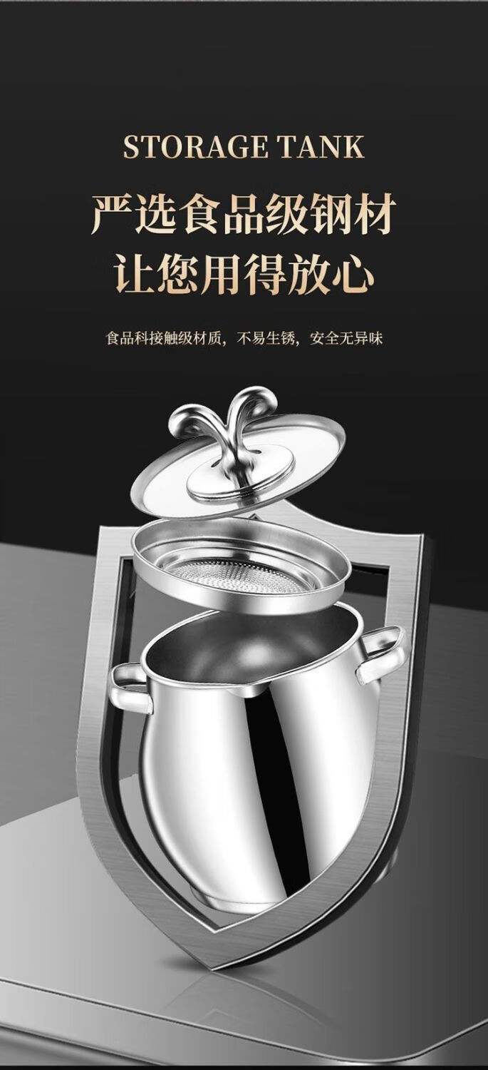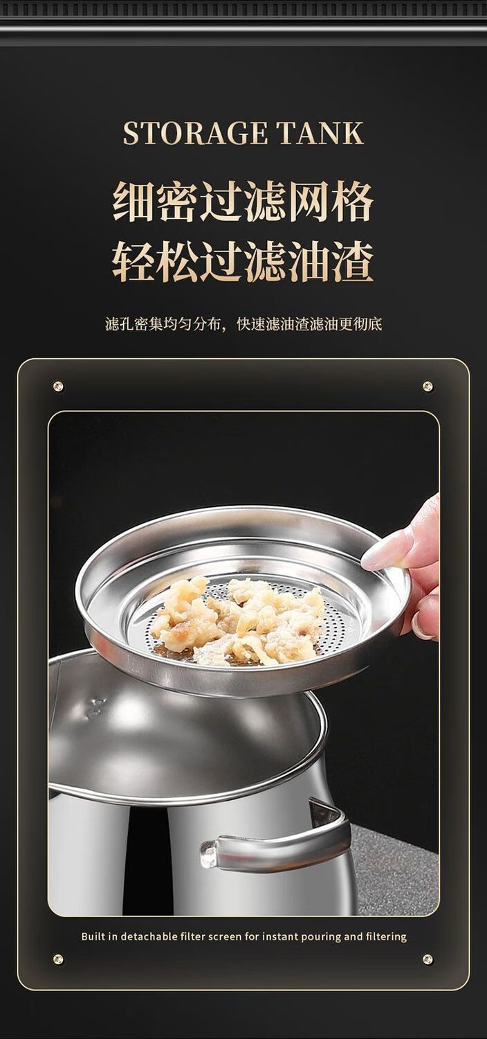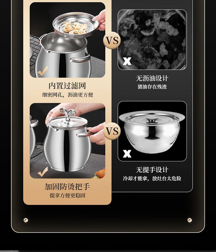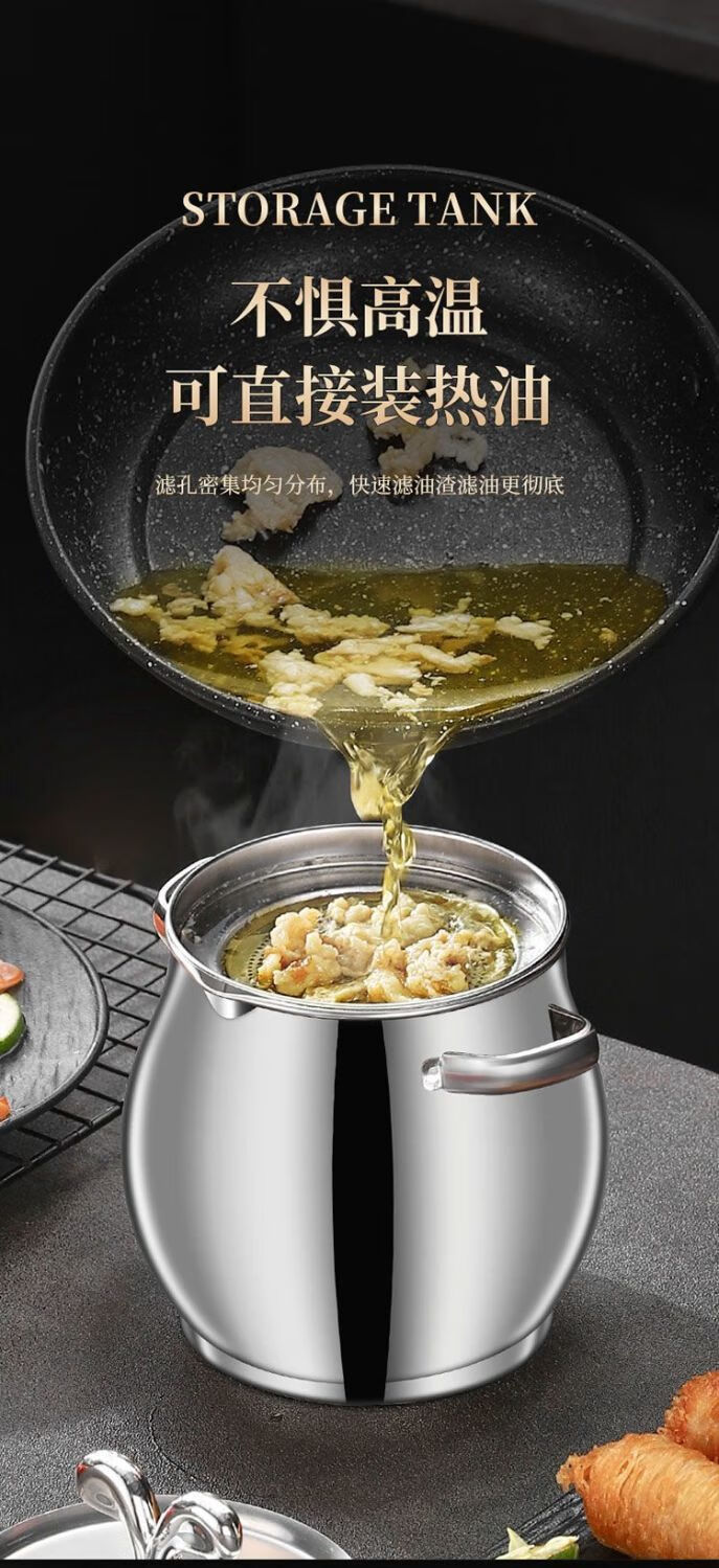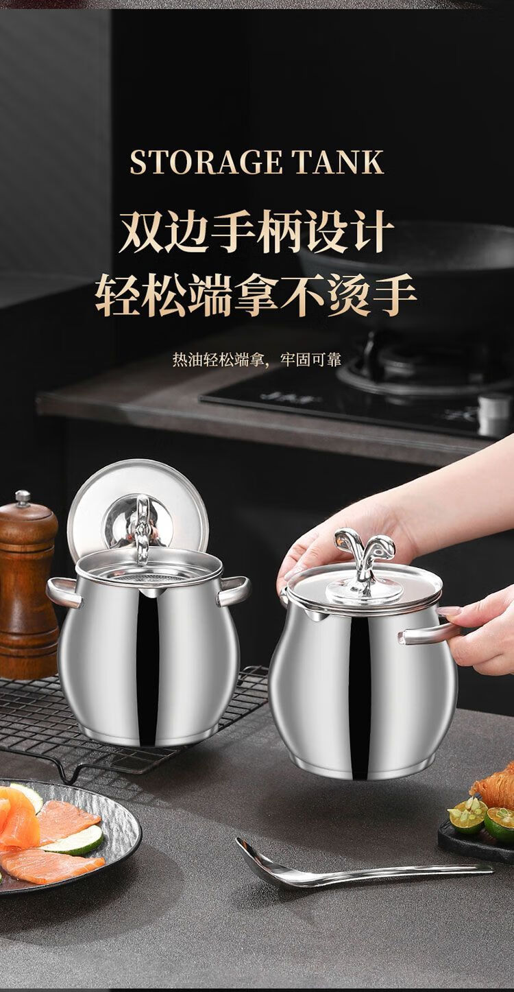 Chaosihui thickened stainless steel lard tank multi-purpose lard barrel with filter household kitchen with lid and high temperature resistance double-ear lard pot large heat-resistant lid 2500 + net + steel spoon