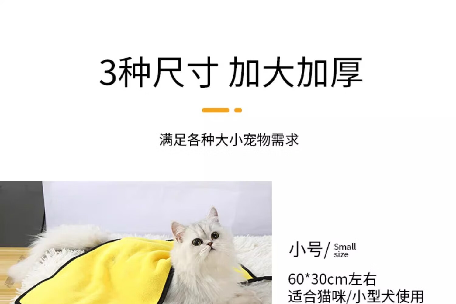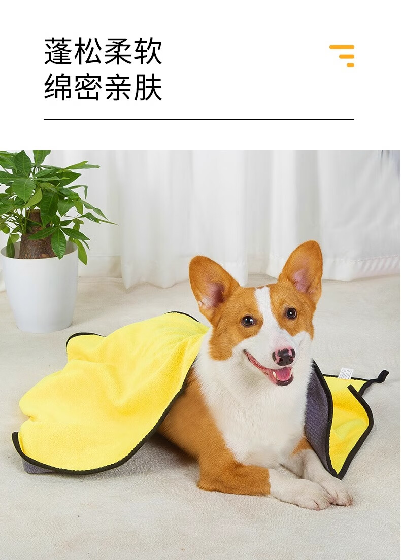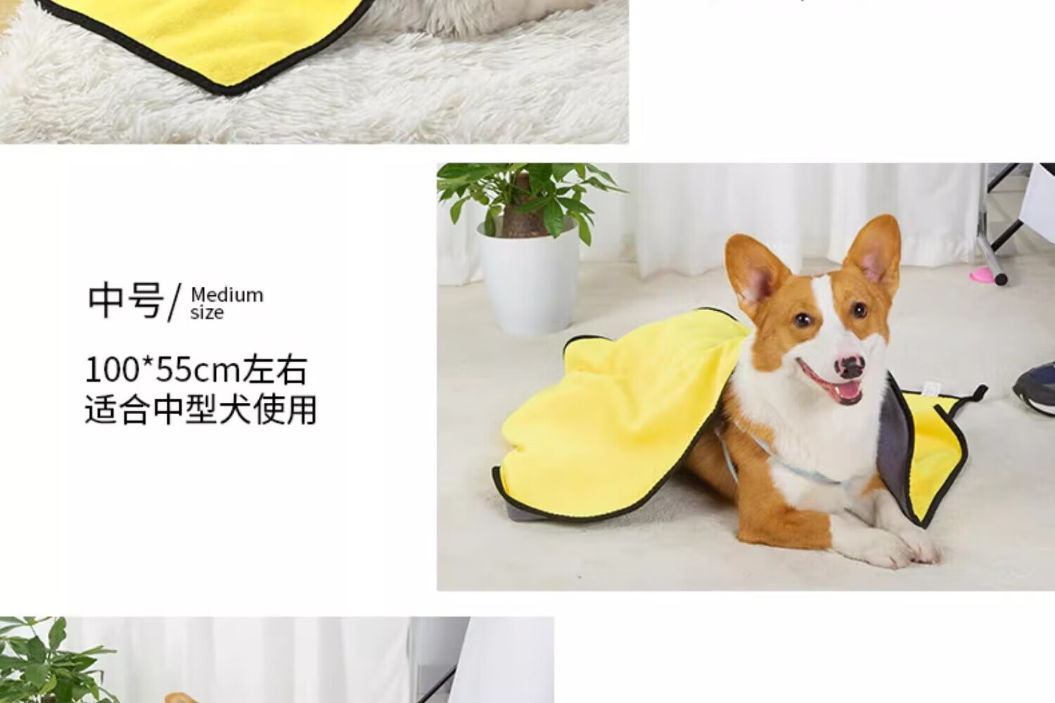 Pet absorbent towel, thickened, quick-drying, non-stick hair supplies, special bath towel for dogs and cats, special products for pets, double-sided thickening, yellow medium size - 50*100cm 2 pieces