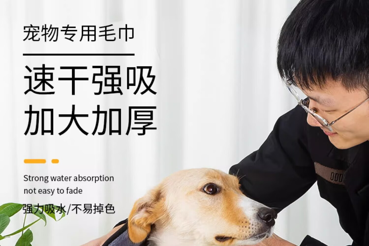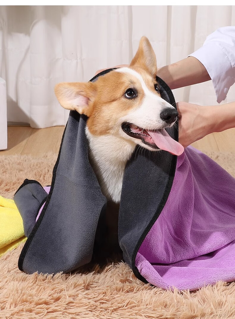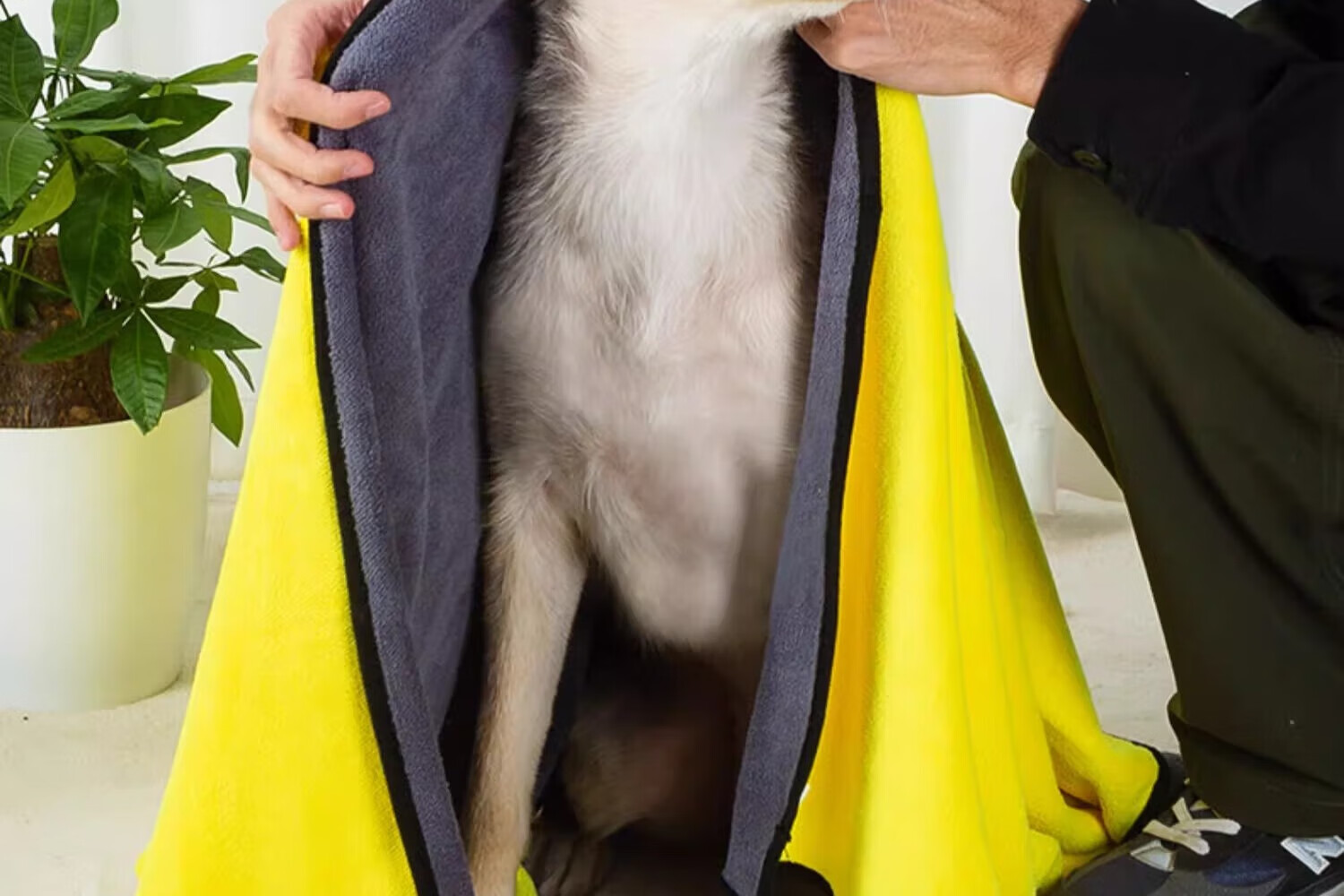 Pet absorbent towel, thickened, quick-drying, non-stick hair supplies, special bath towel for dogs and cats, special products for pets, double-sided thickening, yellow medium size - 50*100cm 2 pieces