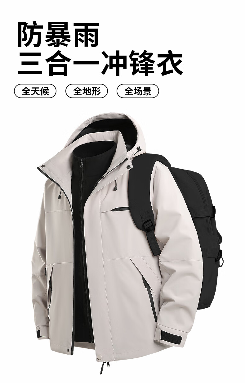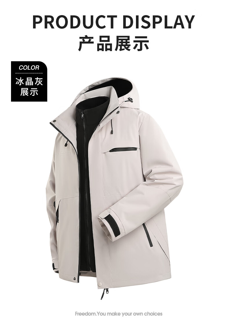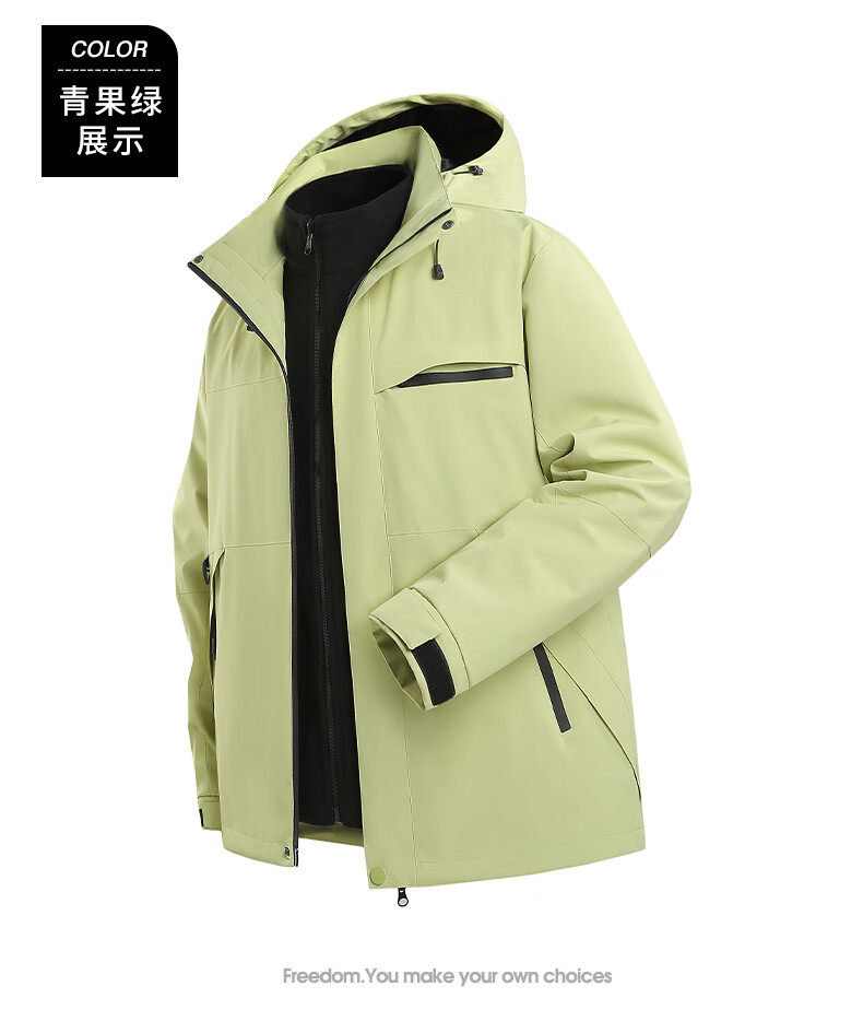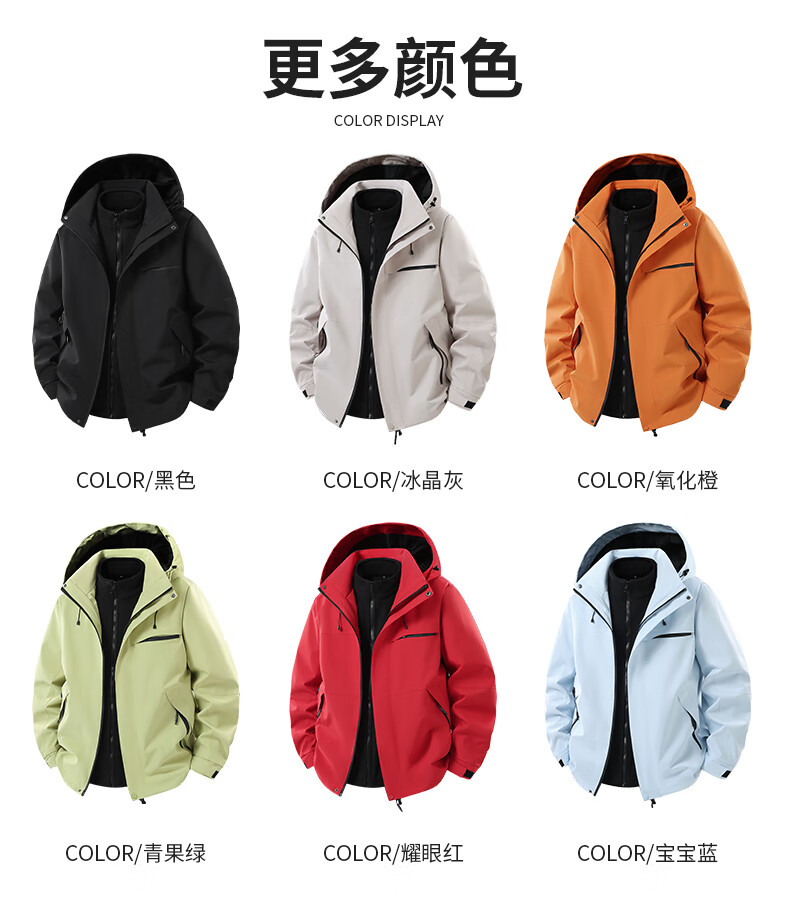 Cotton Jacket Men's Three-in-One Winter Outdoor Sports Waterproof and Windproof Jacket Hooded Warm Jacket Fishing Baby Blue 3XL