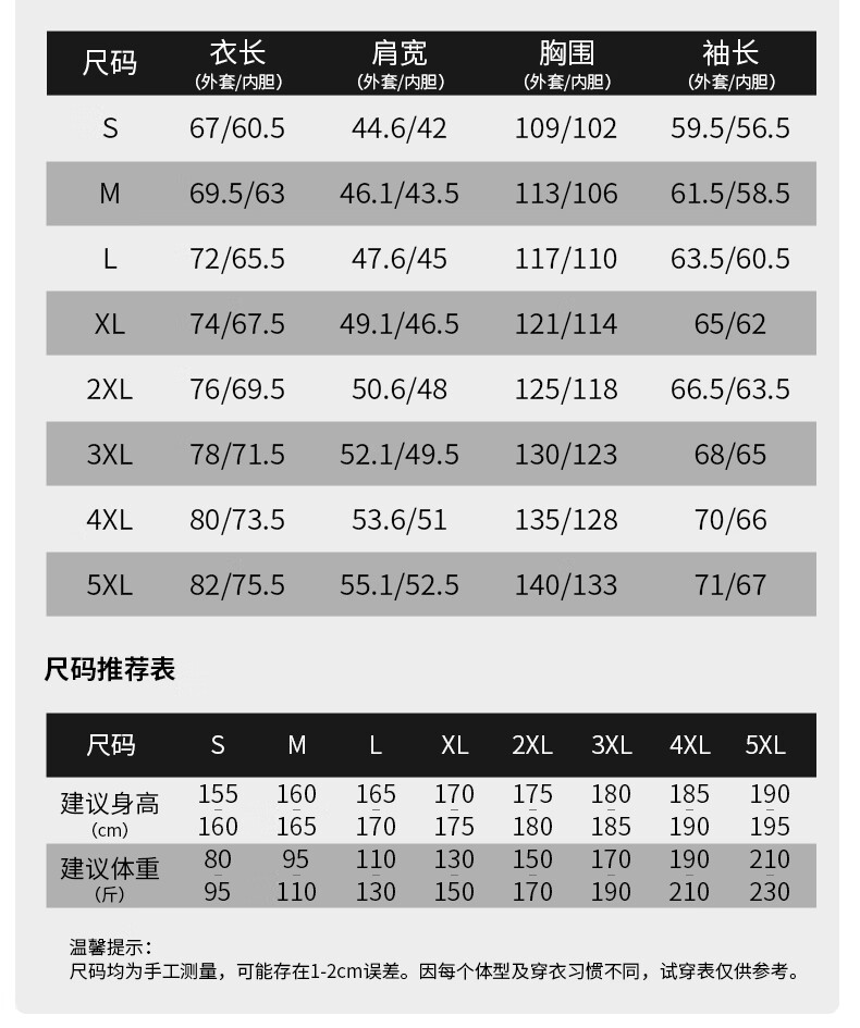 China (cm) 165 / 88-90 170 / 96-98 175 / 108-110 180 / 118-122 185 / 126-130