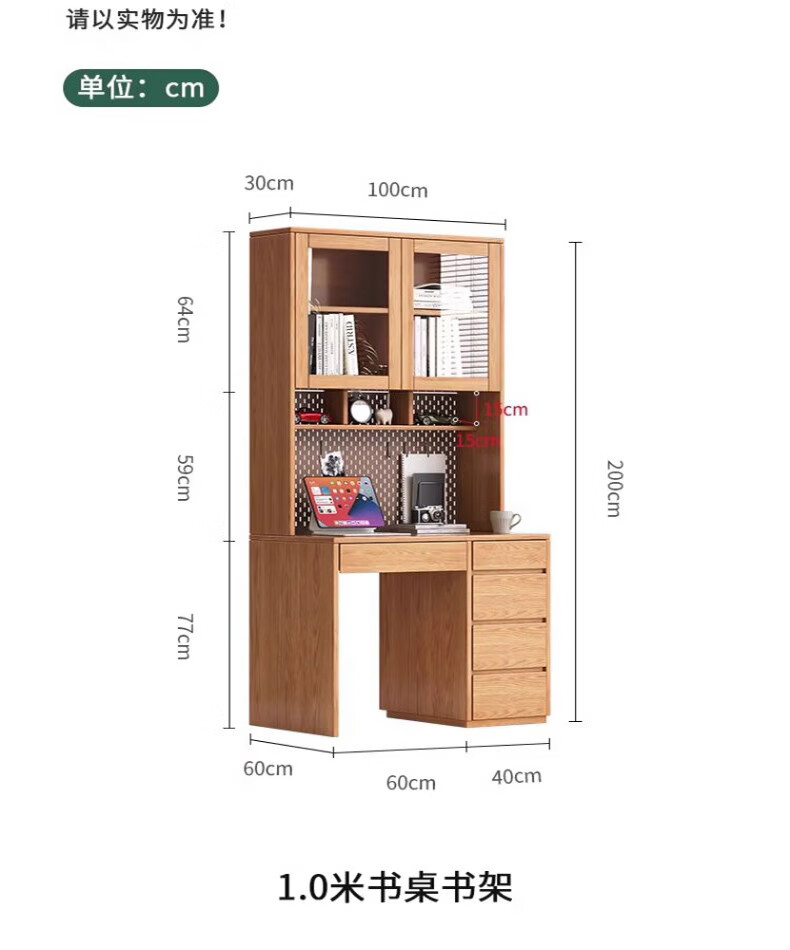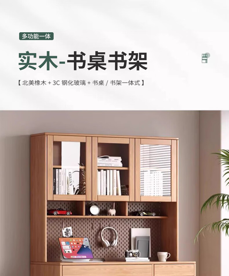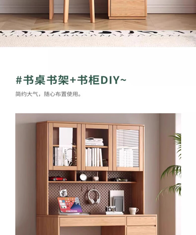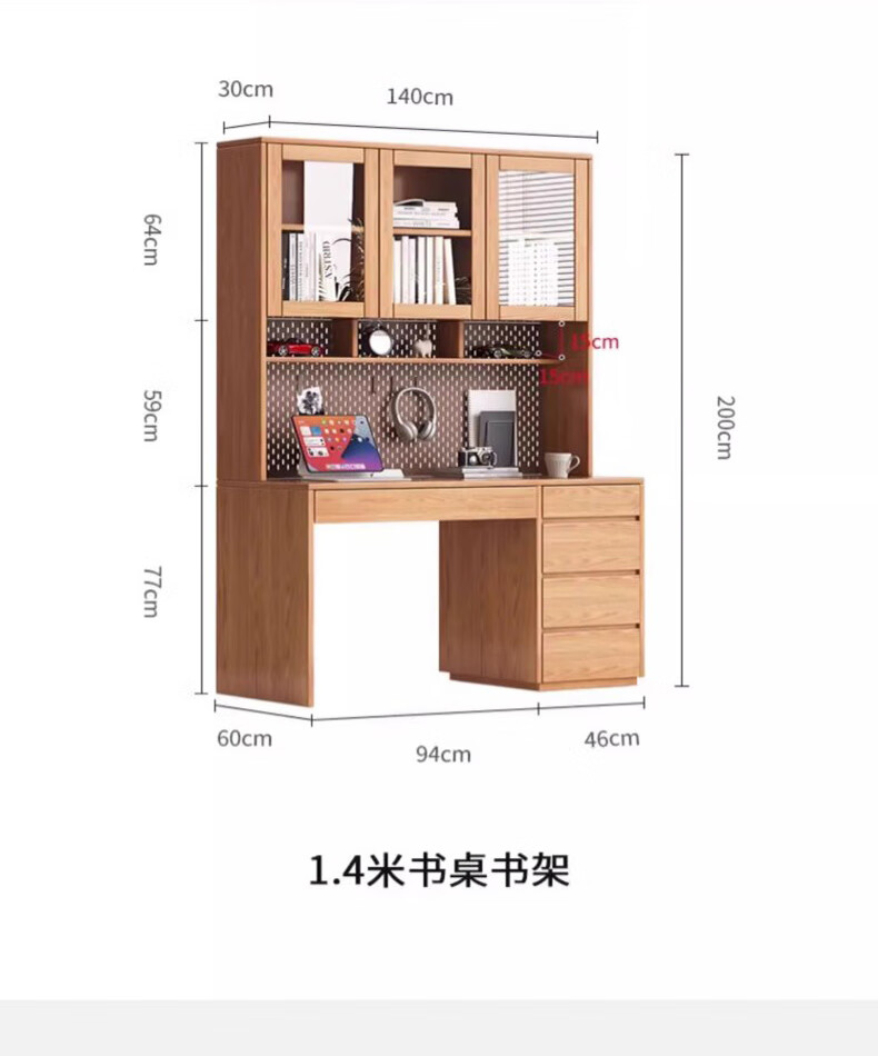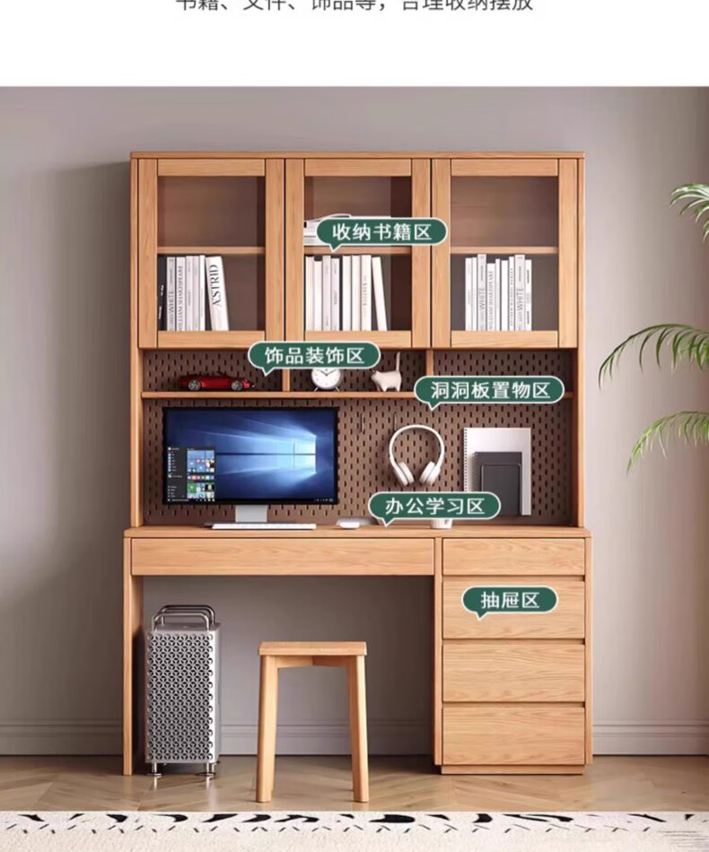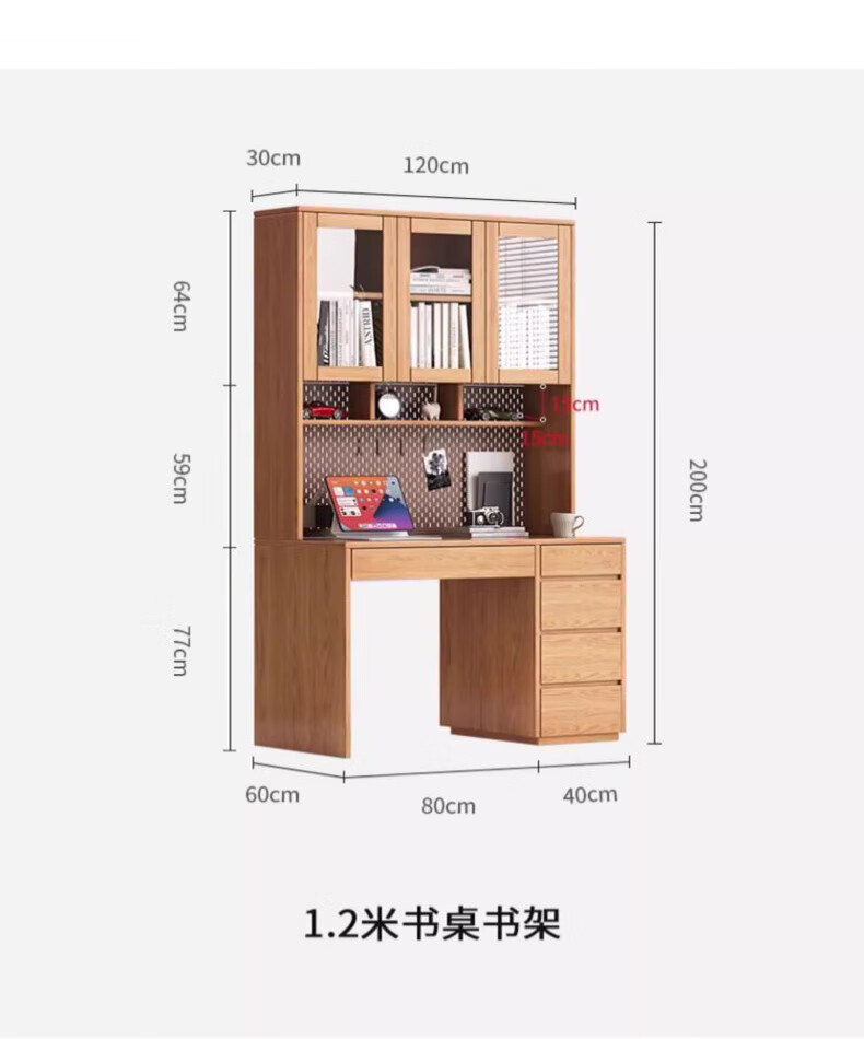 Ulan Guoya includes installation, oak all-solid wood desk and bookshelf integrated table for home bedroom desktop computer desk and bookcase combination, oak model 1.2 meters desk and bookshelf
